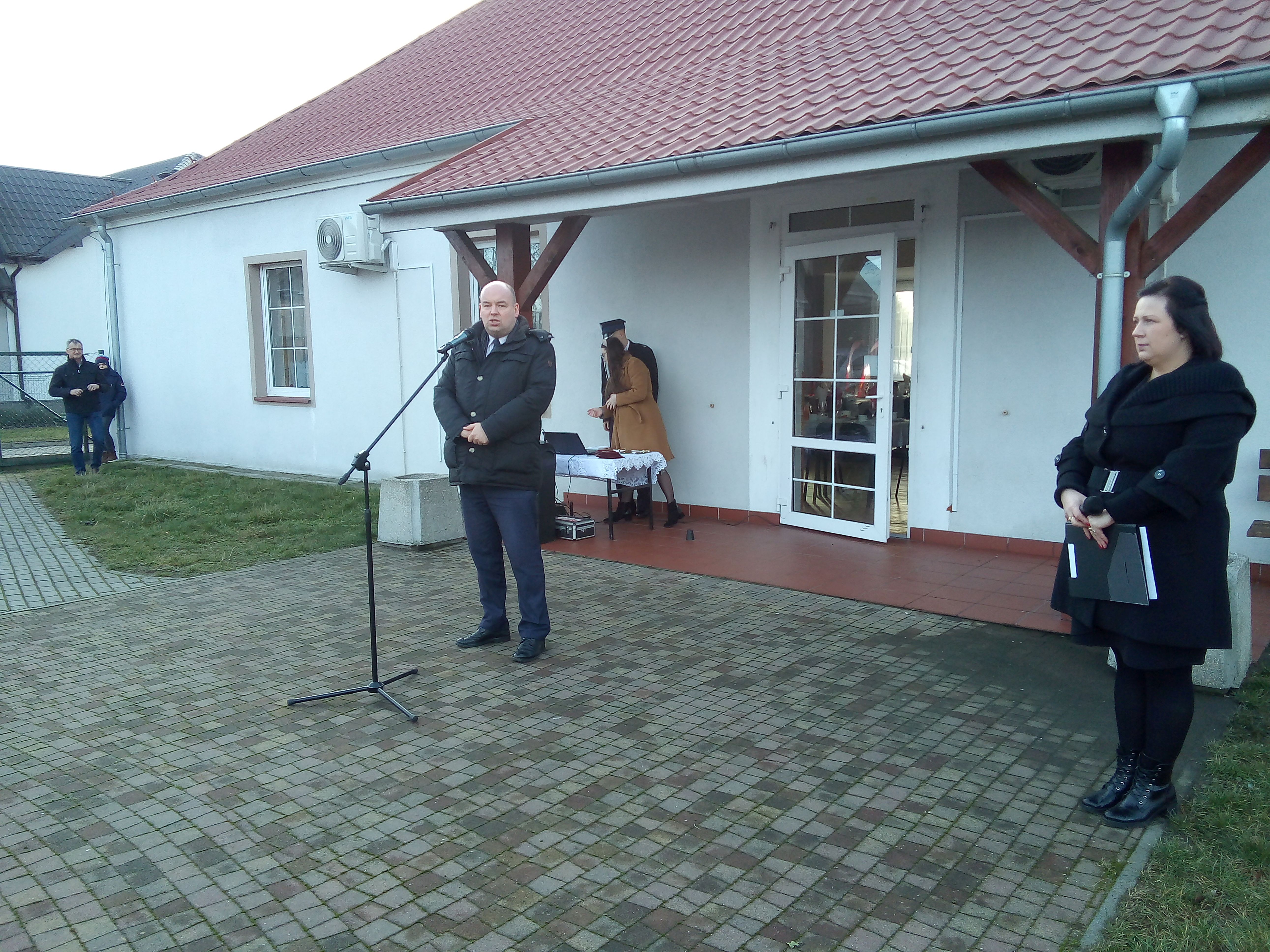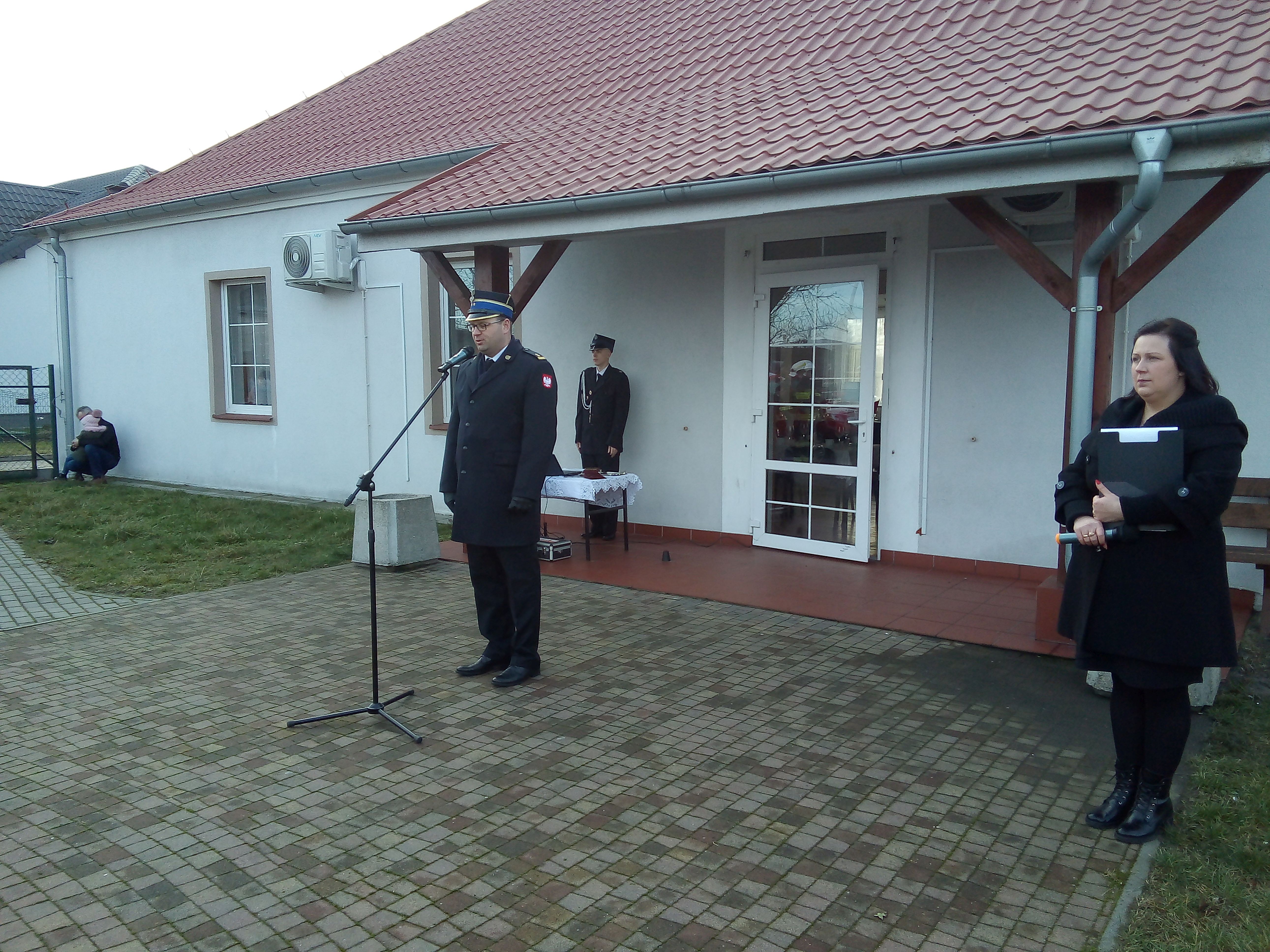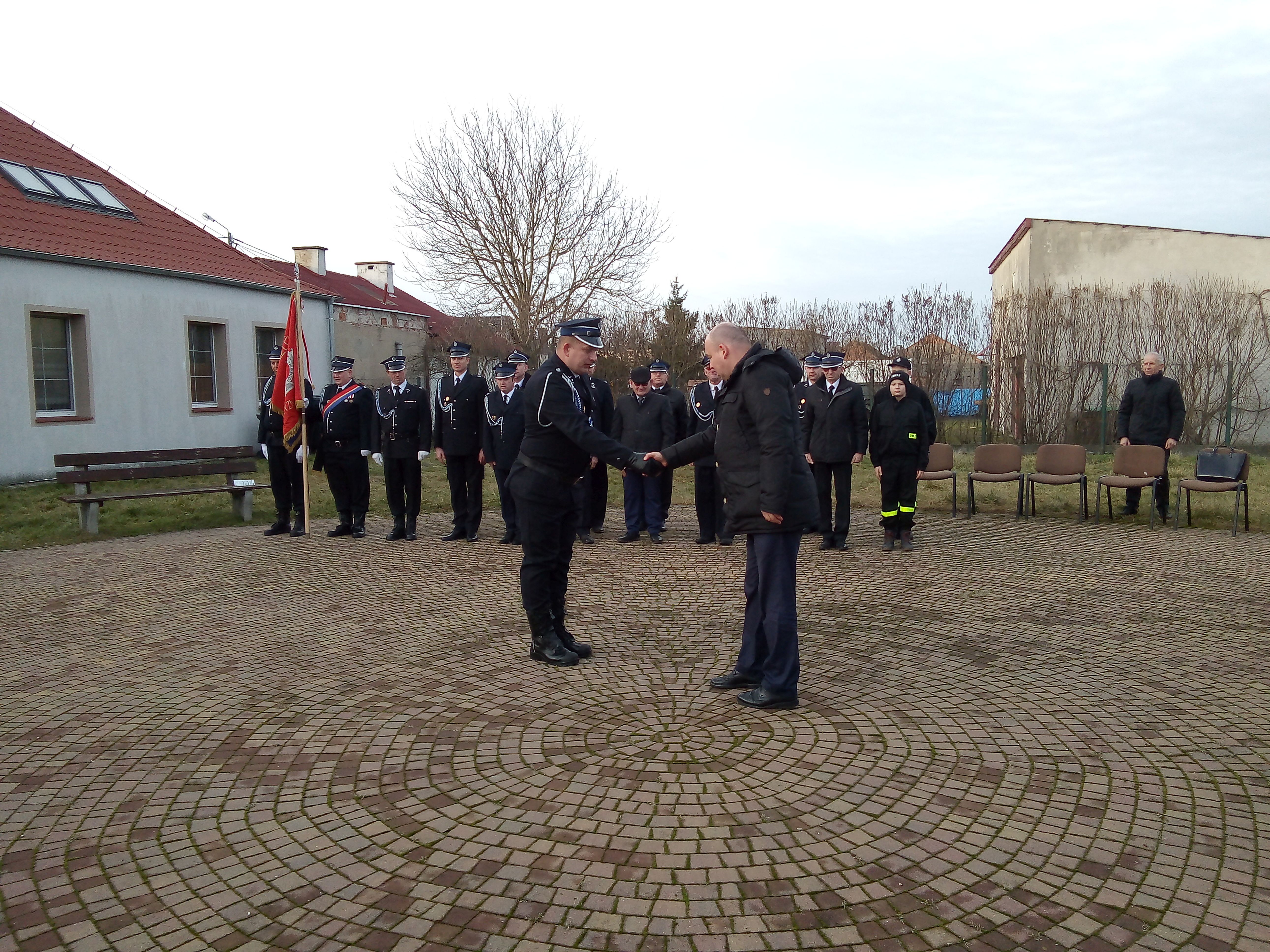 Po złożonych gratulacjach przez zaproszonych gości głos zabrał Komendant Powiatowy PSP w Jarocinie bryg. Tomasz Krawczyk, który również przyłączył się do wcześniejszych gratulacji i złożył podziękowania dla: Sekretarza Stanu w Kancelarii Prezesa Rady, Komendanta Głównego Państwowej Straży Pożarnej, Wielkopolskiego Komendanta Wojewódzkiego Państwowej Straży Pożarnej za wspieranie działalności jednostek OSP poprzez m.in. doposażanie w pojazdy i specjalistyczny sprzęt jednostek OSP.
