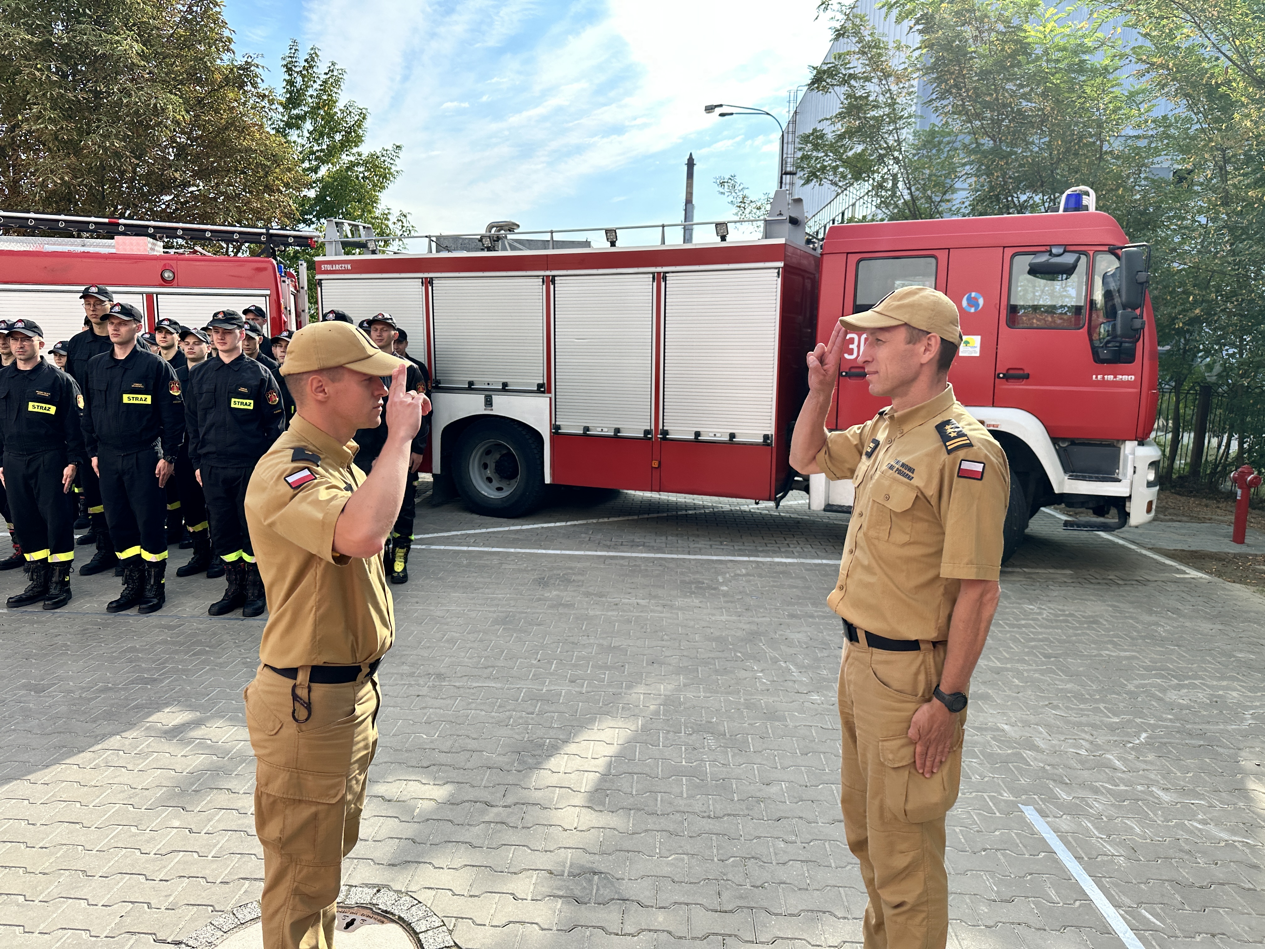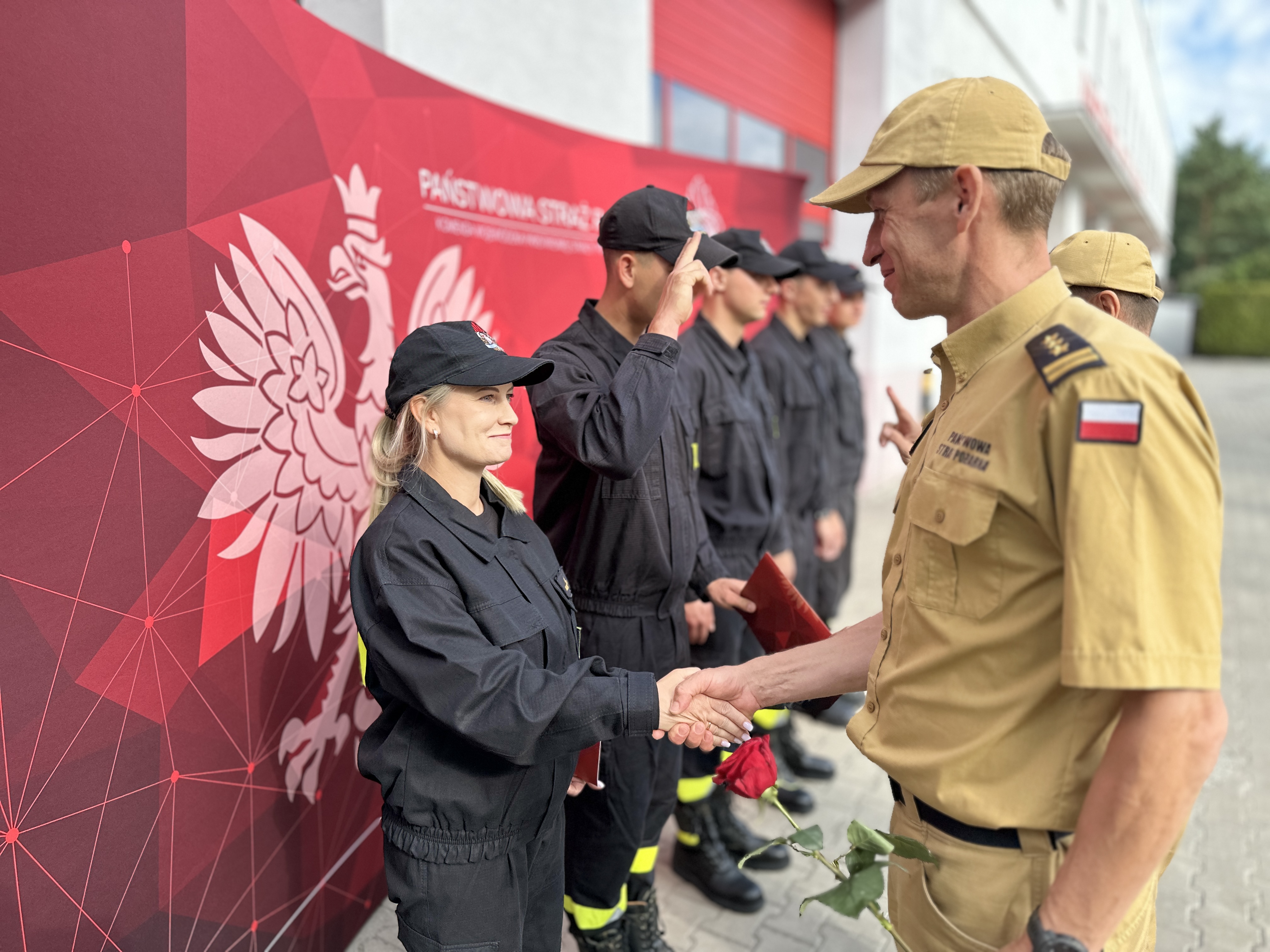 Wielkopolski Komendant Wojewódzki st. bryg. Jacek Strużyński wyróżnił listem gratulacyjnym dowódcę plutonu str. Huberta Borowiaka, który następnie w imieniu wszystkich strażaków zabrał głos i podziękował Komendantom oraz kadrze dydaktycznej za profesjonalne przygotowanie i pokazanie strażackiego życia w bardzo dużym stopniu.