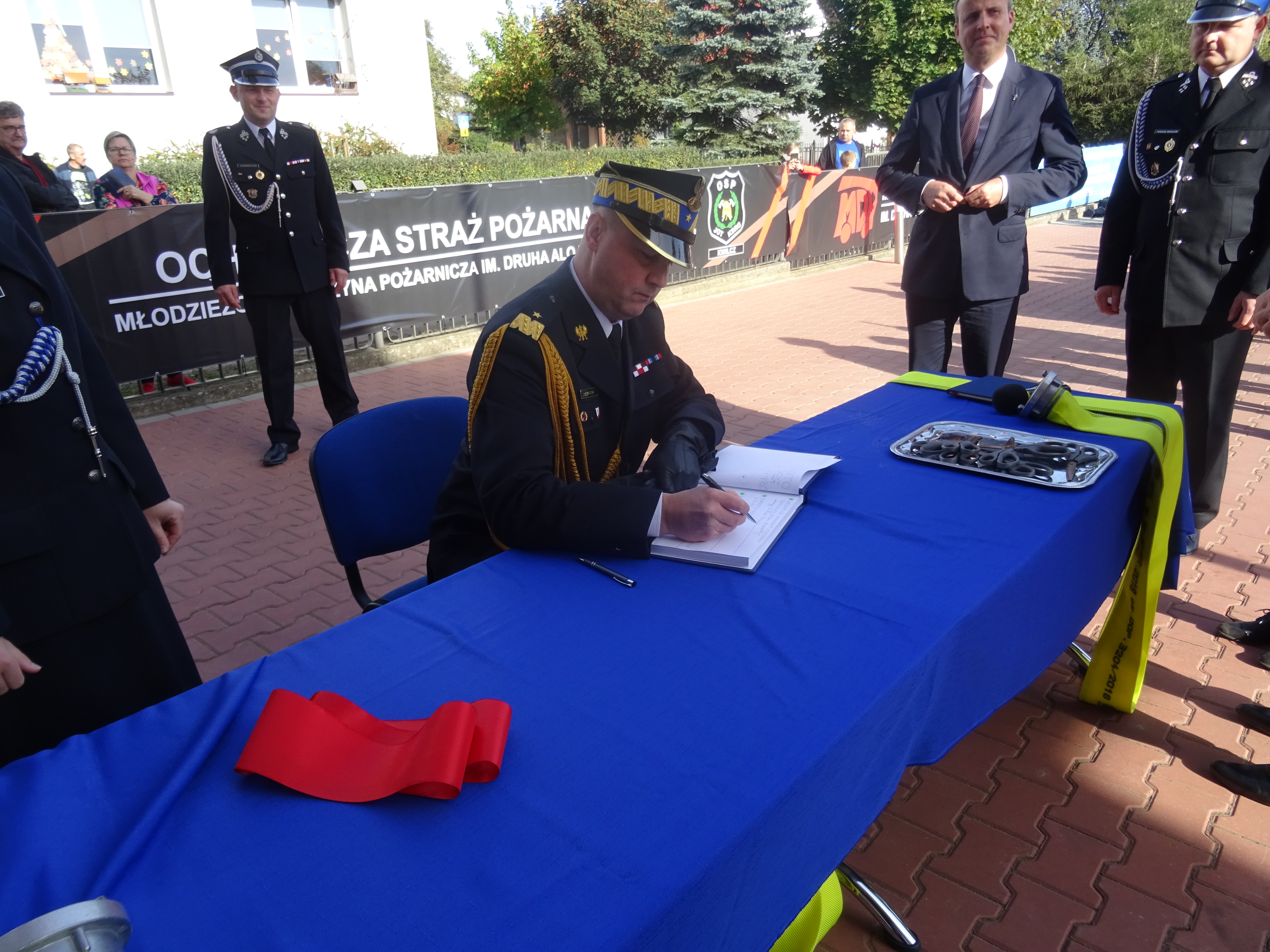 Podczas uroczystości dokonano symbolicznego przekazania kluczy do zmodernizowanej remizy oraz przecięcia wstęgi.