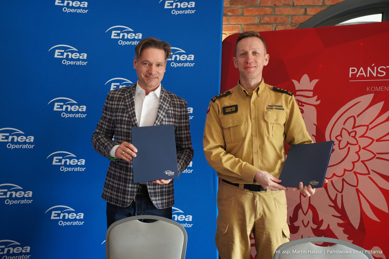 Oba podmioty reprezentowali Pan Michał Cebula, Wiceprezes Zarządu ds. Pracowniczych Enea Operator Sp. z o.o. oraz st. bryg. Tomasz Grelak, Zastępca Wielkopolskiego Komendanta Wojewódzkiego PSP w Poznaniu. Współpraca pomiędzy wielkopolskimi strażakami, a Spółką została zawiązana w 2023 r. Natomiast dzięki temu porozumieniu Enea Operator Sp. z o.o. przekazała na rzecz Komendy Wojewódzkiej PSP w Poznaniu materiały multimedialne, w tym zdjęcia i filmy edukacyjne wykonane w technice 360, przedstawiające wybrane obiekty infrastruktury energetycznej (wybrane stacje SN/nN, GPZ) z możliwością wirtualnego przemieszczania się oraz wyświetlania opisów poszczególnych elementów wyposażenia tych obiektów. Filmy będą przedstawiać wybrane czynności na obiektach / urządzeniach energetycznych, np. zabudowa licznika w złączu, wymiana bezpiecznika w złączu, itp. Materiały będą dostępne dla strażaków poprzez wykorzystanie aplikacji wskazanej przez spółkę.