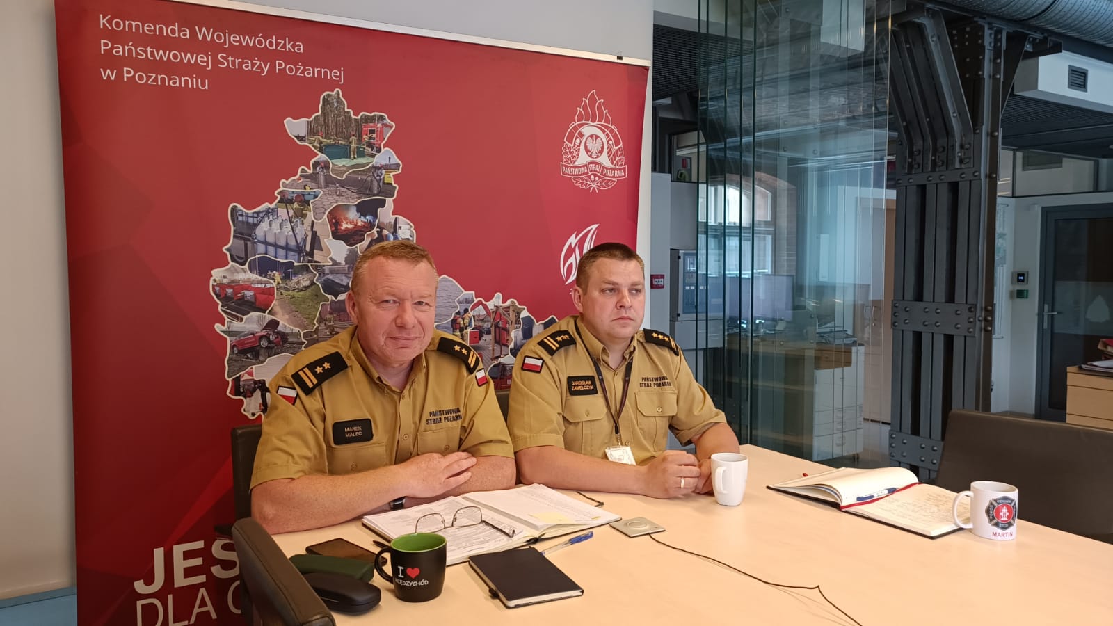 W poniedziałek, 3 lipca 2023 roku, odbyła się cykliczna wideokonferencja Wydziału Planowania Operacyjnego Komendy Wojewódzkiej Państwowej Straży Pożarnej w Poznaniu z Komendami Miejskimi/Powiatowymi Państwowej Straży Pożarnej woj. wielkopolskiego. W spotkaniu uczestniczyli zastępcy Wielkopolskiego Komendanta Wojewódzkiego PSP st. bryg. Jarosław Zamelczyk oraz st. bryg. Tomasz Grelak. Podczas wideokonferencji omówiono sprawy związane z bieżącą realizacją zadań operacyjnych, a w szczególności: