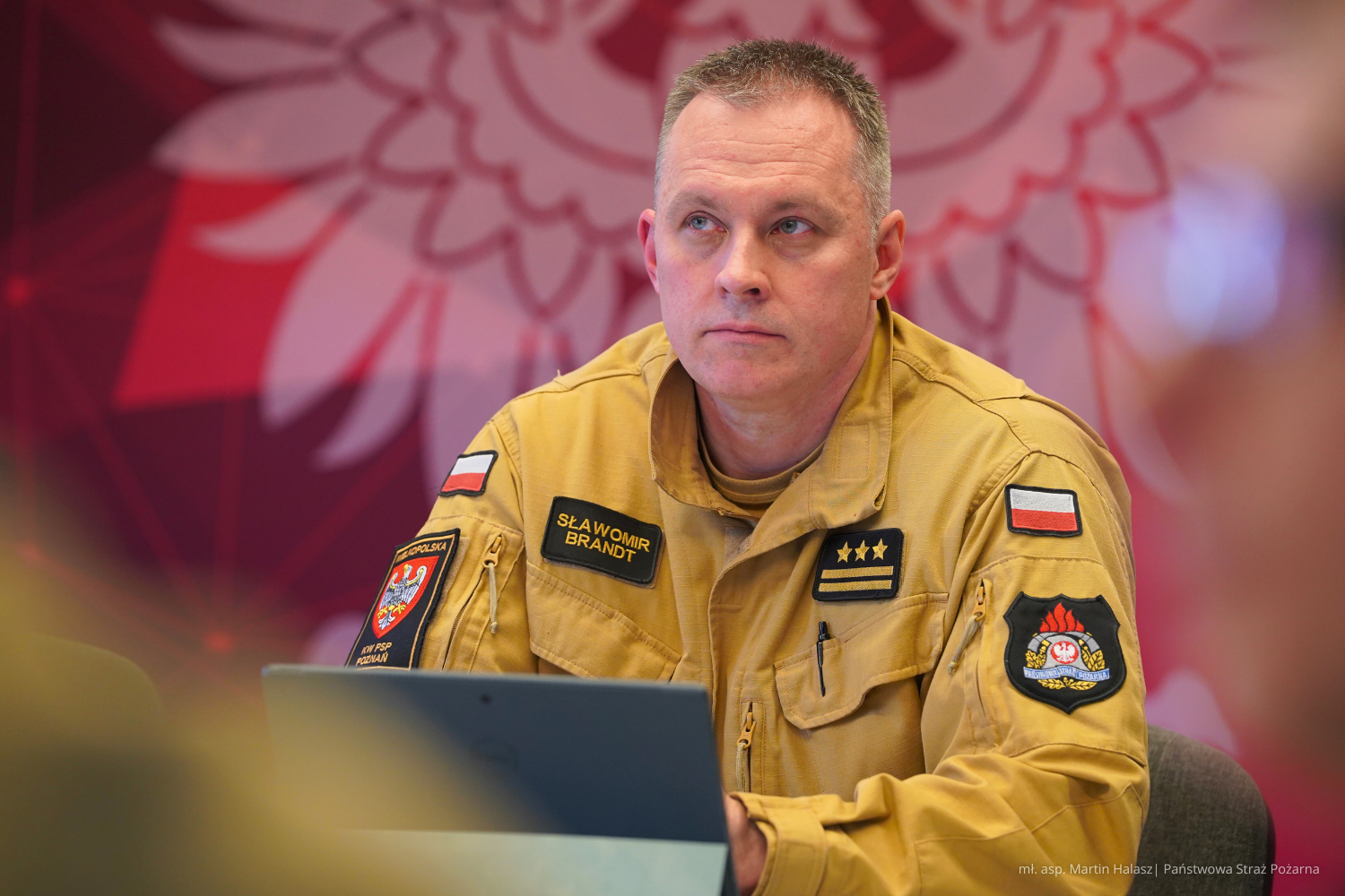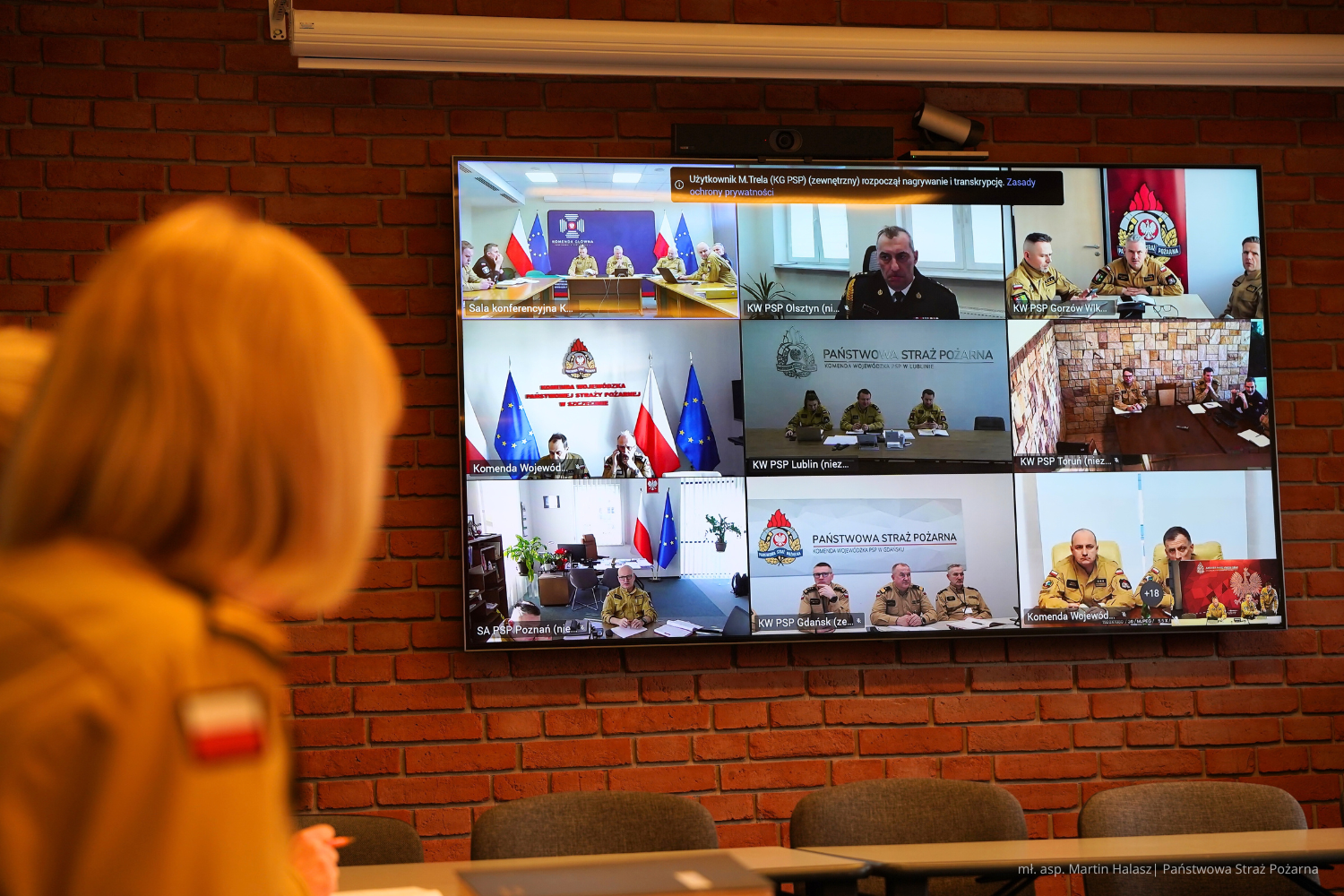 W wideokonferencji z ramienia Komendy Wojewódzkiej PSP w Poznaniu uczestniczyli zastępcy komendanta wojewódzkiego PSP: st. bryg. Tomasz Wiśniewski oraz st. bryg. Sławomir Brandt, a także naczelnicy wydziałów: planowania operacyjnego, ośrodka szkolenia, finansów oraz logistyki.