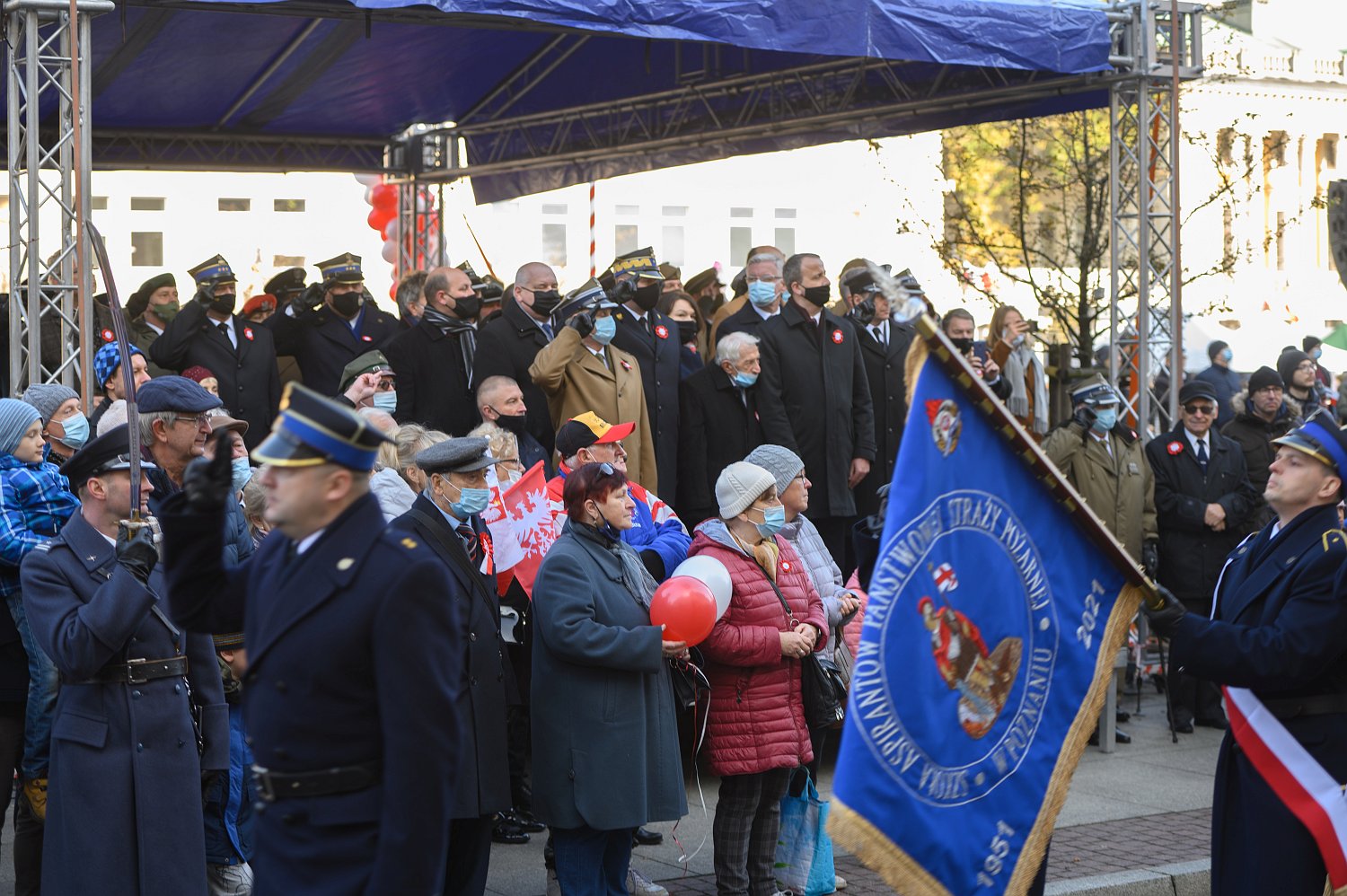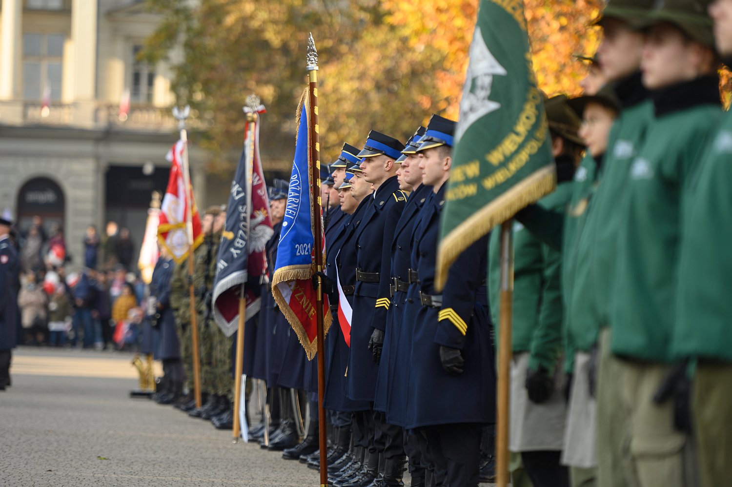Uroczystości na placu Wolności rozpoczęto uroczystym podniesieniem Flagi Państwowej i odegraniem Hymnu. Po przemówieniu wojewody wielkopolskiego Michała Zielińskiego odbył się Apel Pamięci, salwa honorowa i koncert Orkiestry Reprezentacyjnej Sił Powietrznych Wojska Polskiego. Uroczystości zakończyła defilada pododdziałów, w której strażacki pododdział wystawiła Szkoła Aspirantów Państwowej Straży Pożarnej w Poznaniu.
