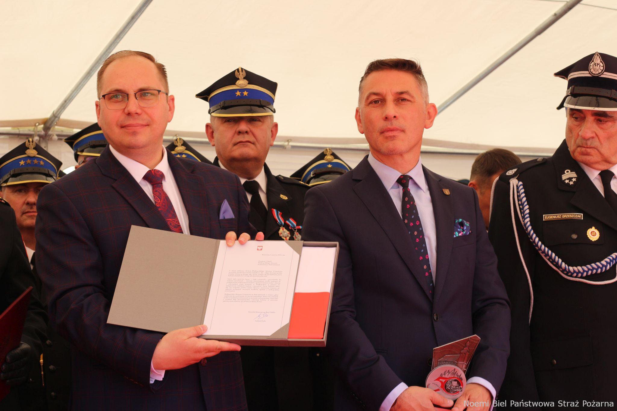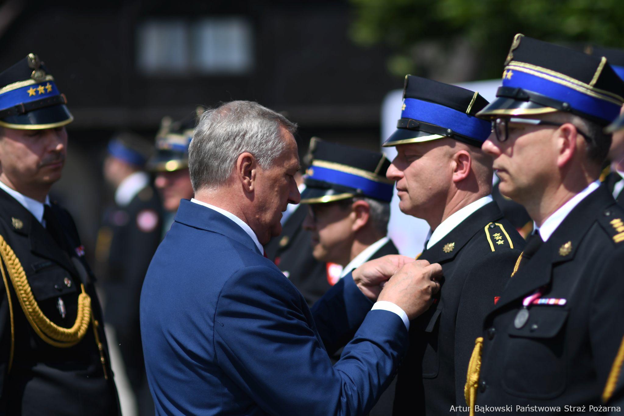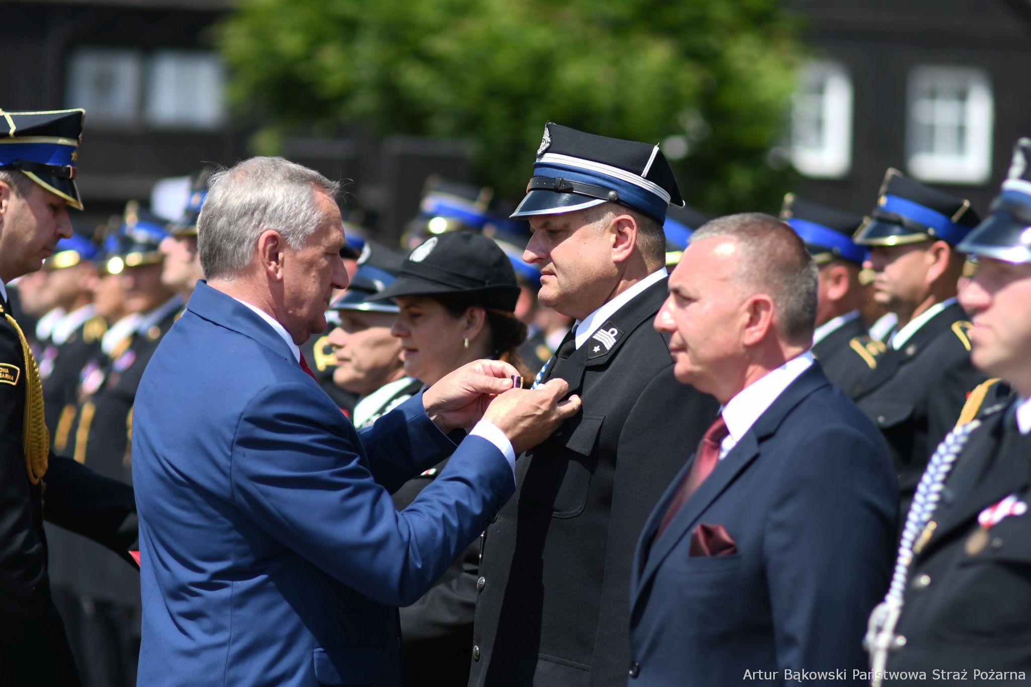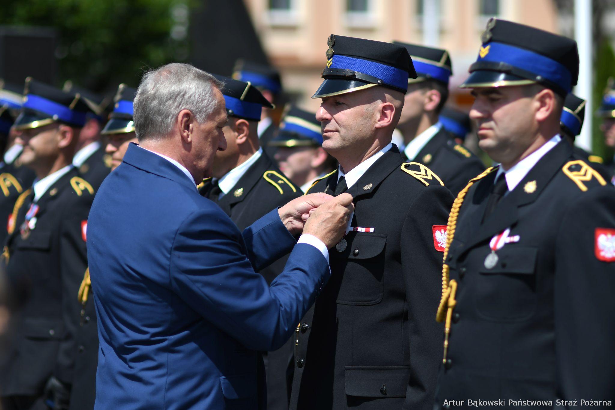 Następnie zostały wręczone medale, odznaczenia funkcjonariuszom PSP oraz strażakom OSP, awanse na wyższe stopnie służbowe w PSP w każdym z korpusów.