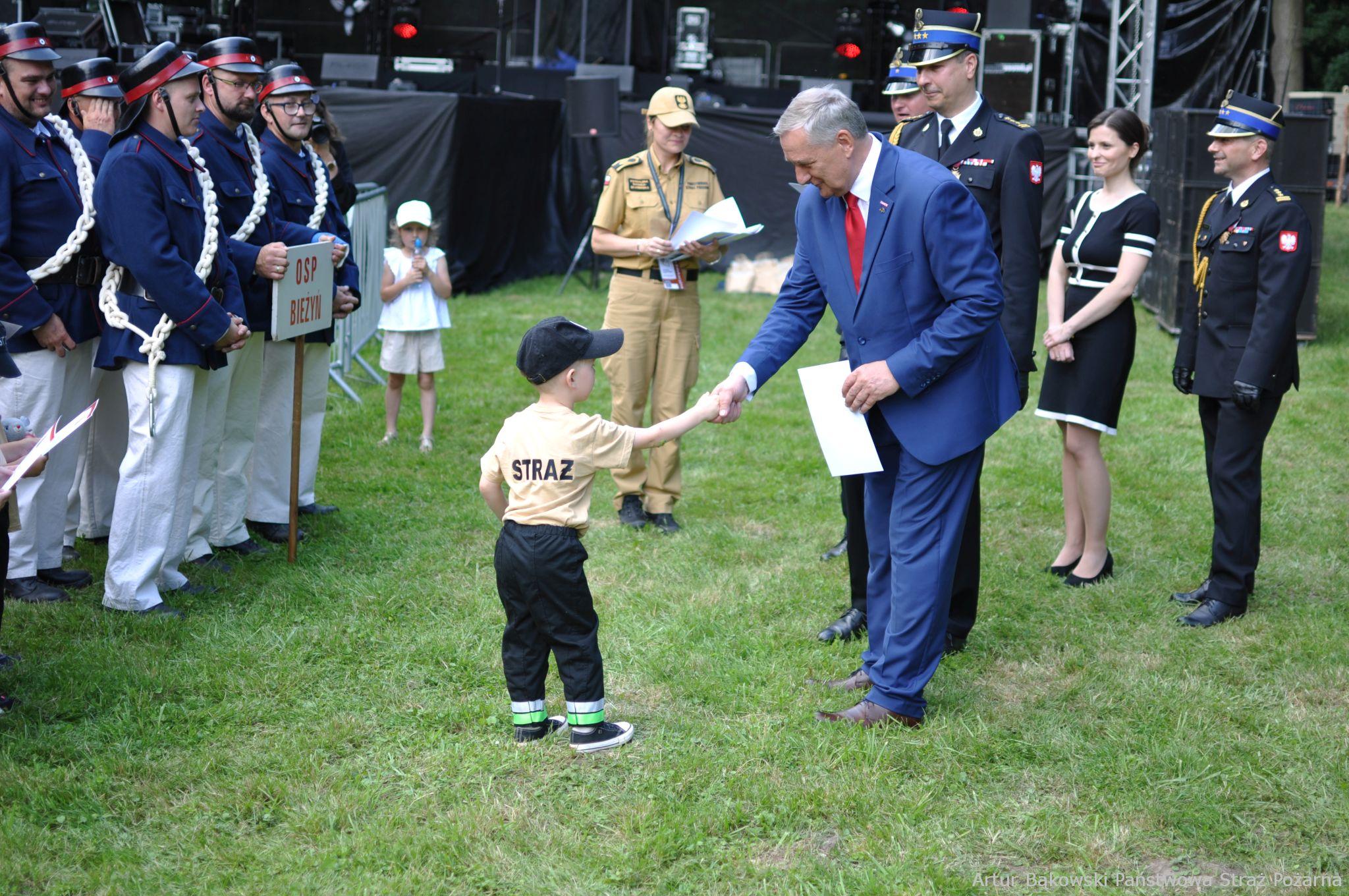 Podczas festynu sekretarz stanu w MSWiA p. Wiesław Szczepański wraz z zastępcą Komendanta Głównego PSP st. bryg. Grzegorzem Szyszko, oraz Wojewodą Wielkopolską Agatą Sobczyk i Wielkopolskim Komendantem Wojewódzkim PSP st. bryg. Jackiem Strużyńskim wręczyli 13-letniemu Danielowi z powiatu gostyńskiego Odznakę Komendanta Głównego PSP "Iuvenis Forti" za uratowanie swojej rodziny podczas pożaru oraz skuteczne powiadomienie służb ratunkowych.