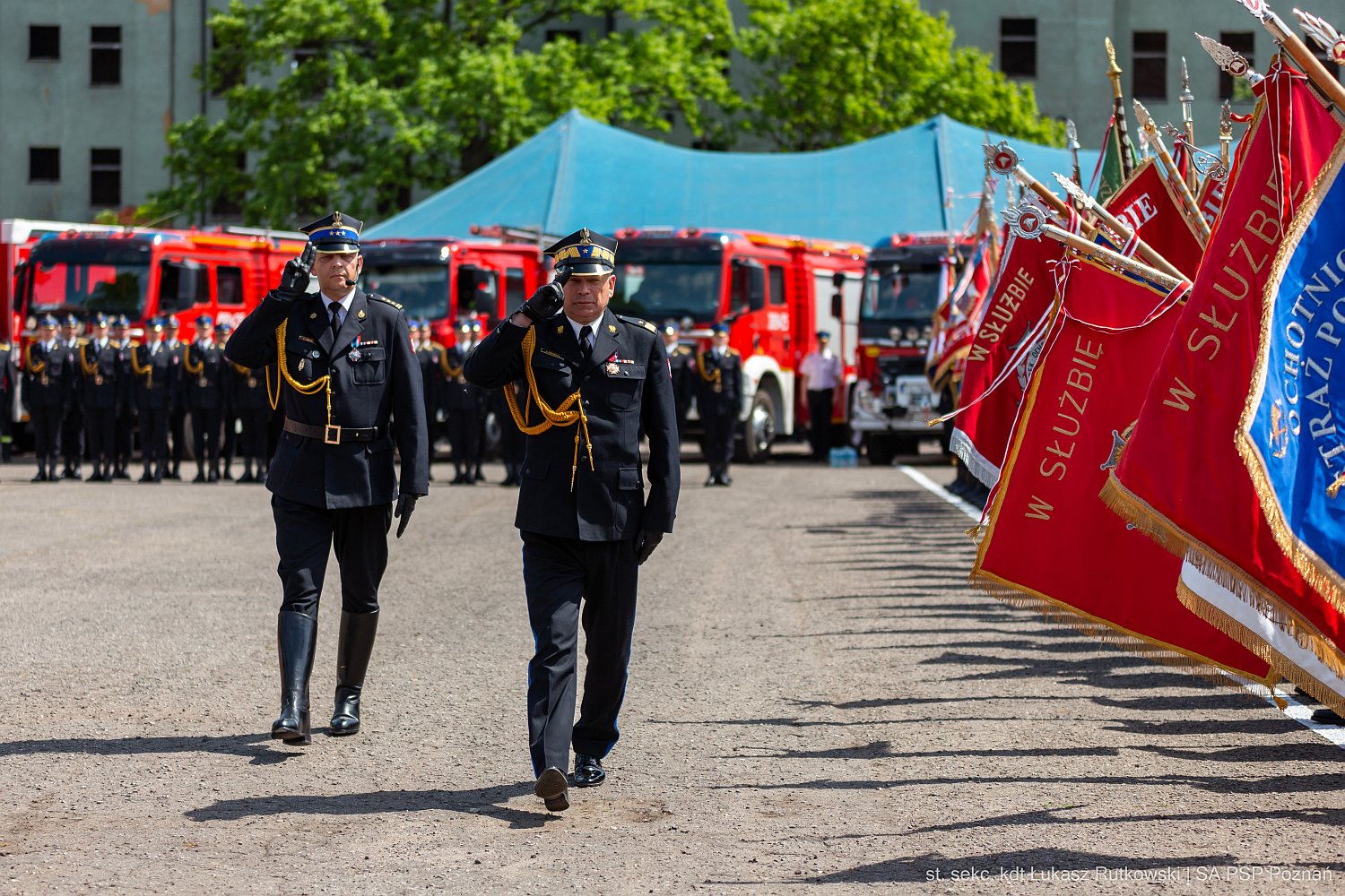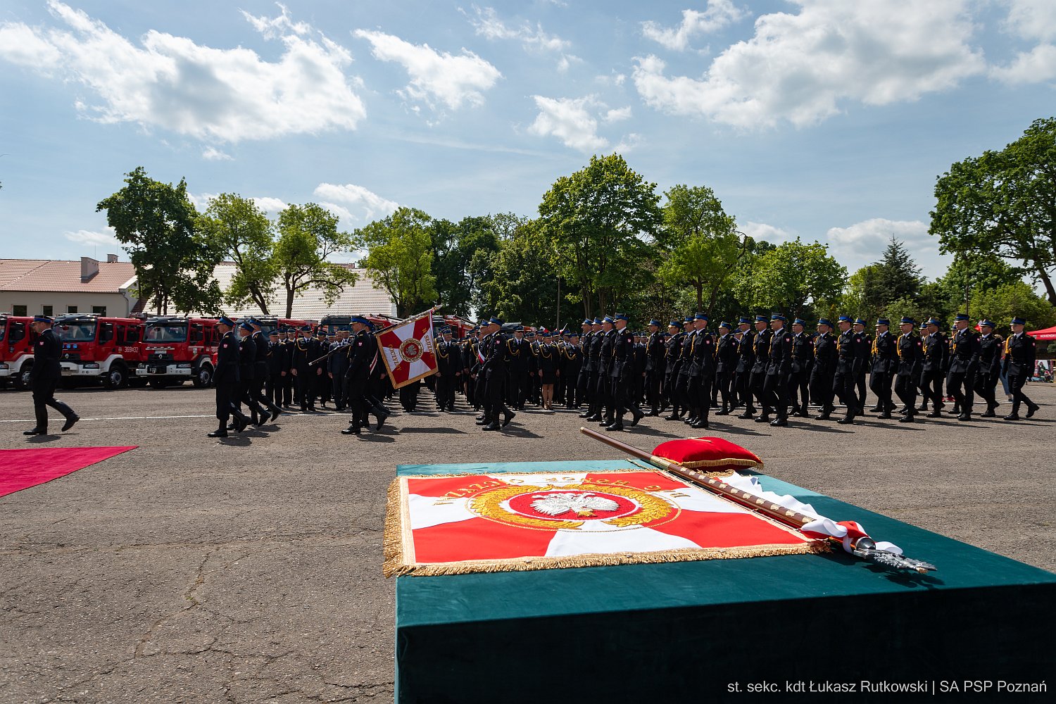 Uroczysty apel zakończyła defilada Kompanii Reprezentacyjnej Województwa Wielkopolskiego, Kompanii Honorowej Szkoły Aspirantów Państwowej Straży Pożarnej w Poznaniu, pocztów sztandarowych oraz 55 pojazdów pożarniczych.