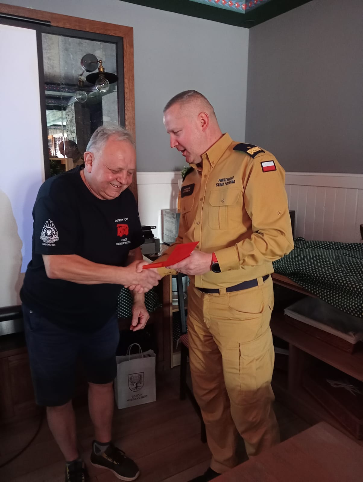 Podczas spotkania Komendant Wojewódzki PSP w Poznaniu wręczył pamiątkowy medal kierownikowi obozu oraz wychowacy i opiekunom, a młodzi strażacy otrzymali dyplomy uznania za udział w obozie.
