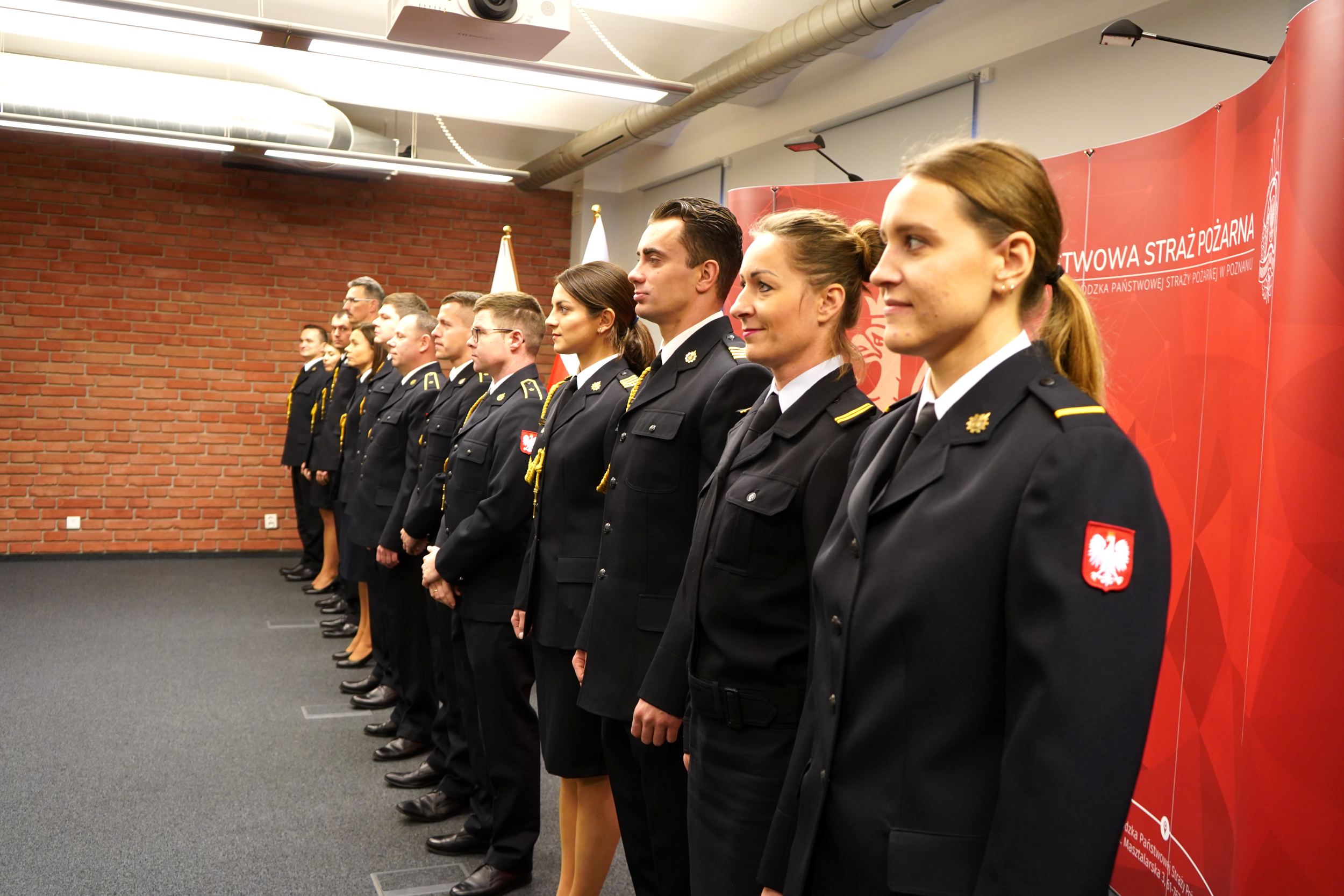 15 listopada 2022 r. Wielkopolski Komendant Wojewódzki Państwowej Straży Pożarnej nadbryg. Dariusz Matczak w obecności zastępców – st. bryg. Jarosława Zamelczyka, bryg. Roberta Natunewicza oraz bryg. Tomasza Grelaka wręczył akty nadania wyższych stopni służbowych 9 funkcjonariuszom Komendy Wojewódzkiej PSP w Poznaniu. Komendant także złożył gratulacje 4 strażakom, którzy z dniem 11 listopada br. otrzymali pierwsze szlify oficerskie.