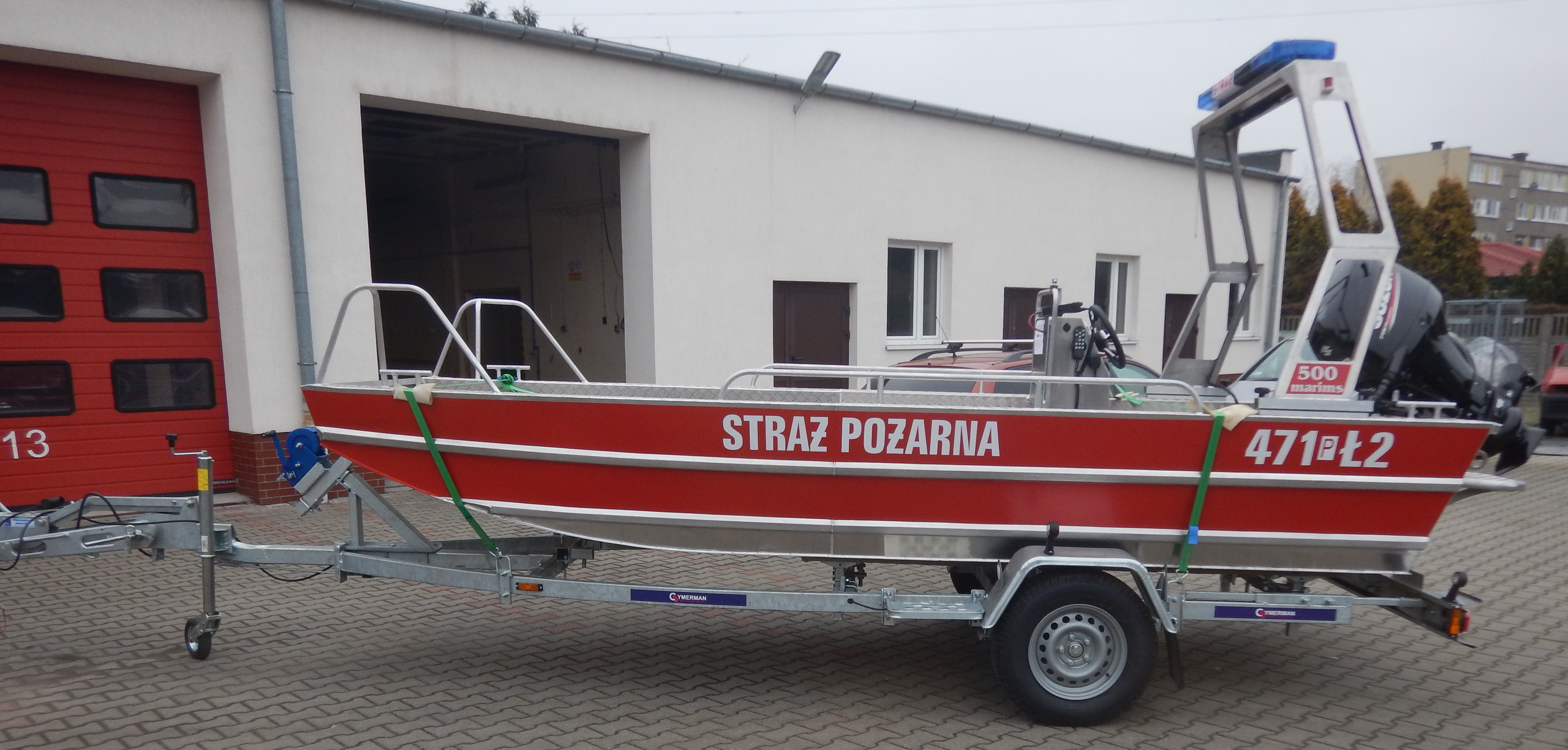 o łodzi ratowniczej wraz z wyposażeniem i przyczepą transportową;