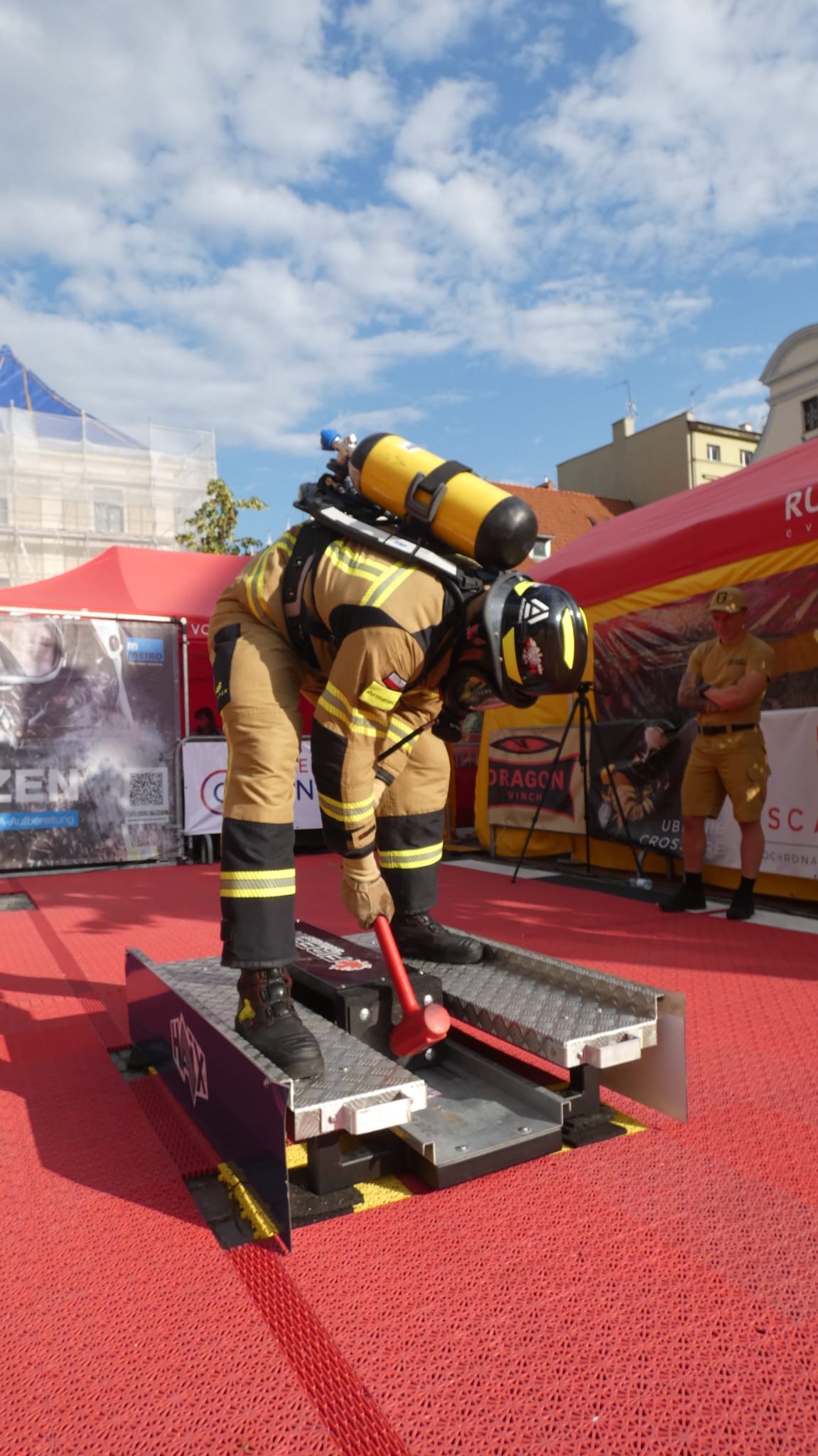 FireFit to nie tylko zawody — to prawdziwy sprawdzian siły, wytrzymałości i umiejętności, które strażacy wykorzystują na co dzień w akcjach ratowniczo-gaśniczych. Uczestnicy musieli zmierzyć się z pięcioma wymagającymi konkurencjami, m.in.: wejściem na wieżę z obciążeniem, wciąganiem węża na wysokość, symulacją wyważania drzwi, przeciąganiem węża i ewakuacją poszkodowanego — wszystko to w pełnym umundurowaniu i z aparatem powietrznym na plecach.