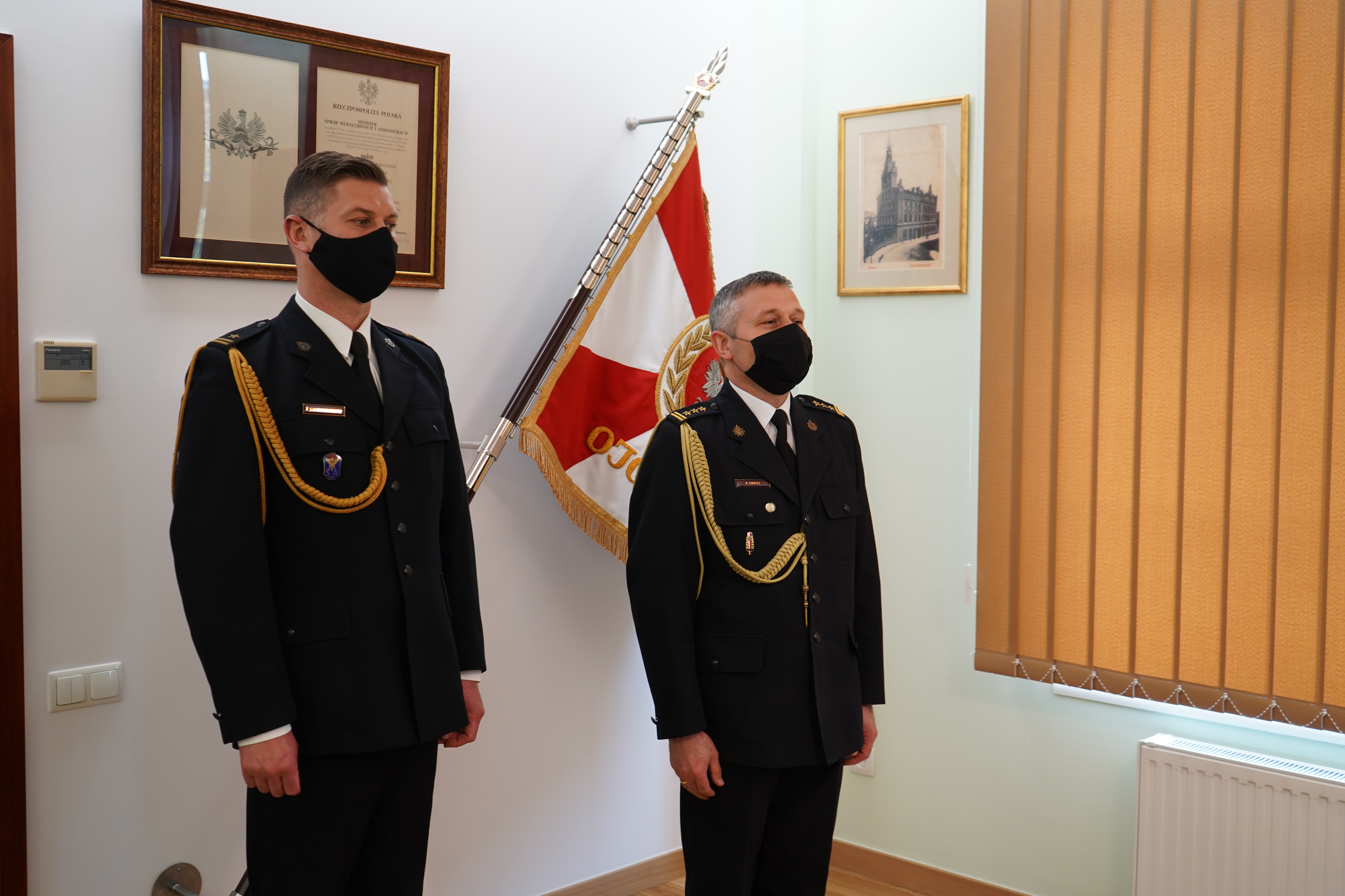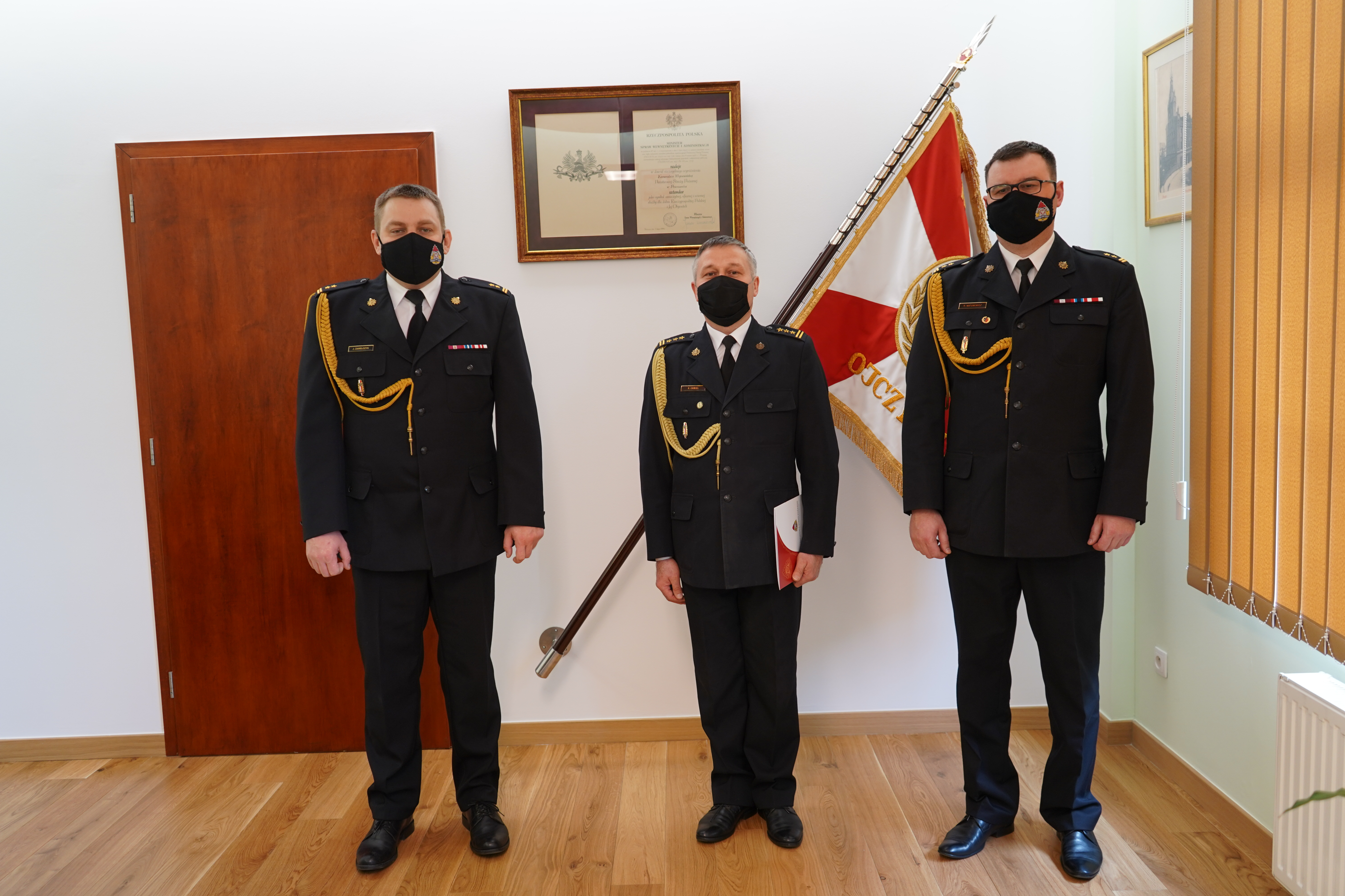 Zastępcy Wielkopolskiego Komendanta Wojewódzkiego PSP podziękowali zdającemu obowiązki st. bryg. Rafałowi Chmielowi za oddaną służbę i dobrą współpracę. Z kolei mł. bryg. Zbigniew Rzemyszkiewicz odbierał gratulacje z okazji awansu oraz życzenia sukcesów na nowym stanowisku.