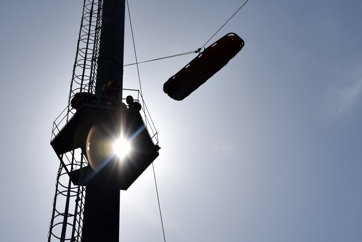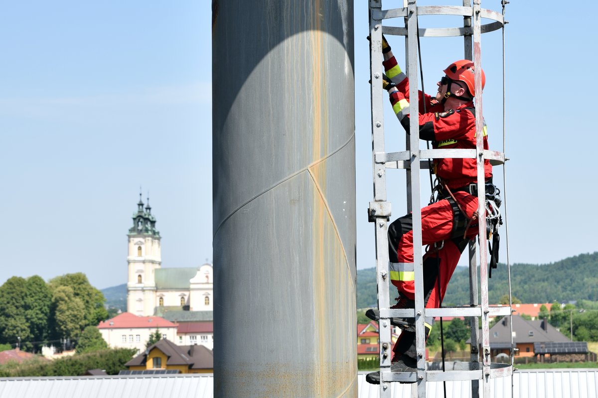 - działań z zakresu ratownictwa wysokościowego – ewakuacja osoby poszkodowanej z wysokości (podest komina ciepłowniczego);