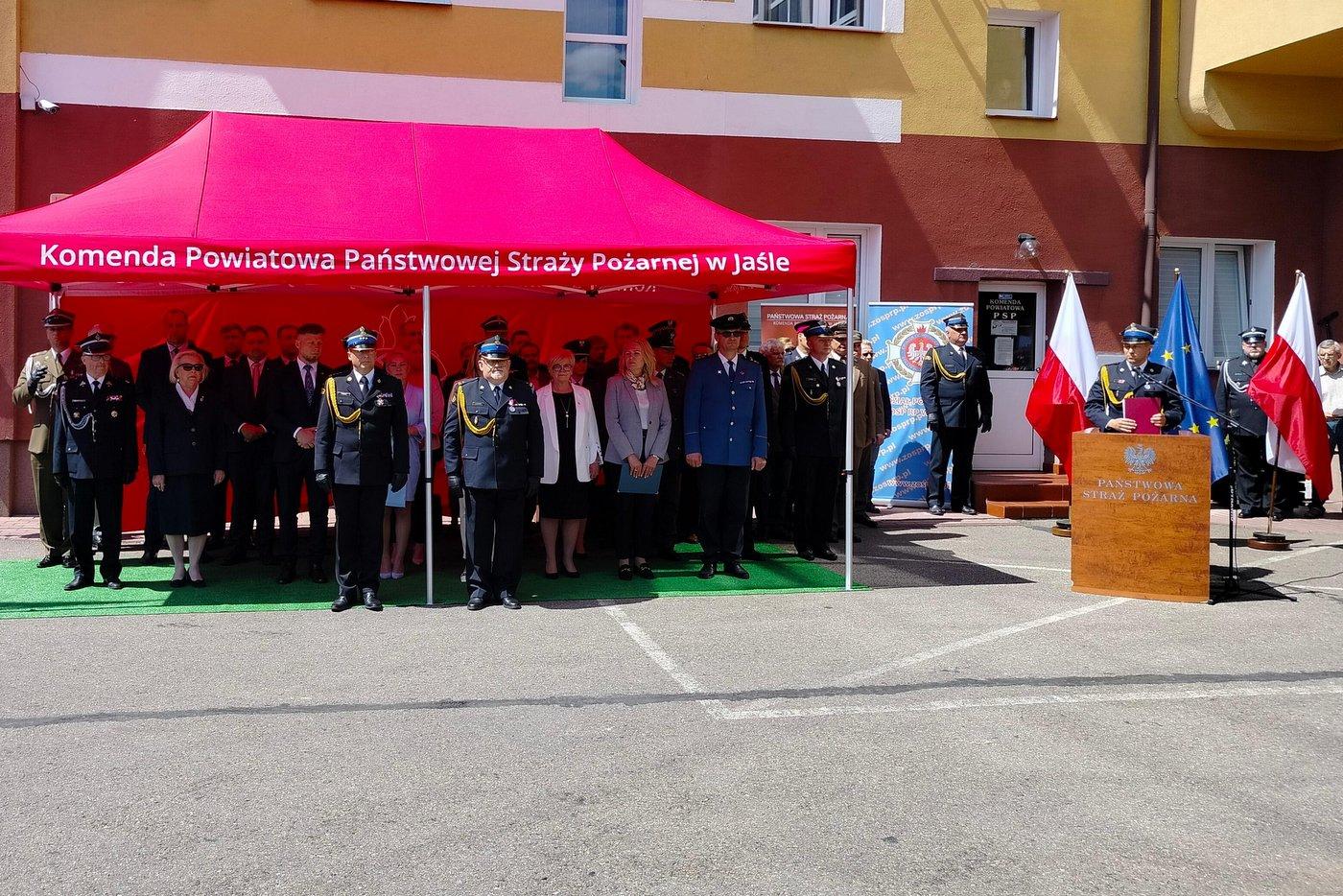 W uroczystościach uczestniczyli: poseł na Sejm RP Joanna Frydrych, senator RP Alicja Zając, posłowie do Parlamentu Europejskiego Elżbieta Łukacijewska i Bogdan Rzońca wojewoda podkarpacki Teresa Kubas-Hul, podkarpacki komendant wojewódzki PSP st. bryg. Tomasz Baran, przedstawiciele władz samorządowych, komendanci służb mundurowych, strażacy i pracownicy cywilni KP PSP w Jaśle, prezesi zarządów oddziałów gminnych i miejskich ZOSP RP, komendanci gminni OSP, poczty sztandarowe Ochotniczych Straży Pożarnych z powiatu jasielskiego, emerytowani strażacy
