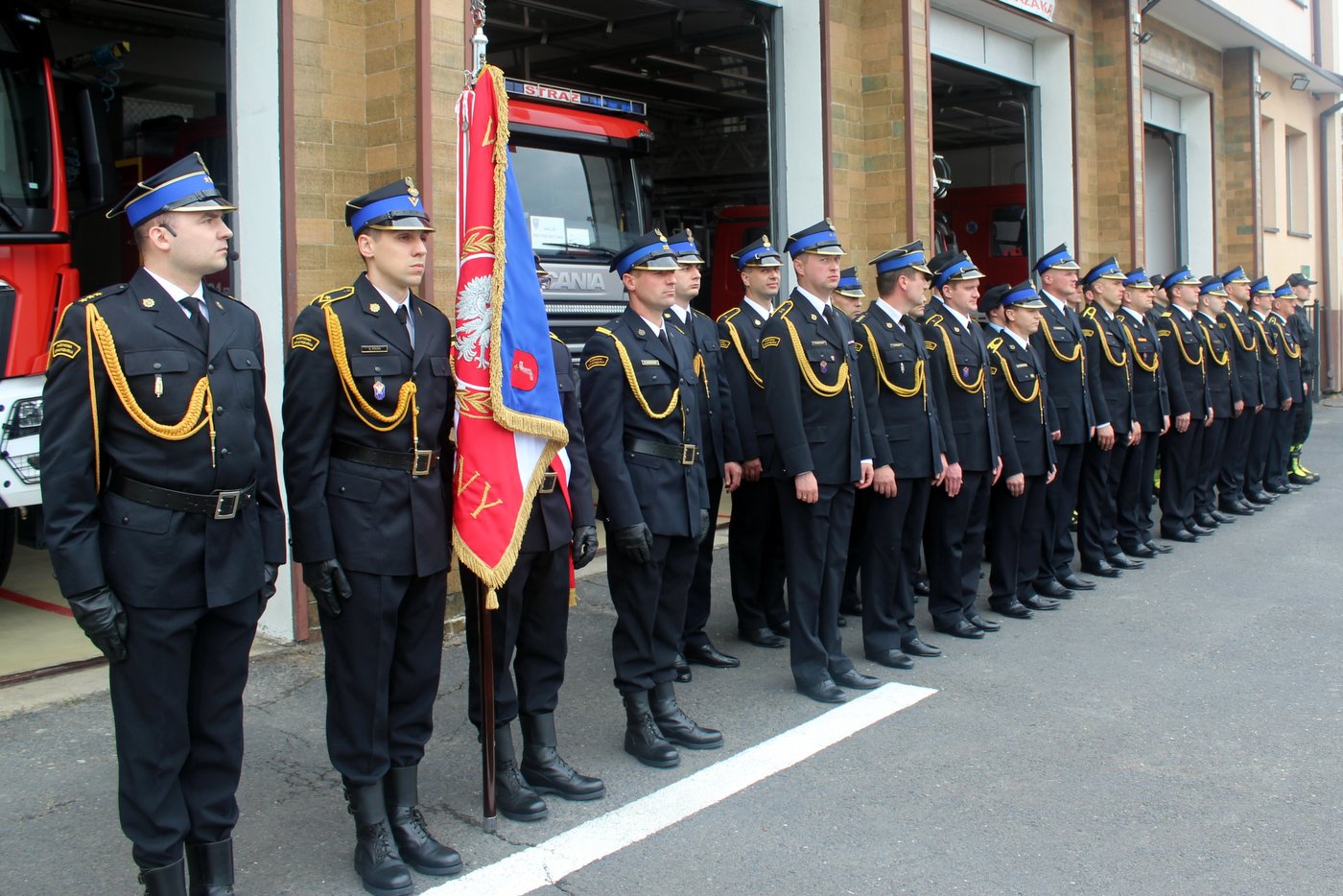 Kolejną częścią uroczystości był apel przed budynkiem Komendy Powiatowej PSP w Lesku, który rozpoczął się od złożenia meldunku zastępcy podkarpackiego komendanta wojewódzkiego PSP st. bryg. Januszowi Jabłońskiemu przez dowódcę uroczystości.