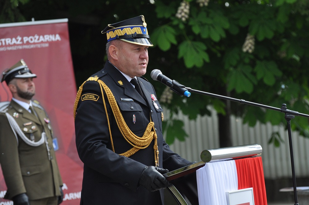 Uroczystość rozpoczęła się od złożenia meldunku oraz przeglądu pododdziałów przez podkarpackiego komendanta wojewódzkiego PSP nadbryg. Andrzeja Babca.
