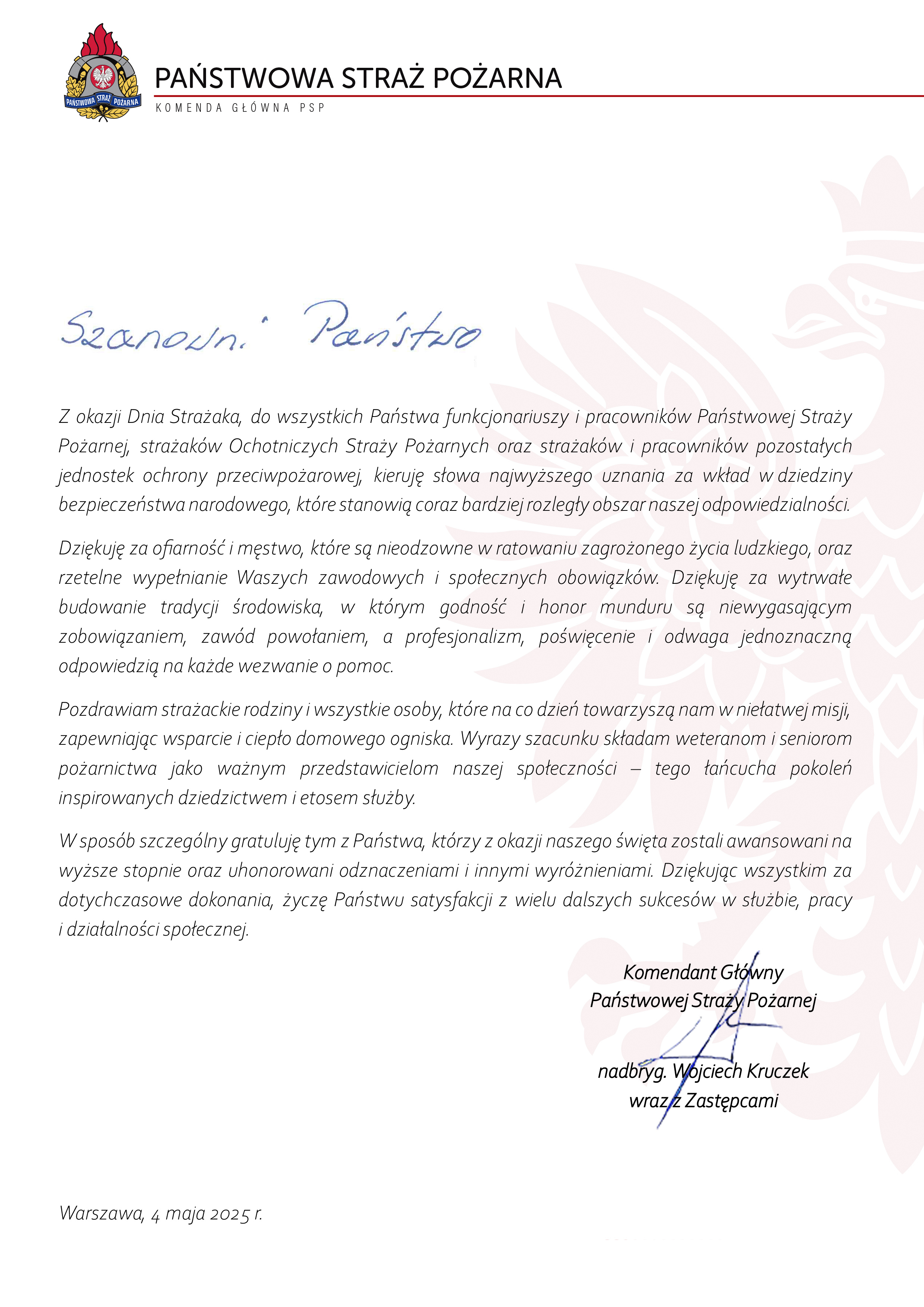 Życzenia Komendanta Głównego PSP z okazji Dnia Strażaka