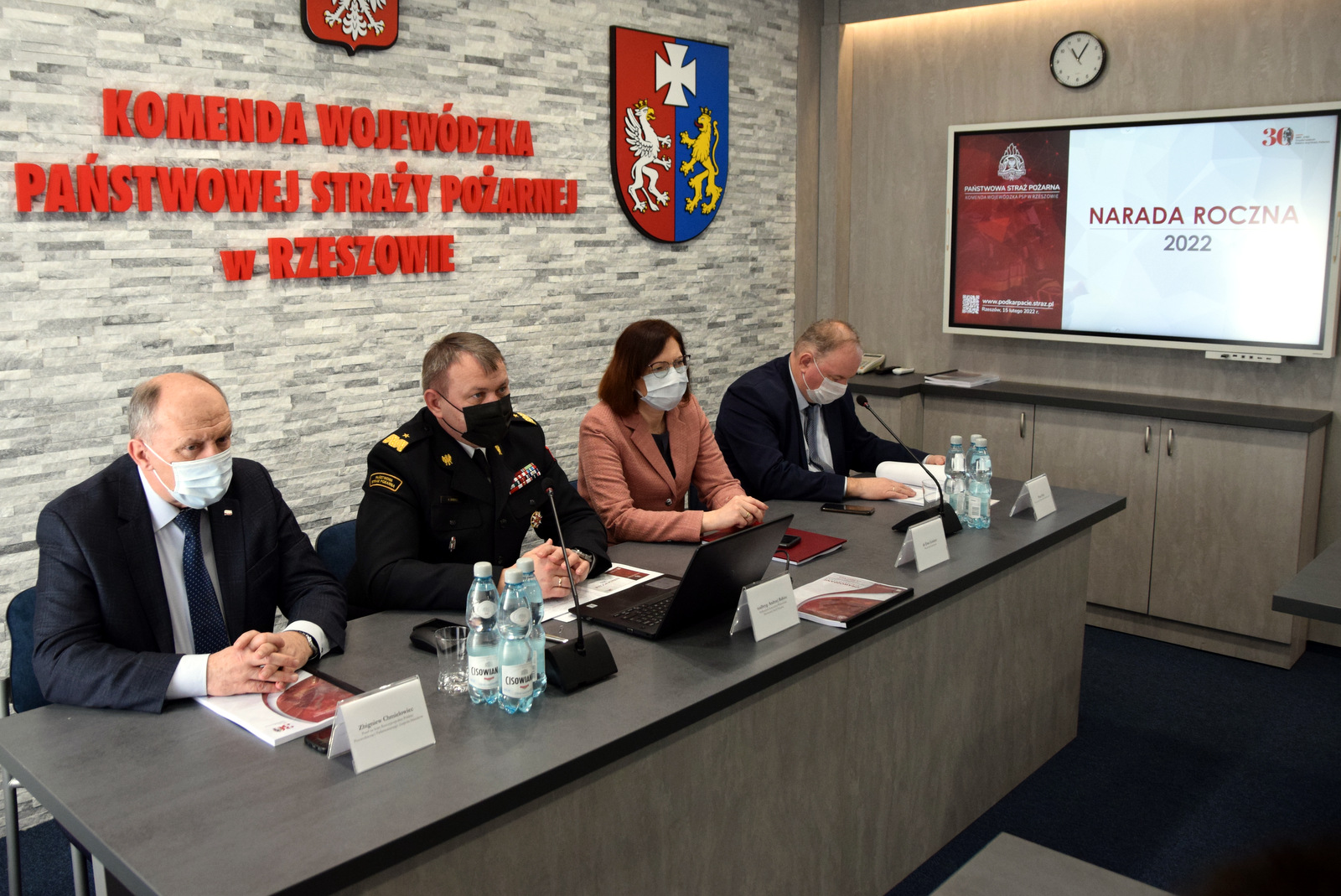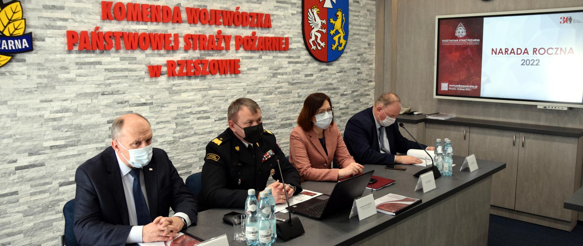 We wtorek, 15 lutego br. w sali konferencyjnej Komendy Wojewódzkiej PSP w Rzeszowie odbyła się narada podsumowująca działalności podkarpackiej Państwowej Straży Pożarnej w 2021 roku.