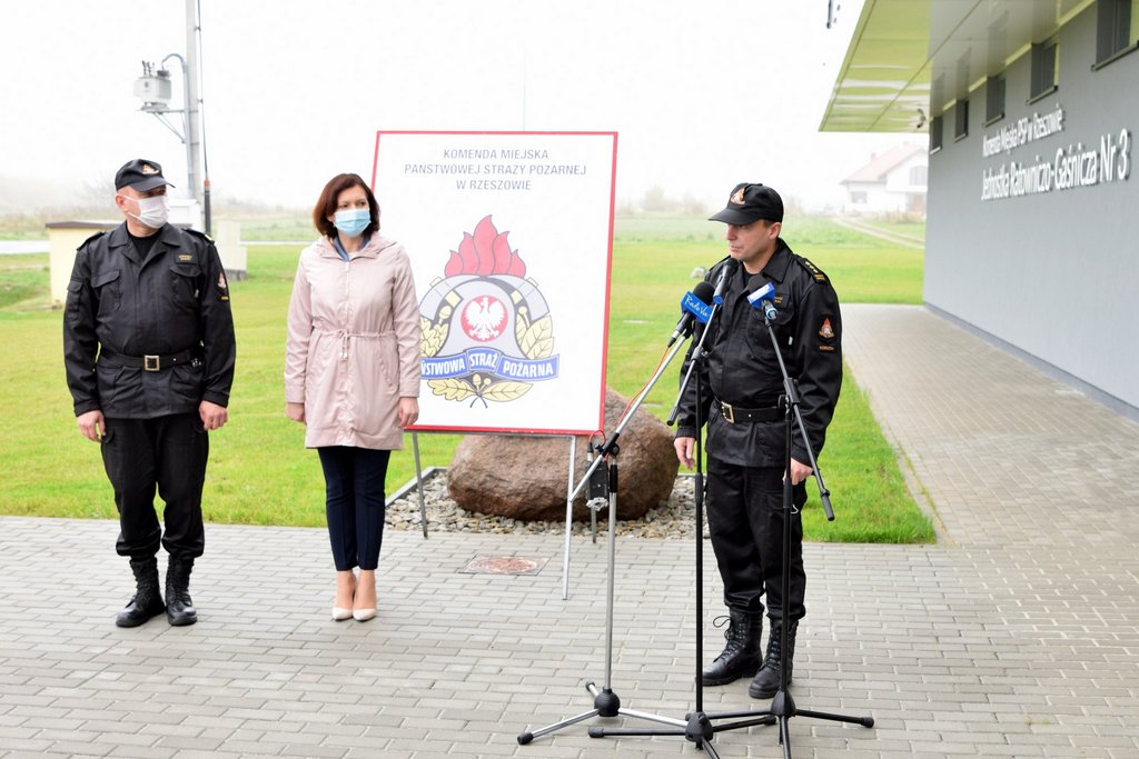 4 listopada, przed siedzibą nowo wybudowanej Jednostki Ratowniczo-Gaśniczej PSP Nr 3 w Rzeszowie przy ul. Inwestycyjnej 8 odbył się briefing prasowy, w którym uczestniczyli: wojewoda podkarpacki Ewa Leniart, podkarpacki komendant wojewódzki Państwowej Straży Pożarnej nadbryg. Andrzej Babiec, komendant miejski Państwowej Straży Pożarnej w Rzeszowie st. bryg. Tomasz Baran oraz dziennikarze.