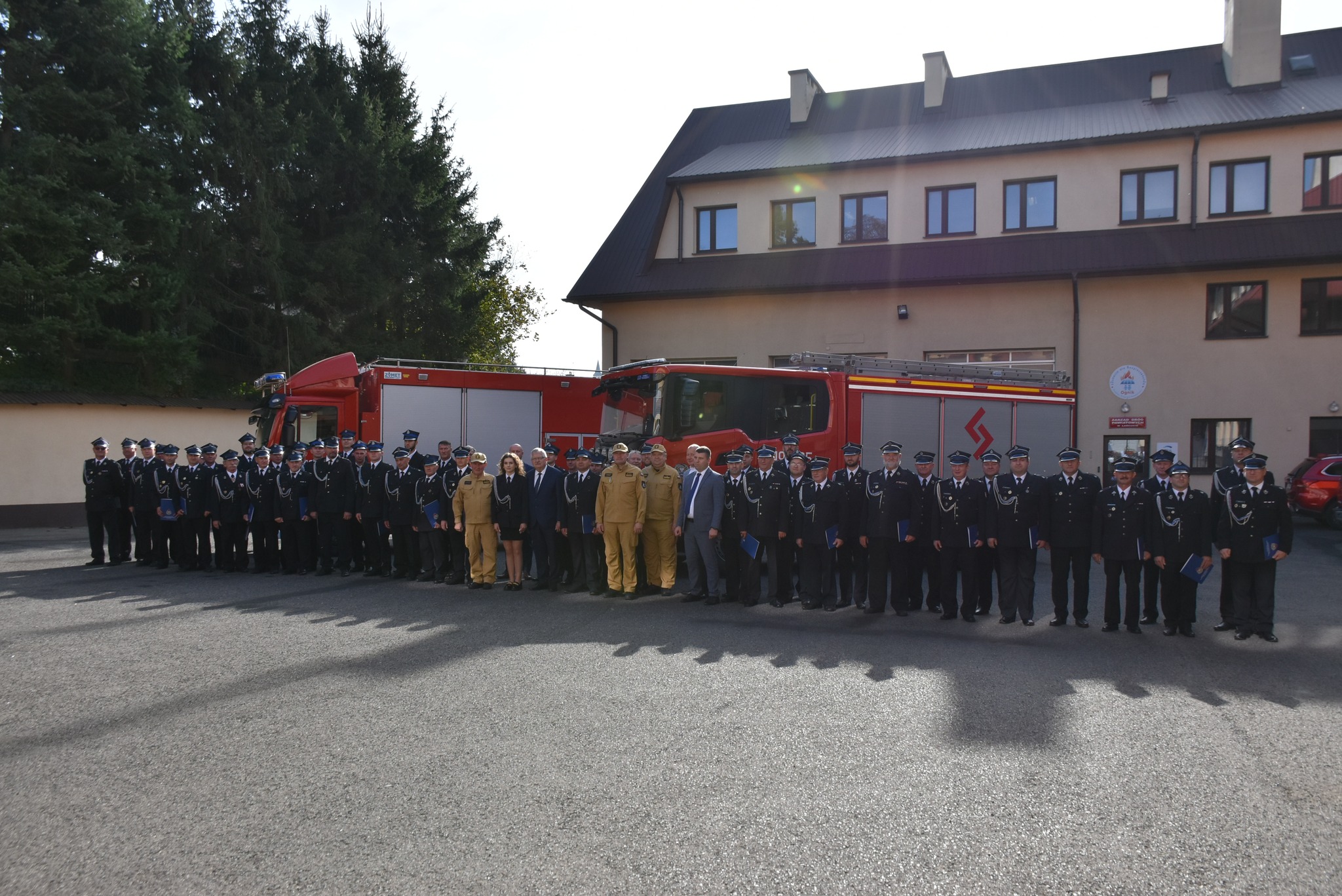W uroczystej zbiórce uczestniczyli również: komendant powiatowy PSP w Łańcucie st. bryg. Bogusław Golenia, zastępca komendanta powiatowego PSP w Leżajsku mł. bryg. Zbigniew Sarzyński oraz władze samorządowe powiatu łańcuckiego.
