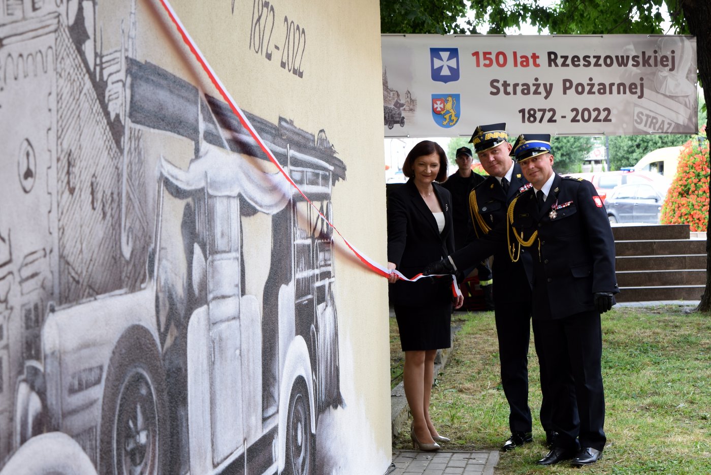 Odsłonięcie tablicy i muralu jubileuszowego z okazji 150-lecia Rzeszowskiej Straży Pożarnej