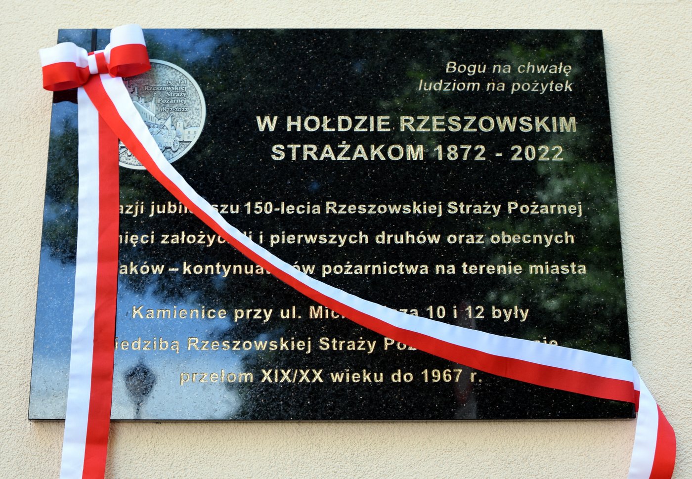 Z okazji jubileuszu 150-lecia Rzeszowskiej Straży Pożarnej pamięci założycieli i pierwszych druhów oraz obecnych strażaków – kontynuatorów pożarnictwa na terenie miasta.