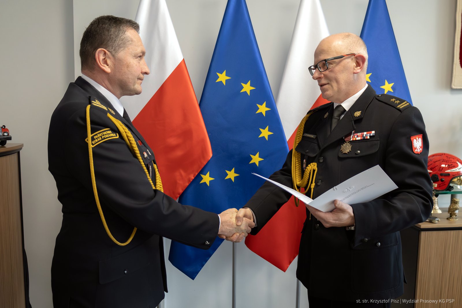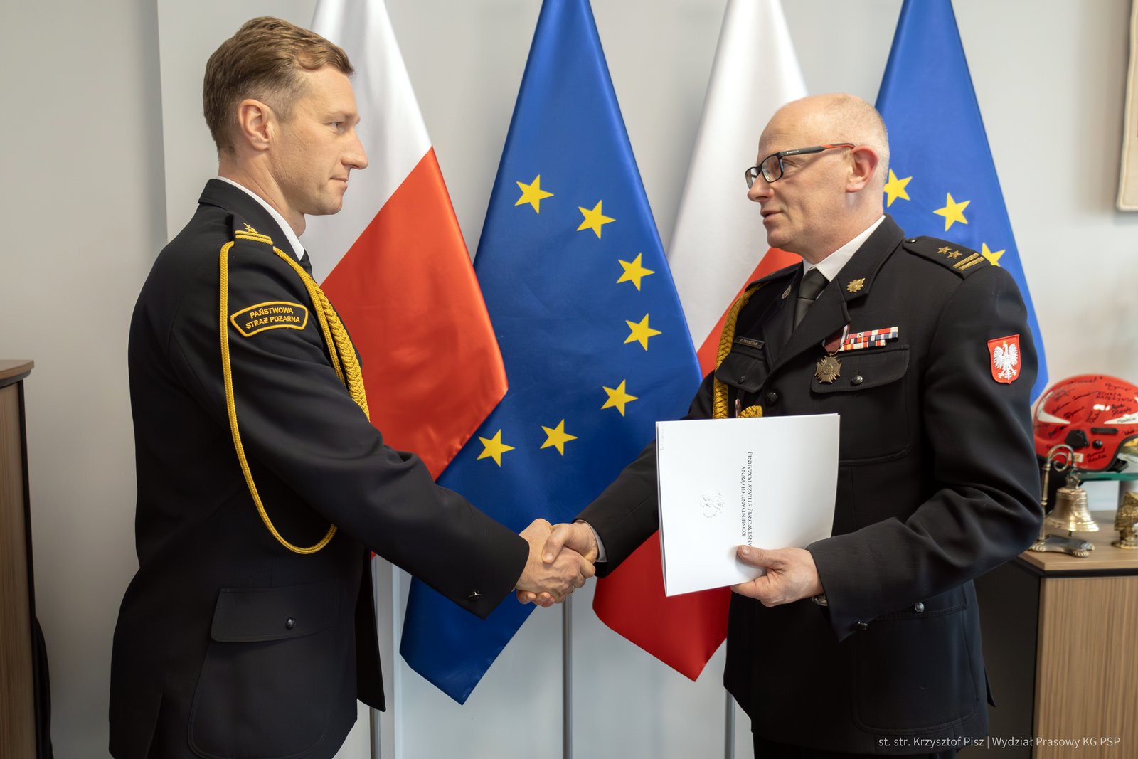 Decyzje personalne wręczył w siedzibie Komendy Głównej PSP zastępca komendanta głównego PSP bryg. Paweł Frysztak.