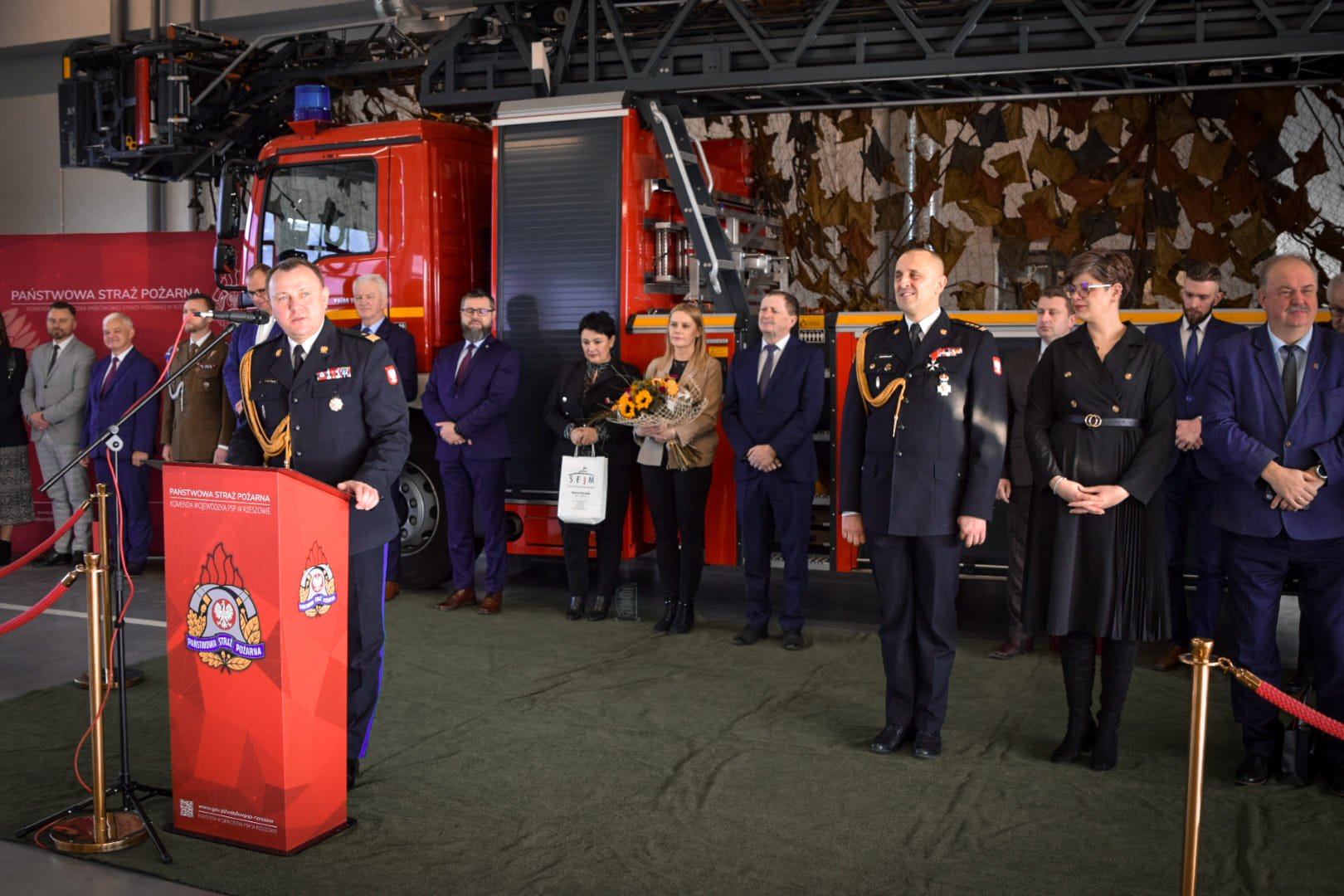 Odchodzącego zastępcę pożegnał podkarpacki komendant wojewódzki PSP nadbryg. Andrzej Babiec.