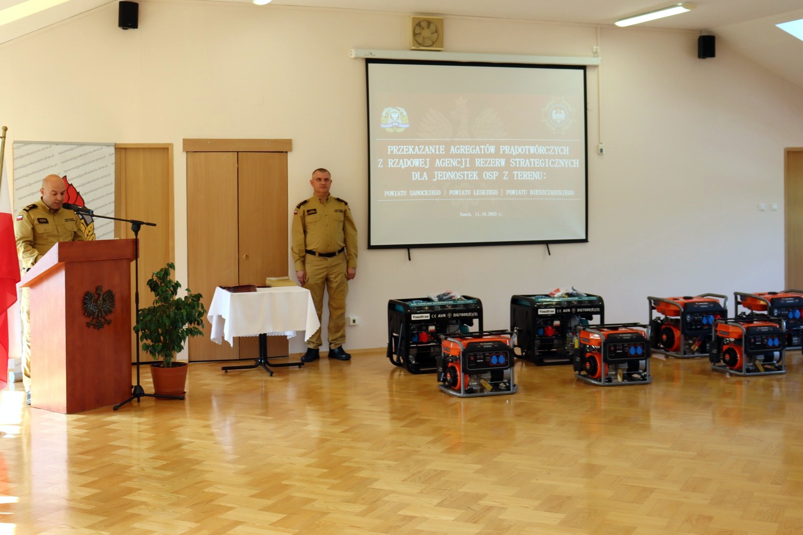 Przekazanie agregatów jednostkom OSP powiatów sanockiego, leskiego i bieszczadzkiego
