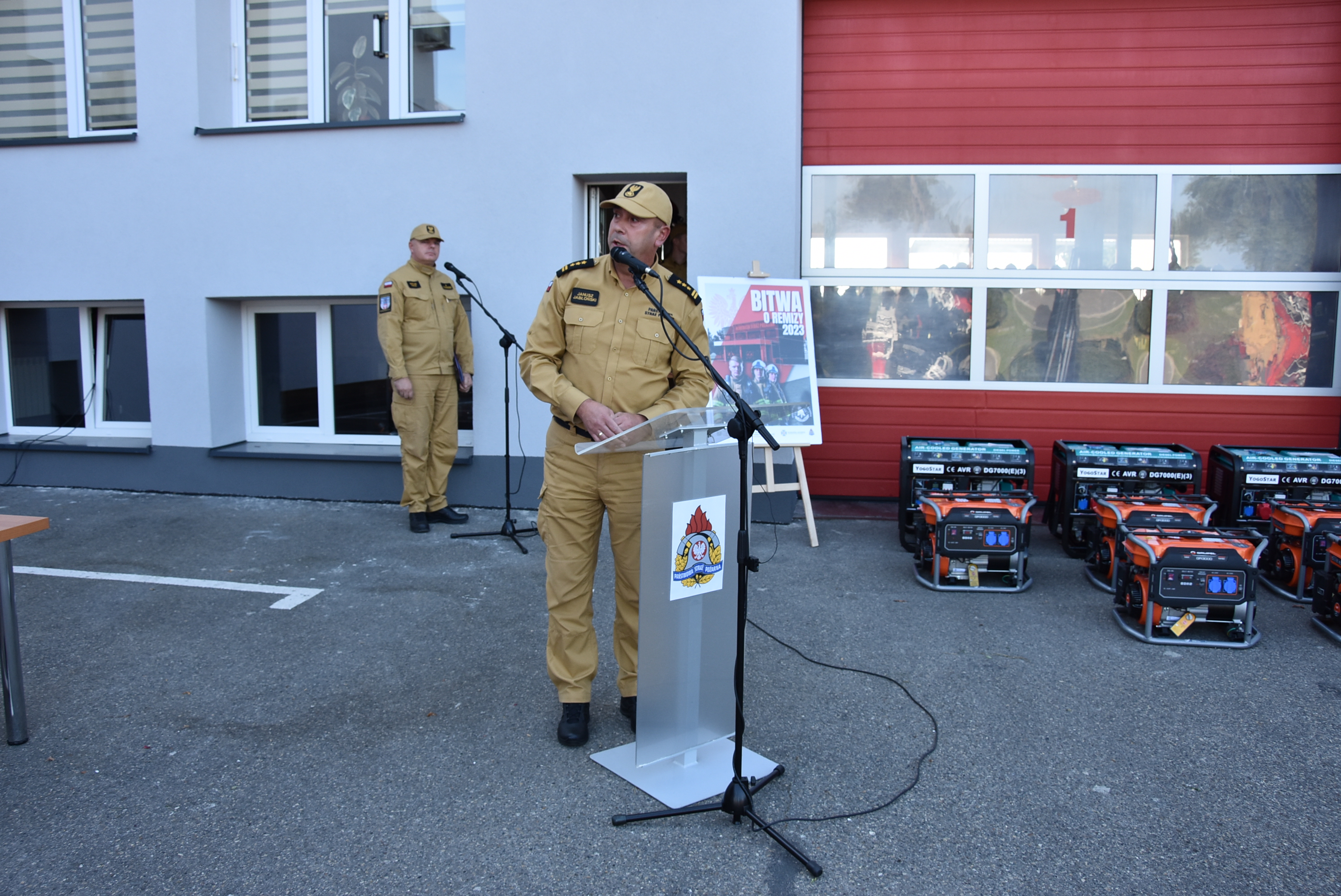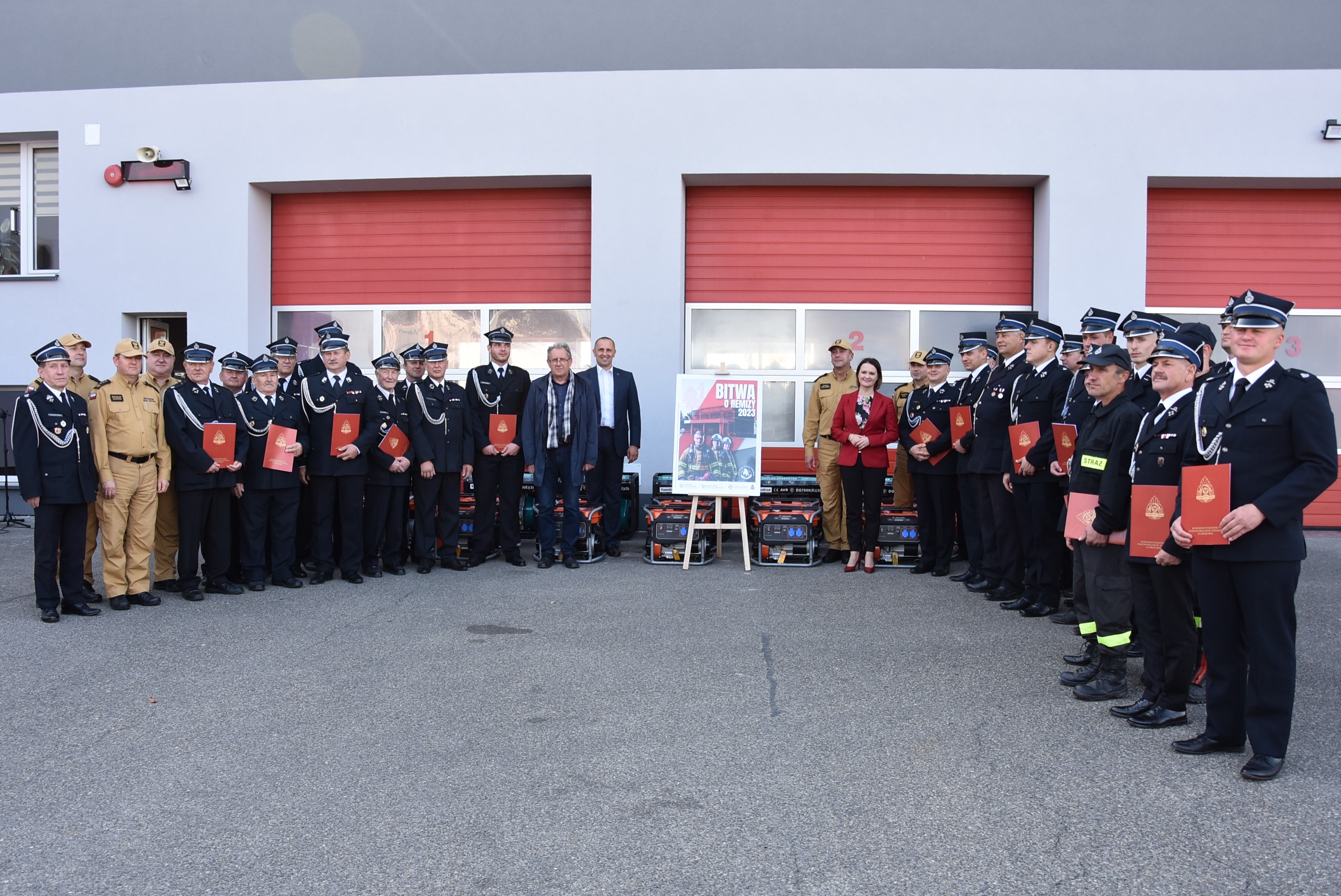 W czwartek, 12 października 2023 roku w Komendzie Powiatowej Państwowej Straży Pożarnej w Jarosławiu odbyła się uroczysta zbiórka, podczas której przedstawiciele 22 jednostek Ochotniczych Straży Pożarnych z terenu powiatów jarosławskiego, przemyskiego, przeworskiego oraz lubaczowskiego otrzymali agregaty prądotwórcze pozyskane z Rządowej Agencji Rezerw Strategicznych.