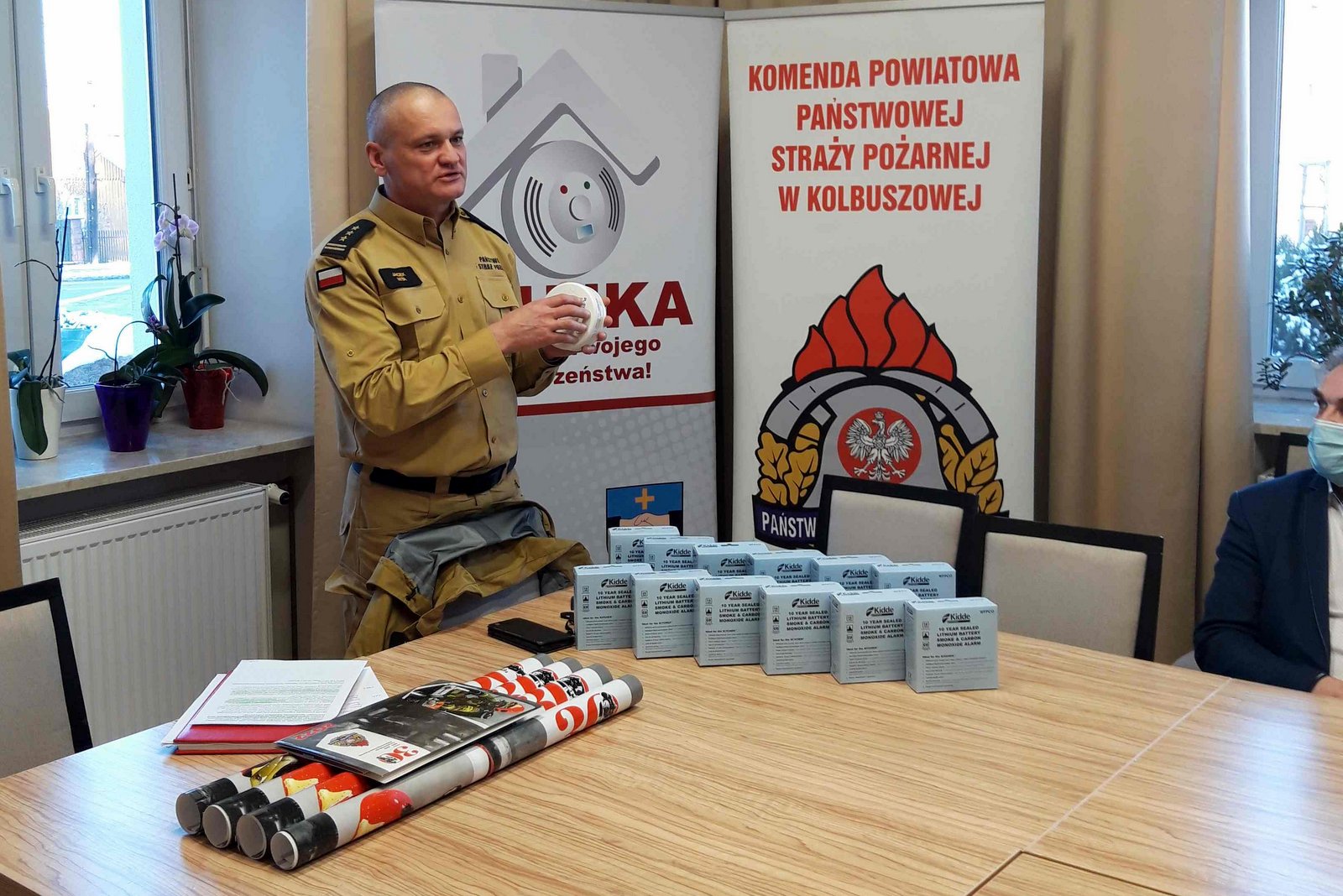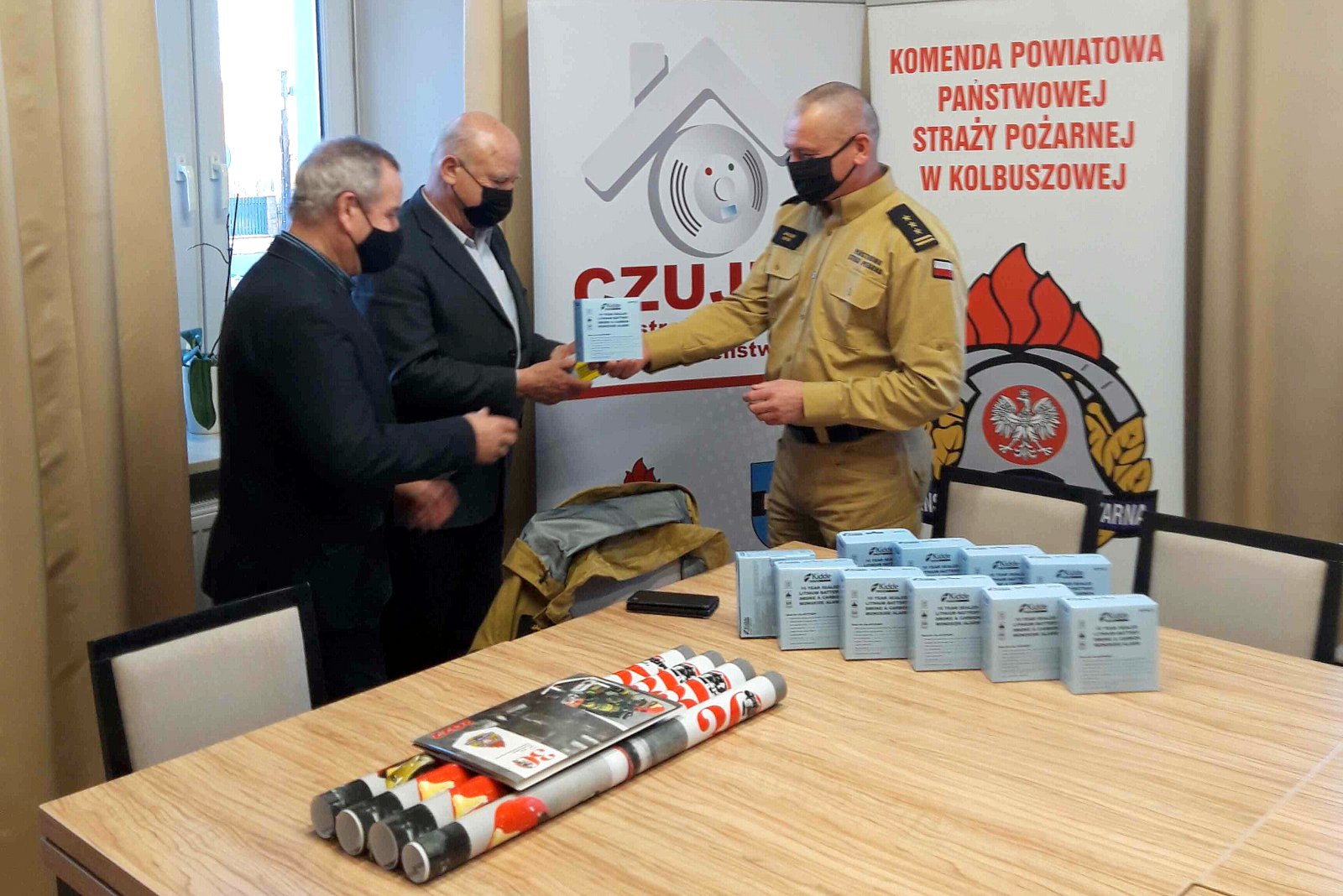 21 grudnia 2021r. w Urzędzie Miejskim w Kolbuszowej odbyło się spotkanie, podczas którego komendant powiatowy PSP st. bryg. Jacek Nita, za pośrednictwem prezesów Spółdzielni Mieszkaniowych w Kolbuszowej przekazał mieszkańcom Gminy Kolbuszowa czujki tlenku węgla i dymu.