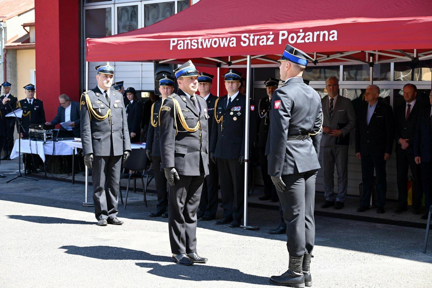 Meldunek o gotowości do uroczystości przyjął od dowódcy uroczystości podkarpacki komendant wojewódzki PSP st. bryg. Tomasz Baran. W uroczystości uczestniczył również zastępca podkarpackiego komendanta wojewódzkiego PSP bryg. Grzegorz Oleniacz wraz z komendantami pobliskich jednostek organizacyjnych PSP.