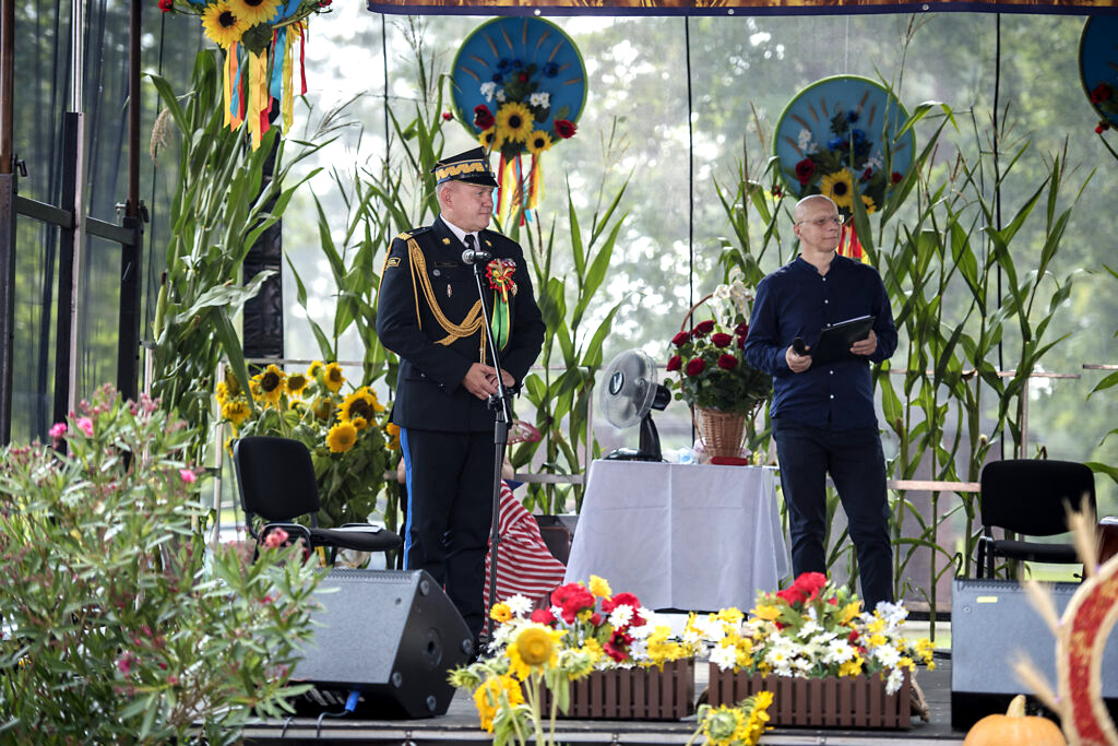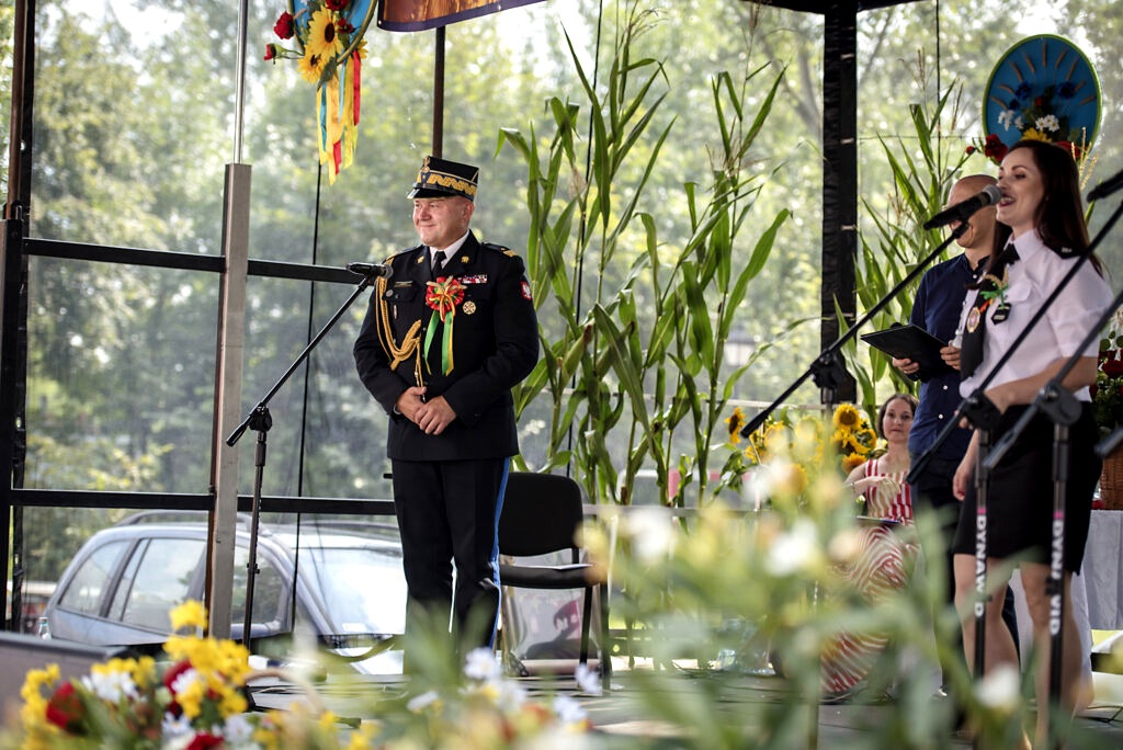 Podczas święta plonów szef podkarpackich strażaków został uhonorowany wieńcem dożynkowym, który otrzymał jako symbol wdzięczności za zaangażowanie w działalność lokalnej społeczności.