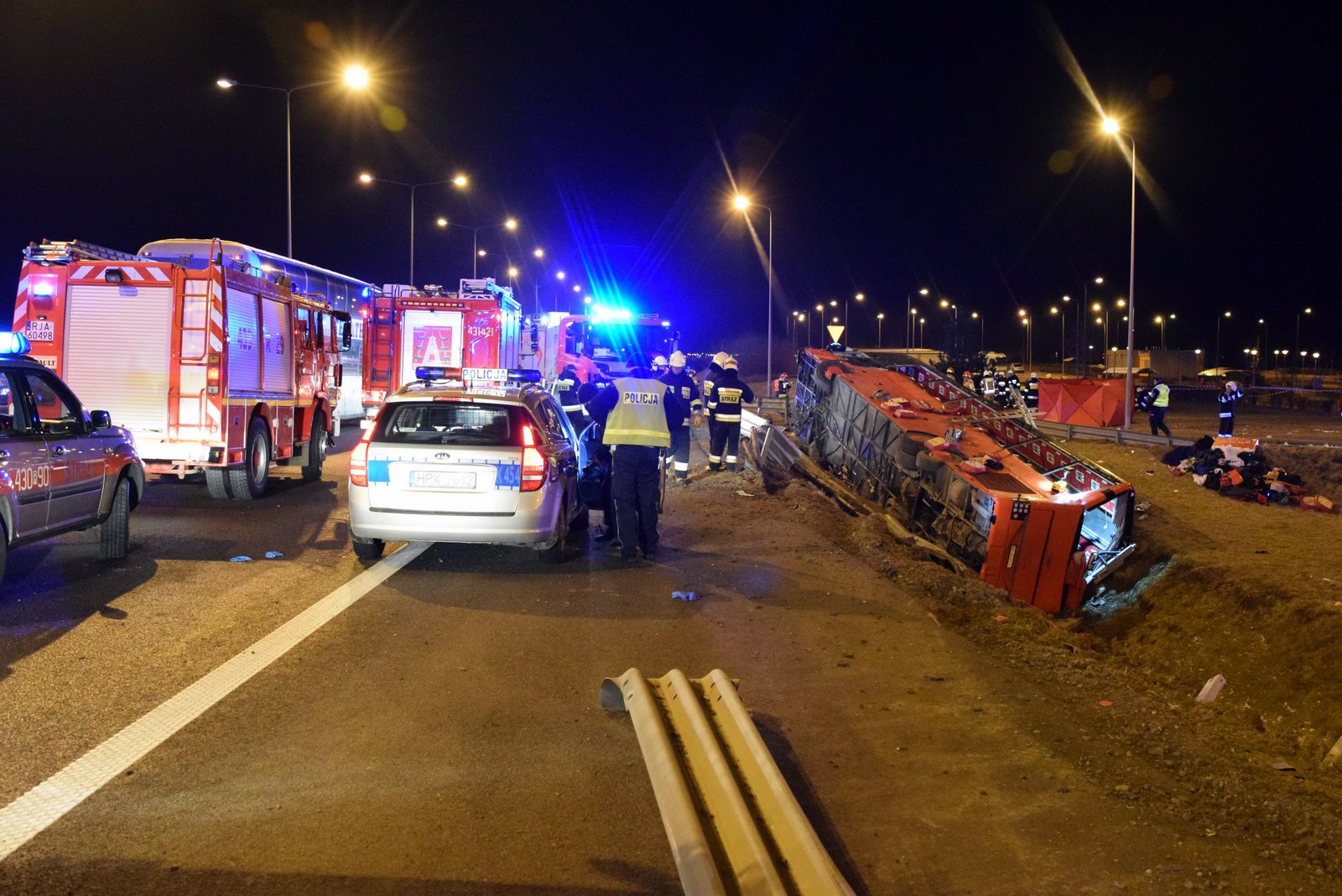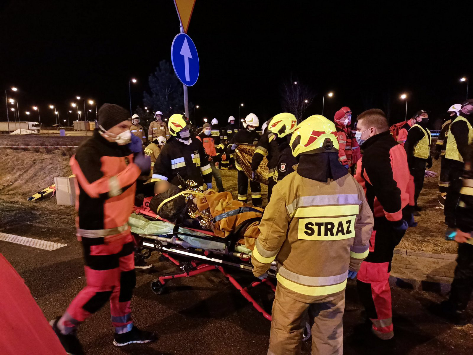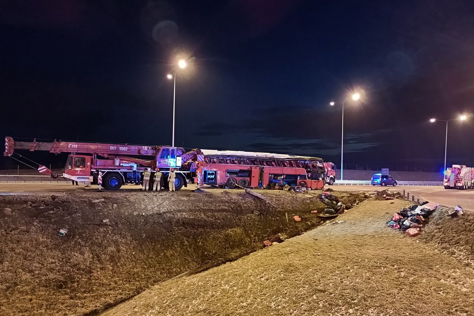 Informację o zdarzeniu strażacy otrzymali około godz. 23:50. Z nieustalonych przyczyn, na wysokości MOP Kaszyce, kierujący autokarem zjechał z jezdni i przebił barierki. Pojazd stoczył się z nasypu. Autokarem podróżowało 57 osób, wszyscy to obywatele Ukrainy.