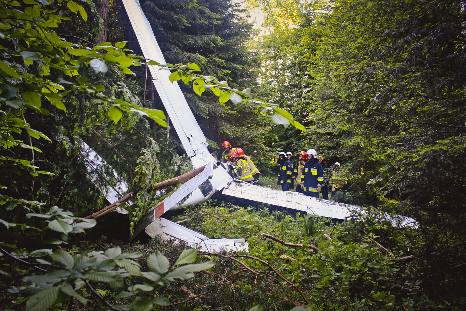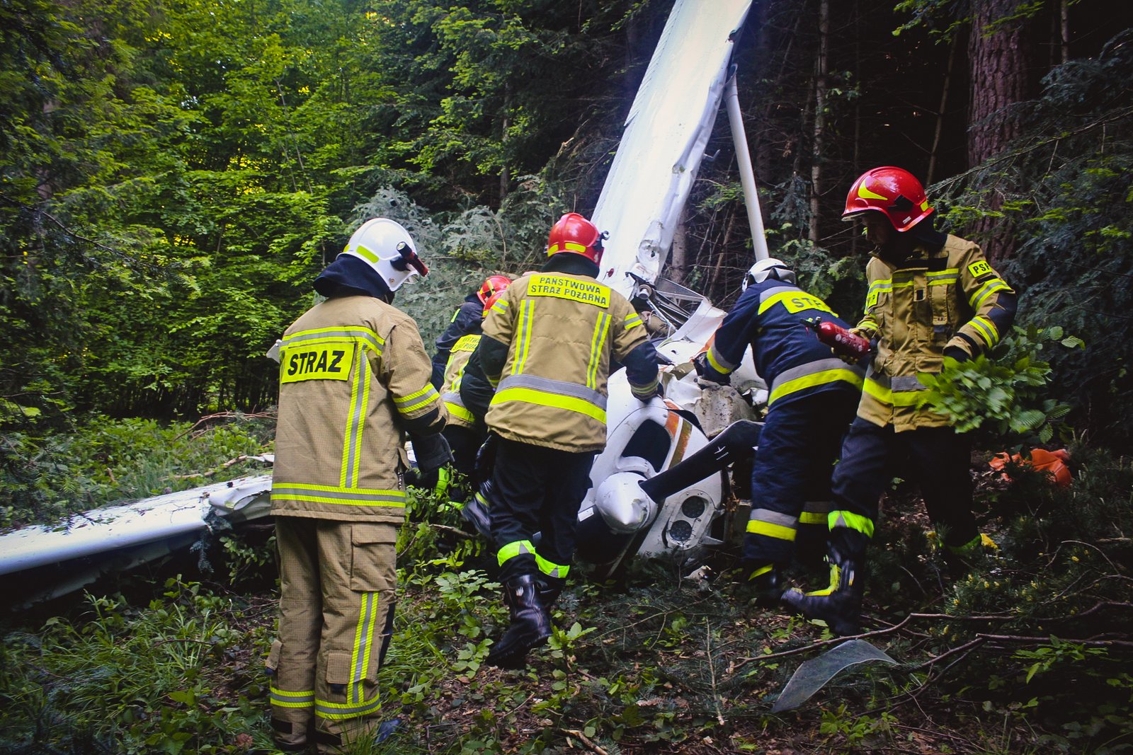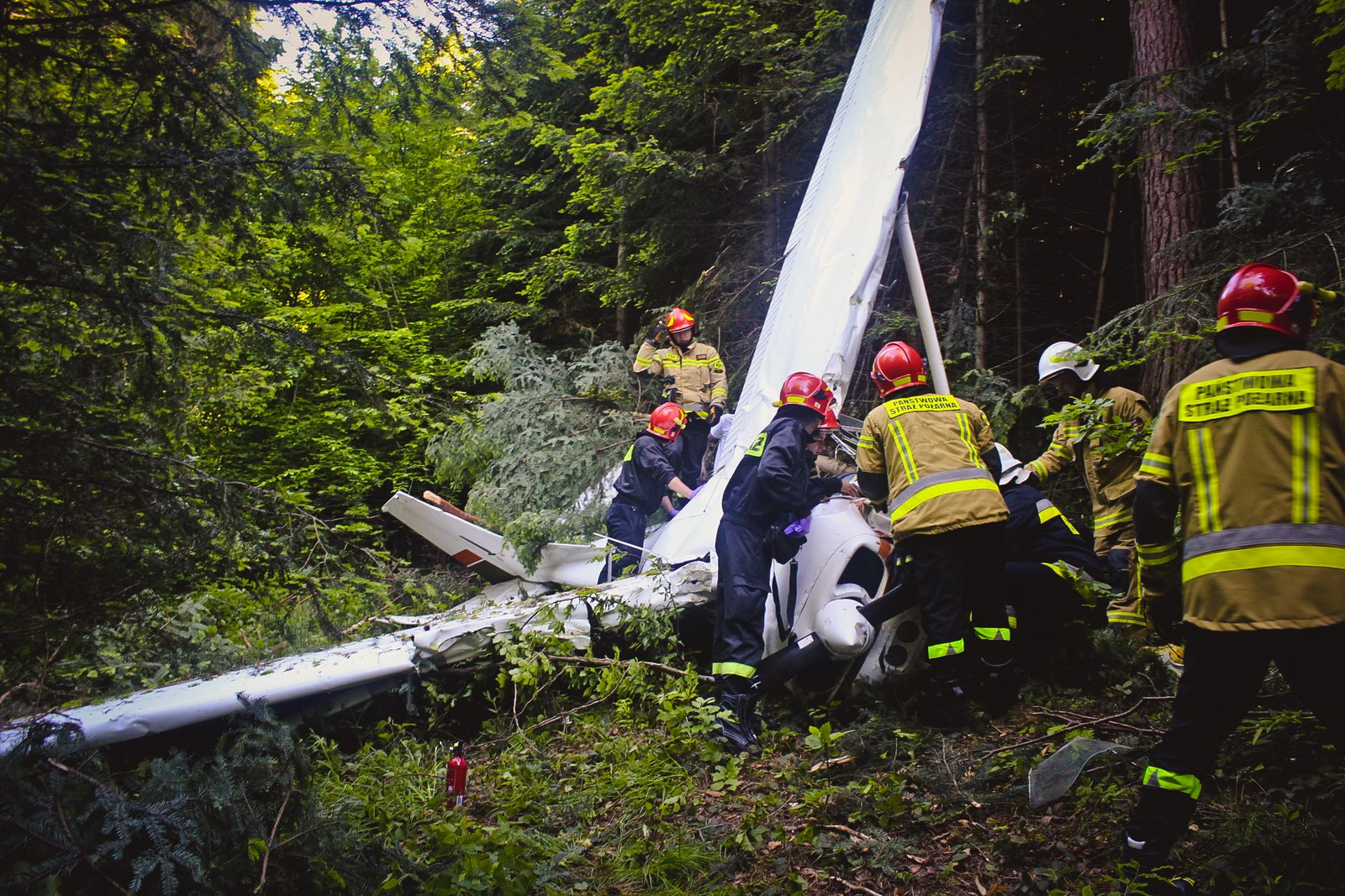 Informację o wypadku strażacy otrzymali w niedzielę (6 czerwca) ok. godz. 17:30. Po przybyciu na miejsce zdarzenia stwierdzono, że na ziemi w odległości ok. 50 m od pasa lotniska leży rozbita awionetka. Wrak samolotu znajdował się na terenie zalesionym. Osoby podróżujące awionetką opuściły wrak samodzielnie. W momencie dojazdu zastępów straży pożarnych pomocy poszkodowanym udzielali ratownicy Lotniczego Pogotowia Ratunkowego, na miejsce dojeżdżały dwie karetki ZRM. Wszystkich uczestników wypadku zabrano do szpitali.