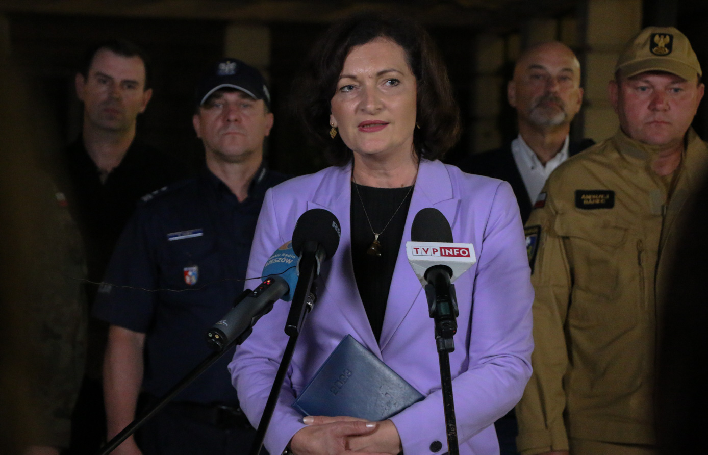Ewa Leniart przyznała, że w tej chwili służby koncentrują się na likwidowaniu skutków burzy, przede wszystkim pracując nad usunięciem awarii linii wysokiego napięcia.