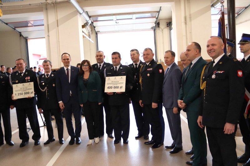 Kolejnym bardzo ważnym elementem uroczystości było przekazanie promesy na zakup ciężkiego samochodu ratowniczo-gaśniczego o wartości 1 250 000 zł dla jednostki OSP w Pysznicy oraz przekazanie dofinansowania na zakup lekkiego samochodu ratowniczo-gaśniczego o wartości 400 000 zł dla jednostki OSP w Zbydniowie.