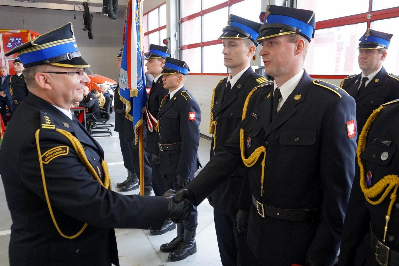 Uroczystość rozpoczęła się złożeniem meldunku podkarpackiemu komendantowi wojewódzkiemu PSP st. bryg. Tomaszowi Baranowi, który następnie dokonał przeglądu pododdziałów i przywitał się ze strażakami.