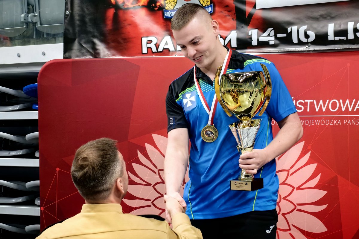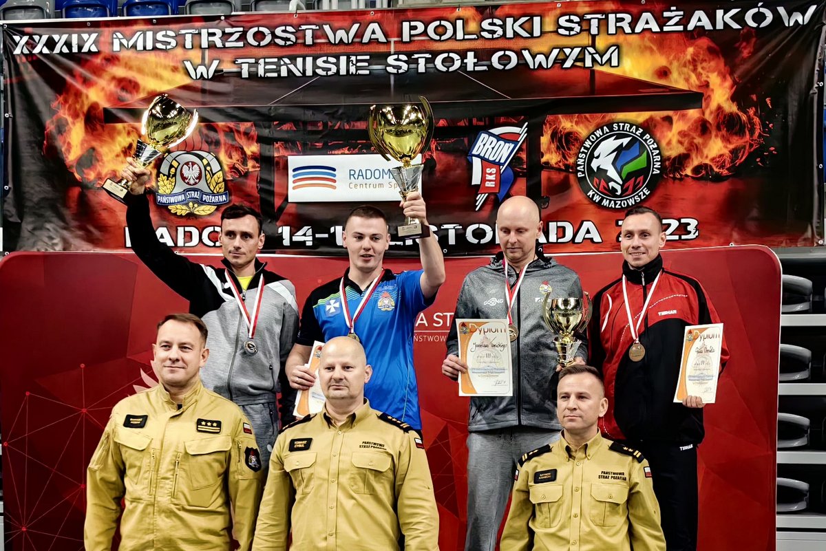 Trzeci z rzędu tytuł indywidulnego Mistrza Polski wywalczony przez Piotra Cyrnka oraz srebrny medal w rywalizacji drużynowej, to sukcesy podkarpackich strażaków na XXXIX Mistrzostwach Polski PSP w Tenisie Stołowym rozegranych w Radomiu w dniach 14-16 listopada br.