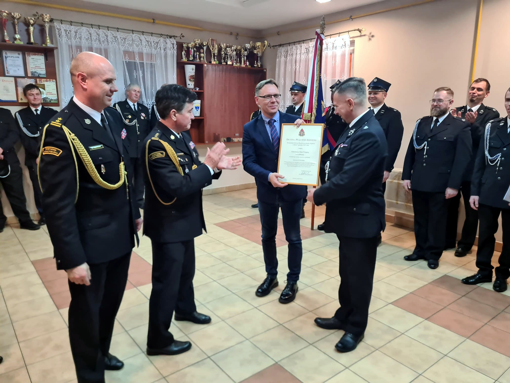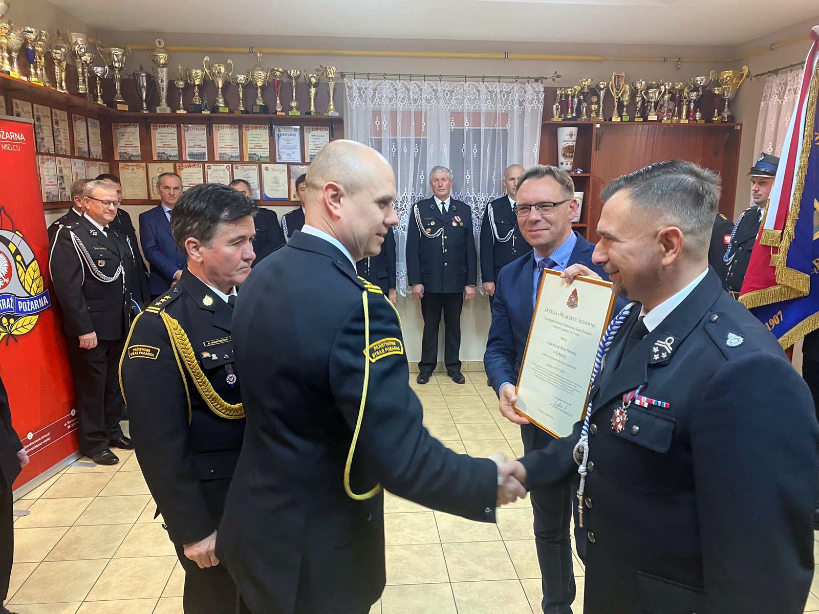 Aktu włączenia jednostki do systemu wręczył zastępca podkarpackiego komendanta wojewódzkiego PSP st. bryg. Andrzej Marczenia wraz z komendantem powiatowym PSP w Mielcu bryg. Łukaszem Kapinosem. Decyzje odebrał prezes jednostki w Kębłowie dh Piotr Kędzior wraz z wójtem gminy Padew Narodowa Robertem Plutą.