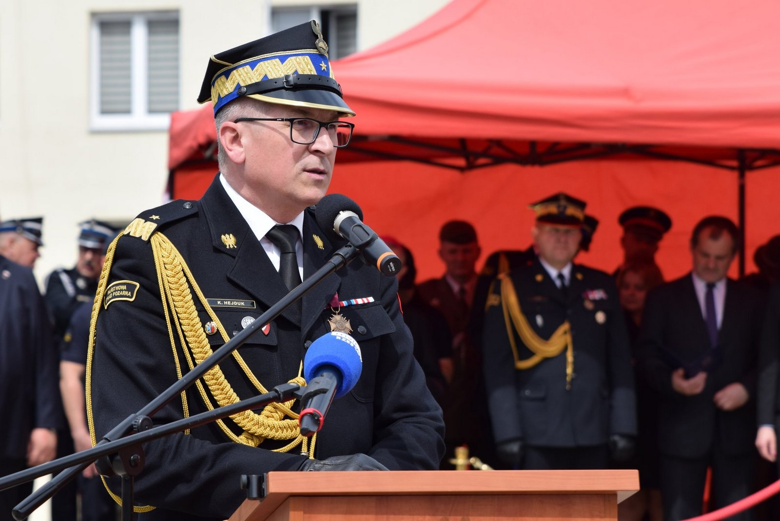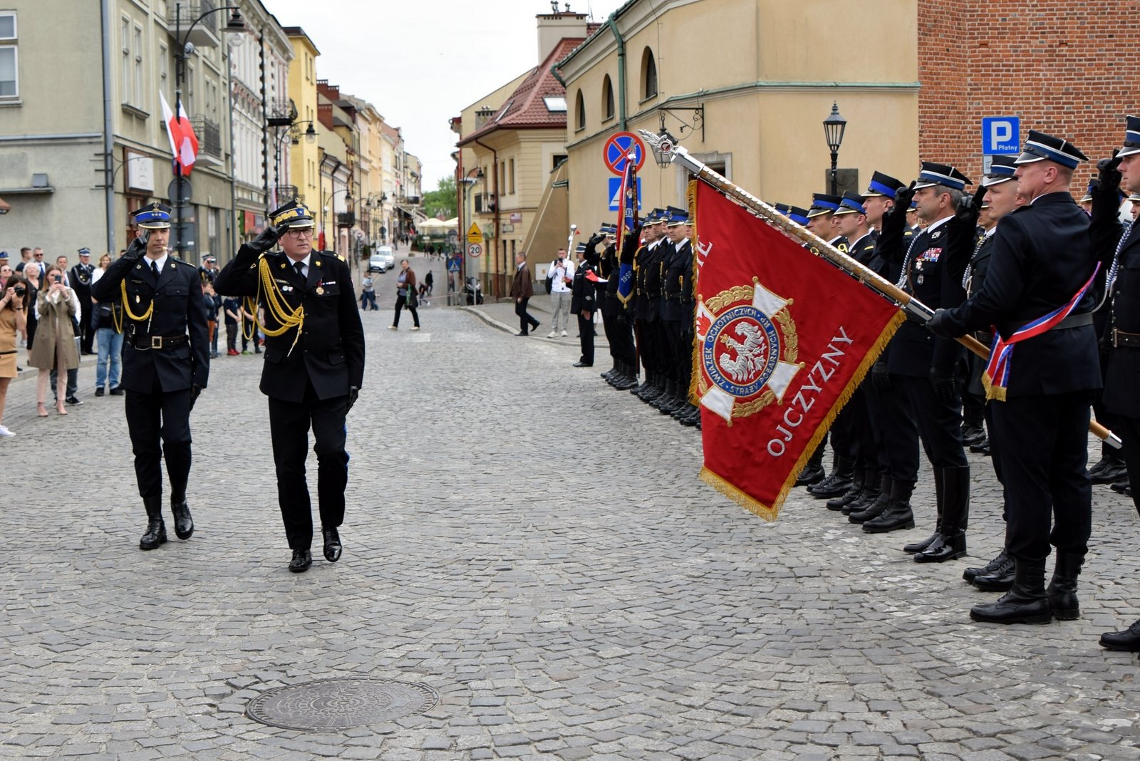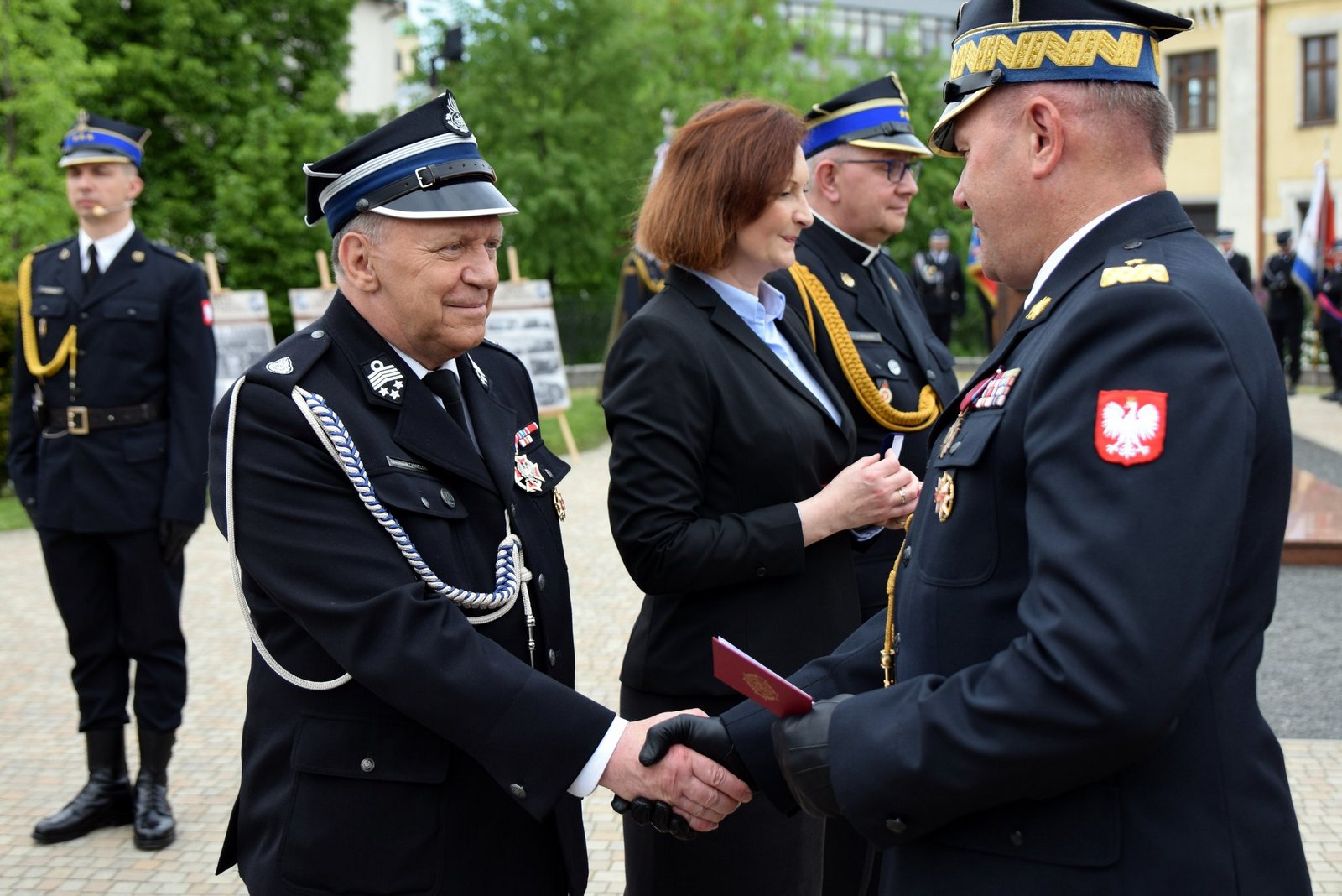 W uroczystości uczestniczyły poczty sztandarowe i kompanie honorowe Państwowej Straży Pożarnej, Policji, Straży Granicznej, Wojska Polskiego, Służby Więziennej i Ochotniczych Straży Pożarnych. Piękną oprawę muzyczną uroczystości zapewniła Orkiestra Dęta Ochotniczej Straży Pożarnej w Gaci.