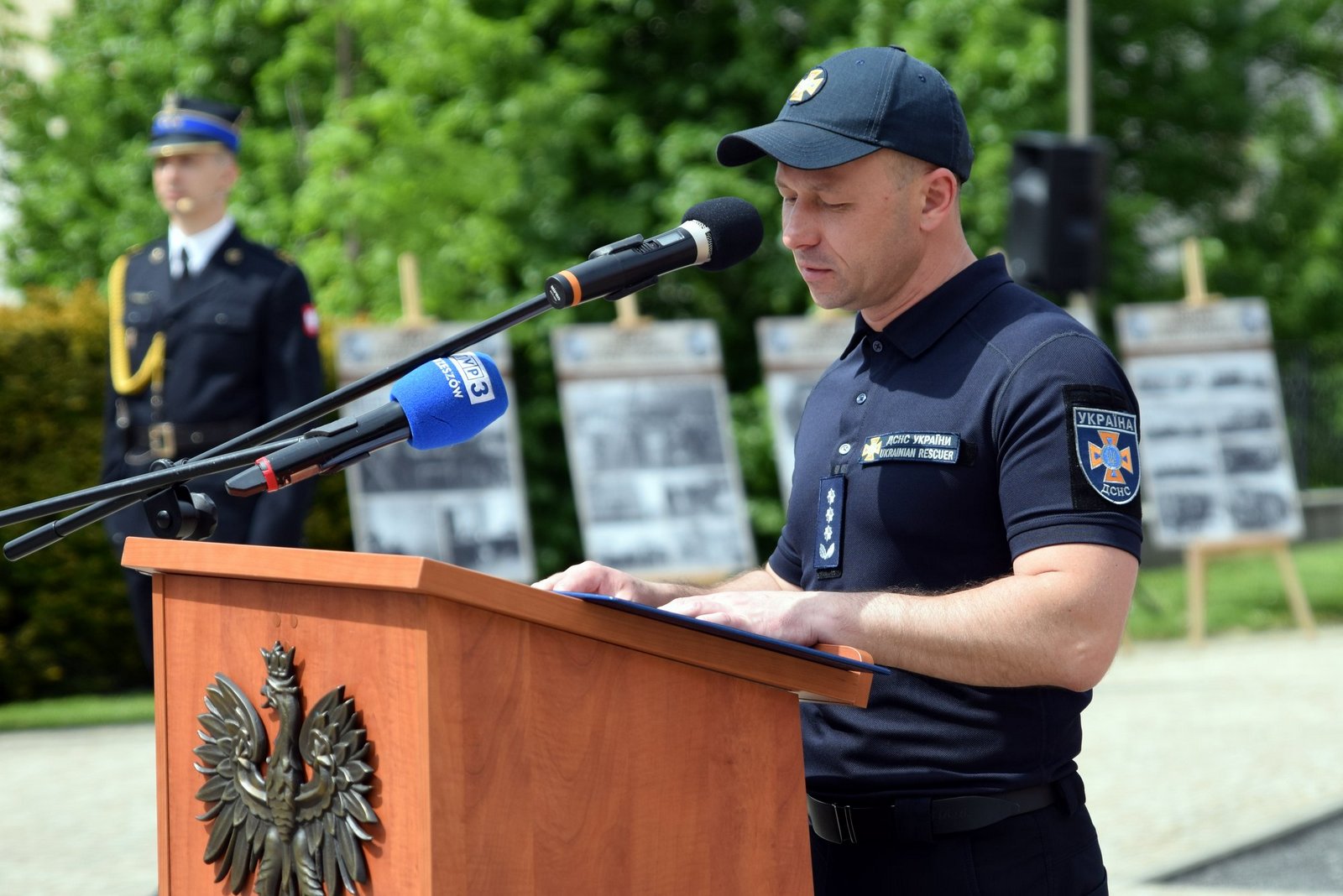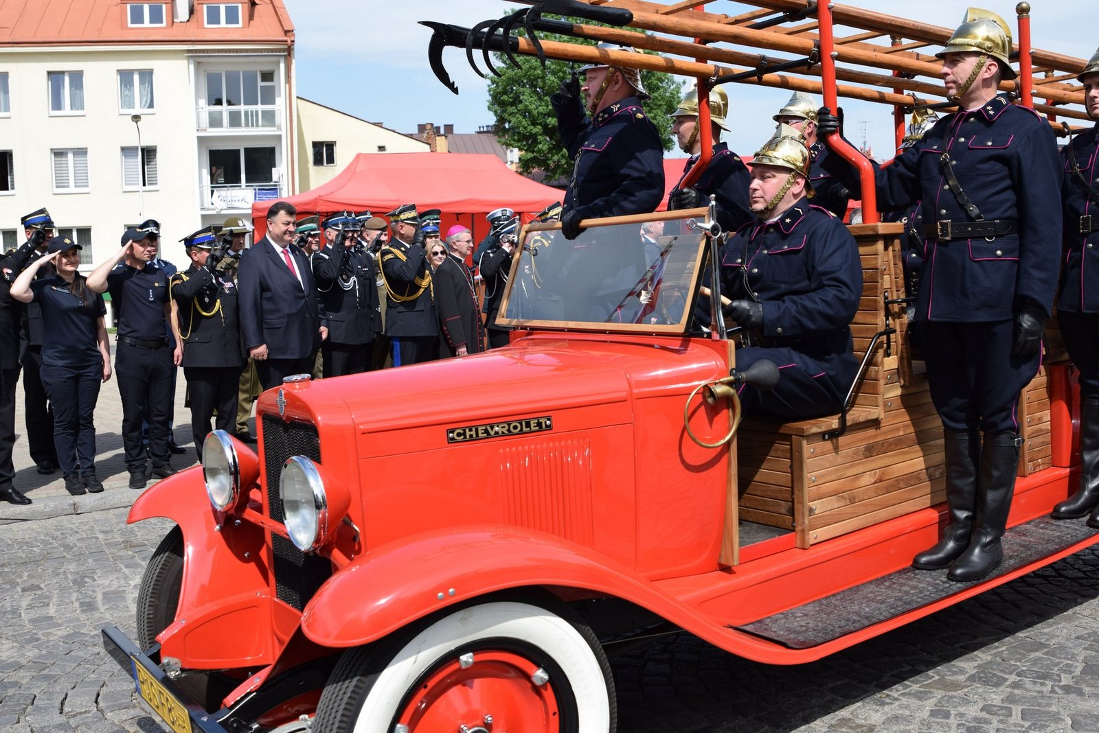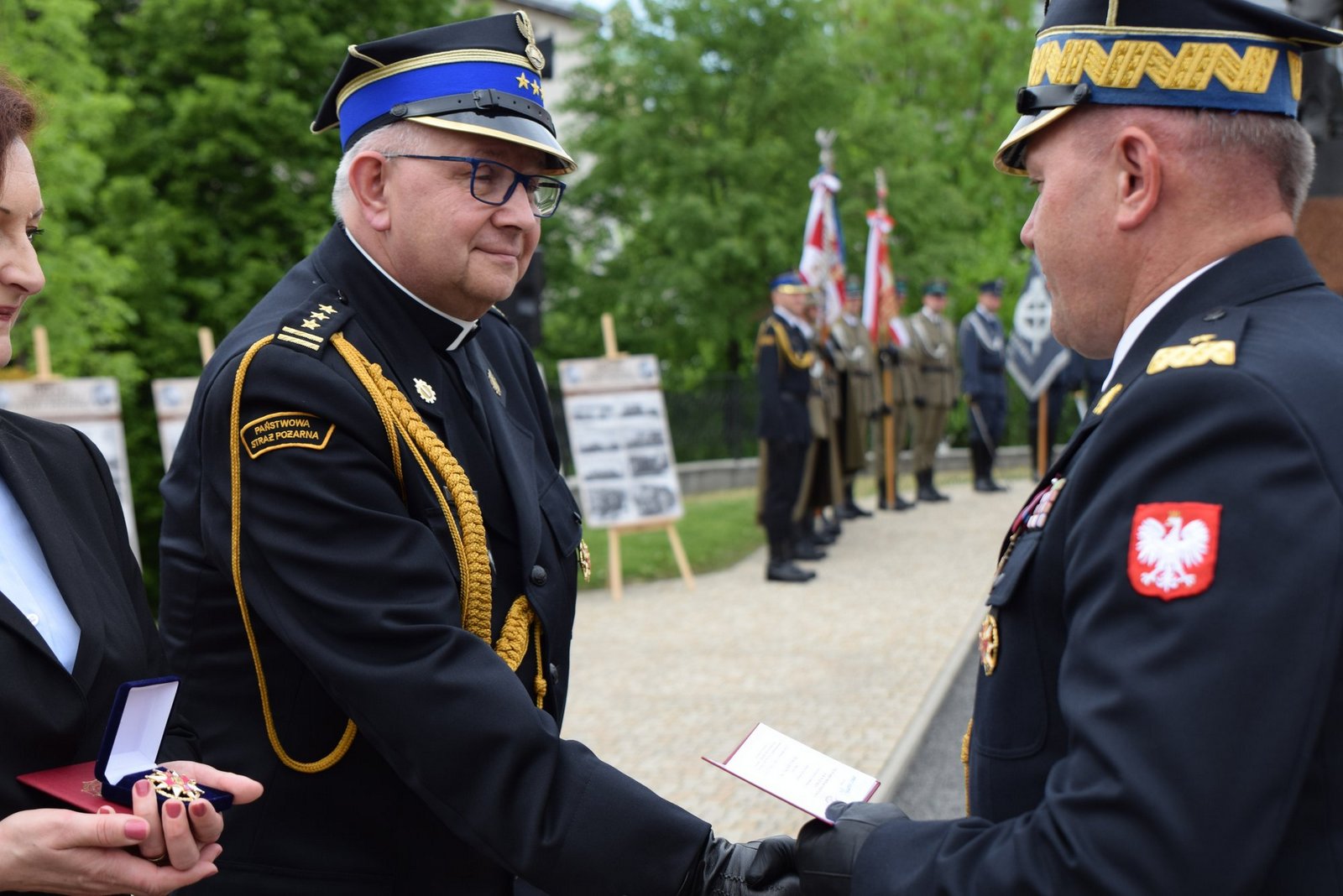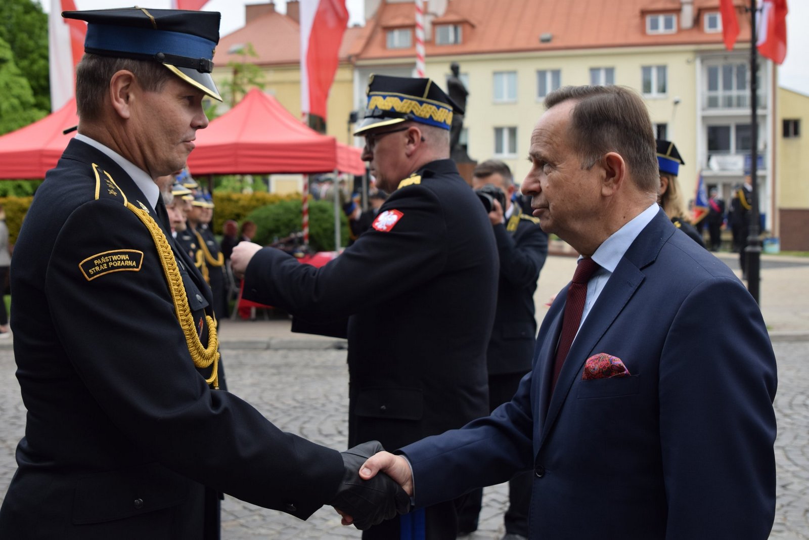W uroczystości uczestniczyły poczty sztandarowe i kompanie honorowe Państwowej Straży Pożarnej, Policji, Straży Granicznej, Wojska Polskiego, Służby Więziennej i Ochotniczych Straży Pożarnych. Piękną oprawę muzyczną uroczystości zapewniła Orkiestra Dęta Ochotniczej Straży Pożarnej w Gaci.