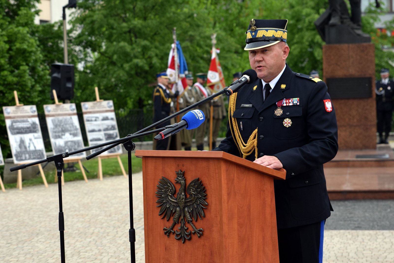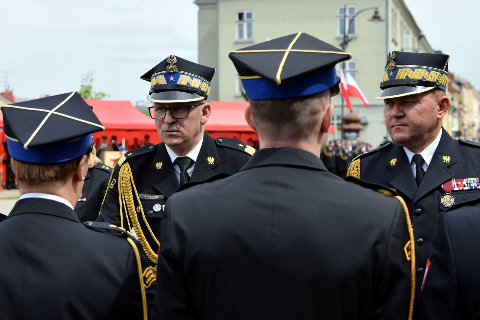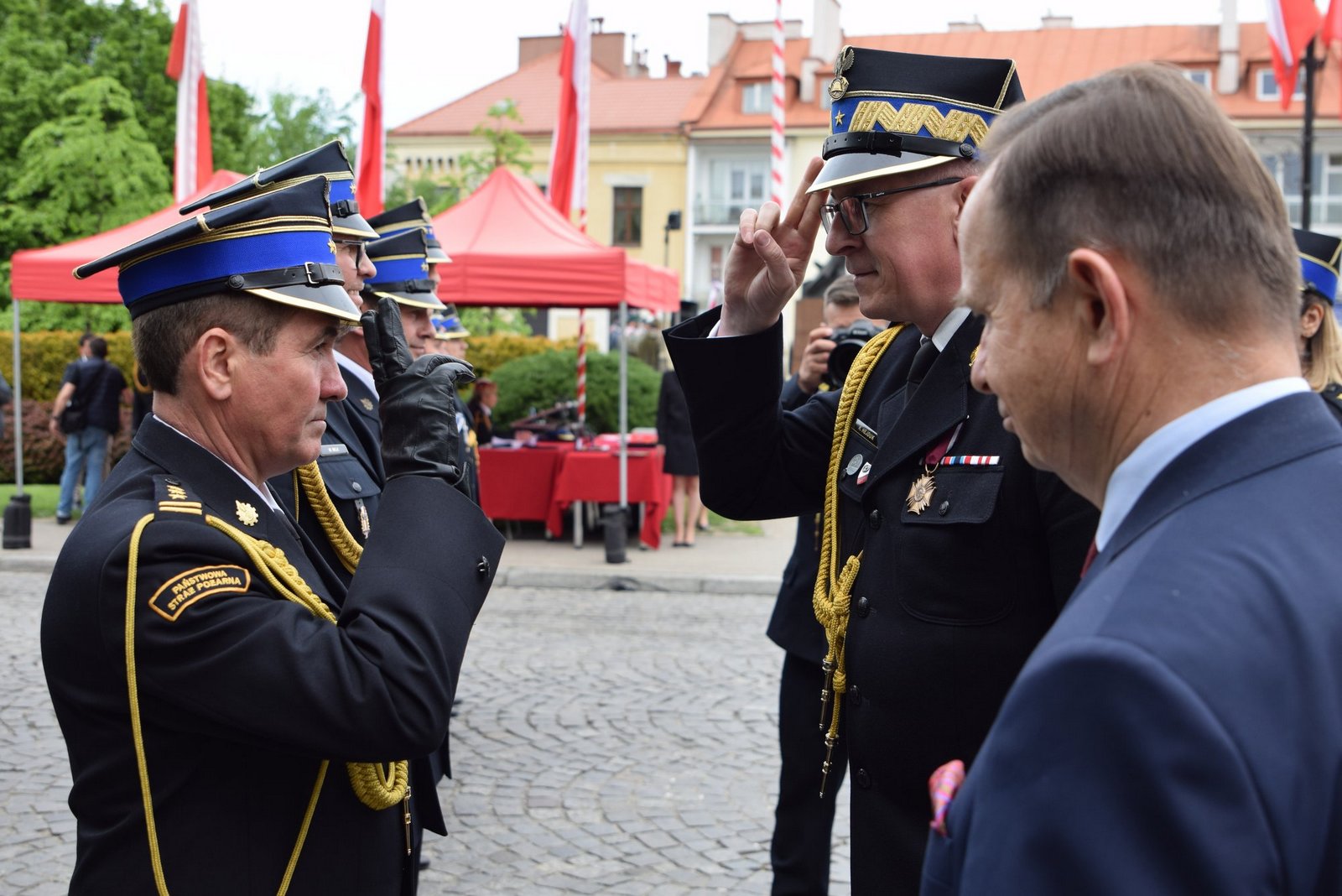 Po Eucharystii, na rzeszowskim Placu Farnym odbyły się główne uroczystości, które rozpoczęto złożeniem meldunku i przeglądem pododdziałów. Meldunek odebrał zastępca komendanta głównego PSP nadbryg. Krzysztof Hejduk.