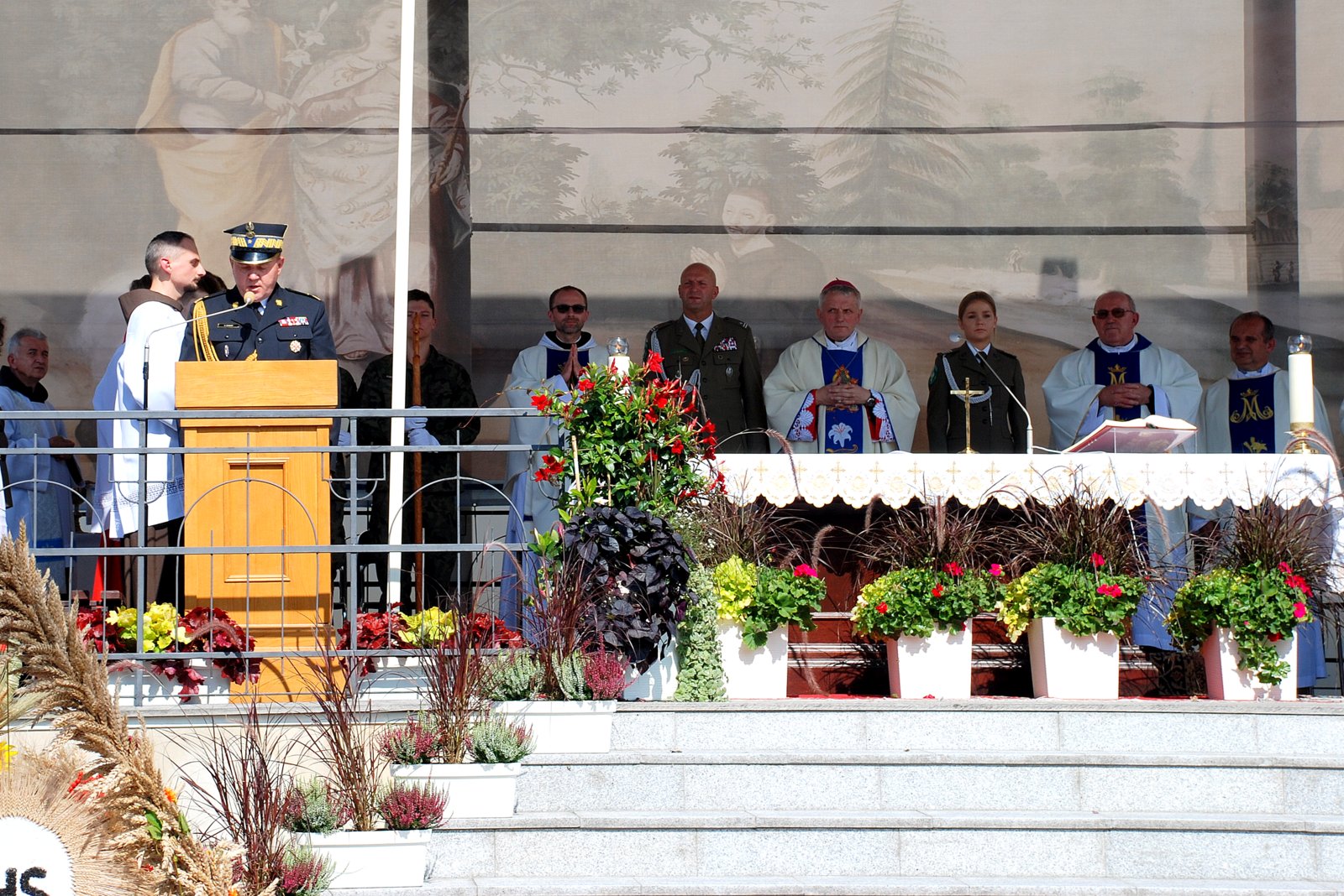 Uroczystej Mszy Świętej przy ołtarzu polowym przewodniczył jego ekscelencja ksiądz biskup Stanisław Jamrozek - biskup pomocniczy Archidiecezji Przemyskiej.