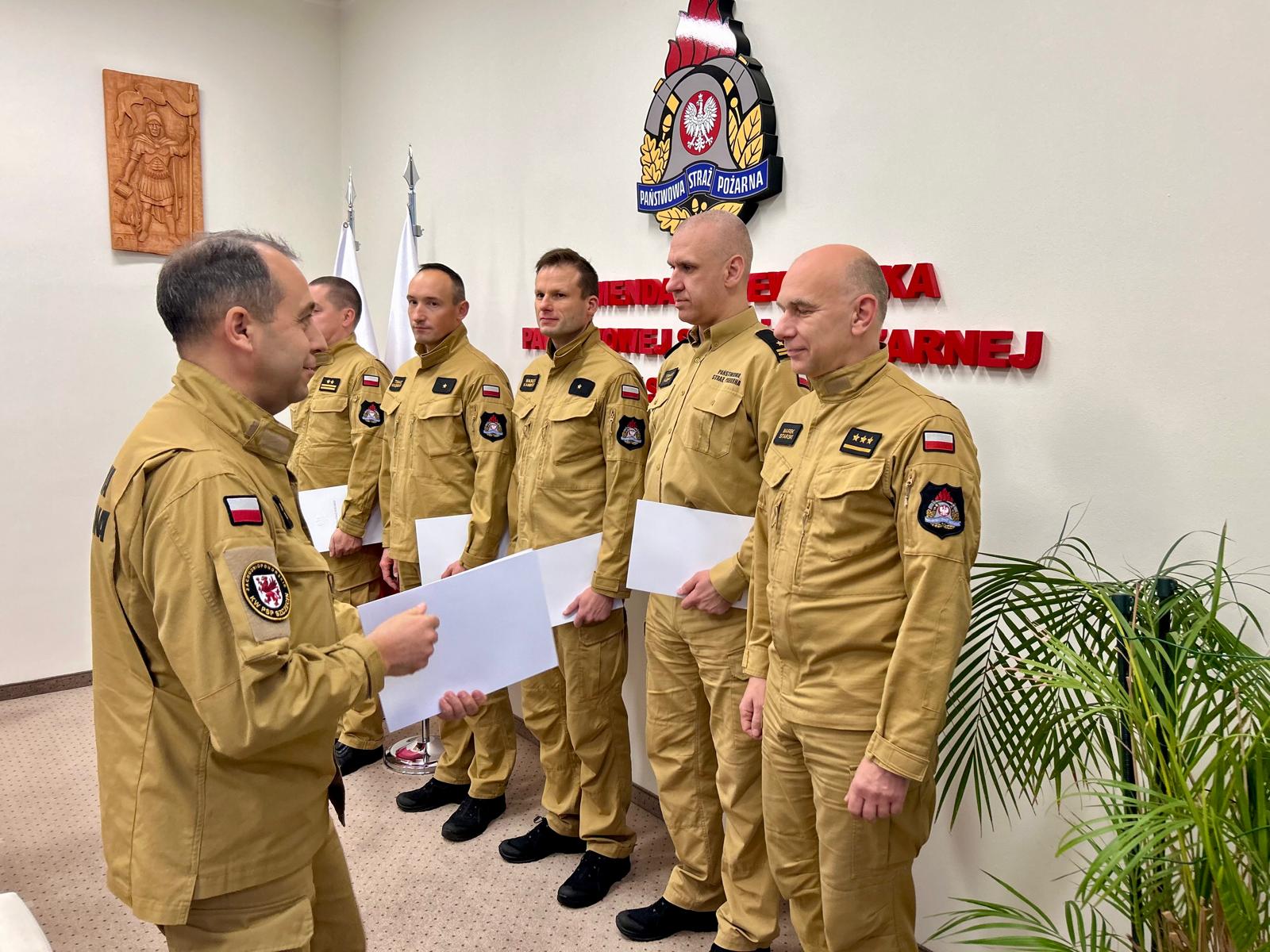 Zachodniopomorski Komendant Wojewódzki Państwowej Straży Pożarnej st. bryg. Mirosław Pender, w imieniu Ministra Spraw Wewnętrznych i Administracji Pana Tomasza Siemoniaka, wręczył funkcjonariuszom z terenu województwa, decyzje o przyznaniu nagród pieniężnych za realizację zadań w szczególnie trudnych warunkach, podczas działań prowadzonych na terenach objętych powodzią we wrześniu 2024 r.