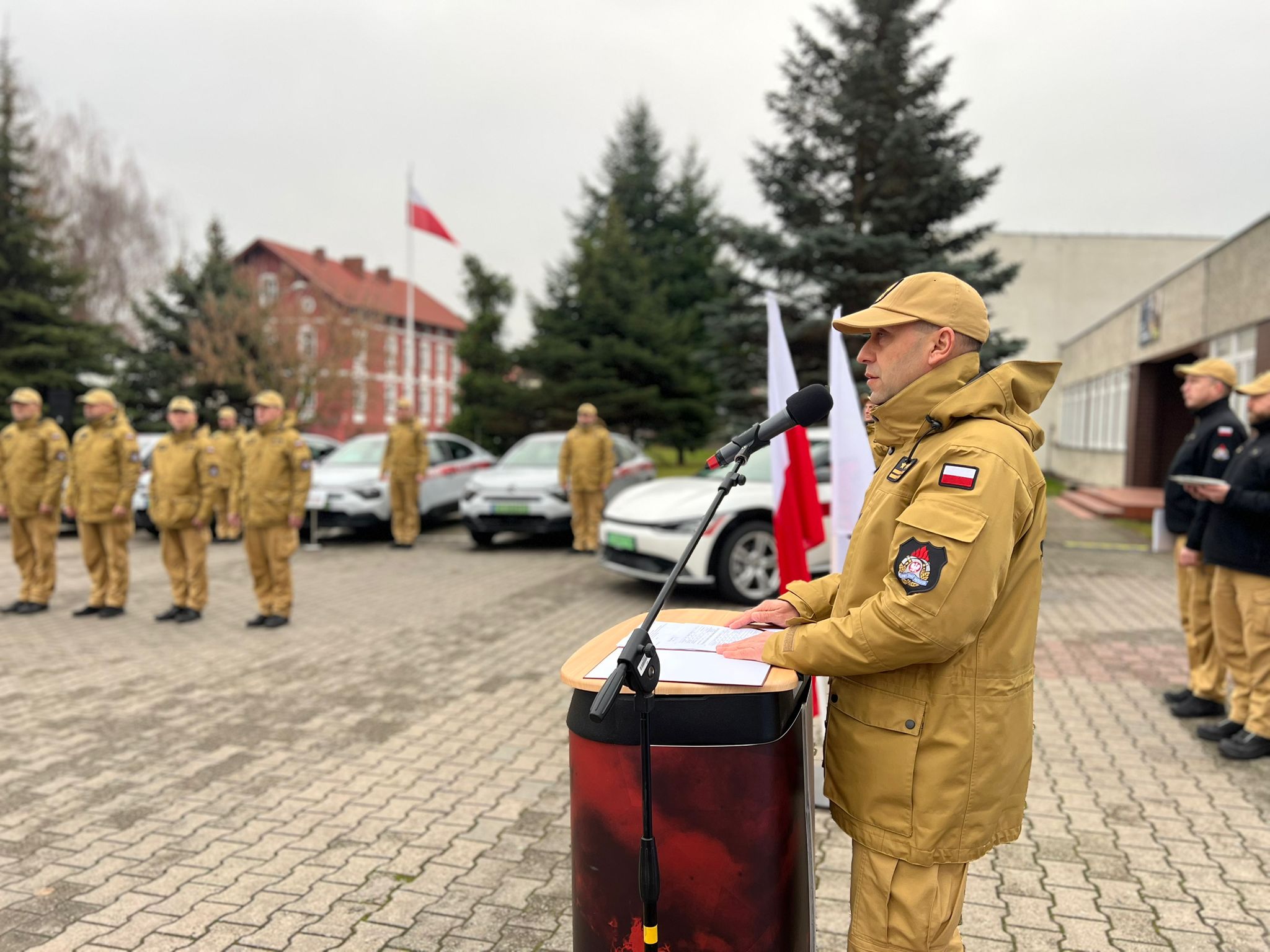 W dniu 10 grudnia 2024 r. na placu przed Komendą Powiatowa Państwowej Straży Pożarnej w Pyrzycach, odbyła się uroczysta zbiórka z okazji przekazania samochodów operacyjnych oraz sprzętu do ratownictwa i likwidacji zagrożeń środowiska naturalnego dla jednostek organizacyjnych Państwowej Straży Pożarnej woj. zachodniopomorskiego.