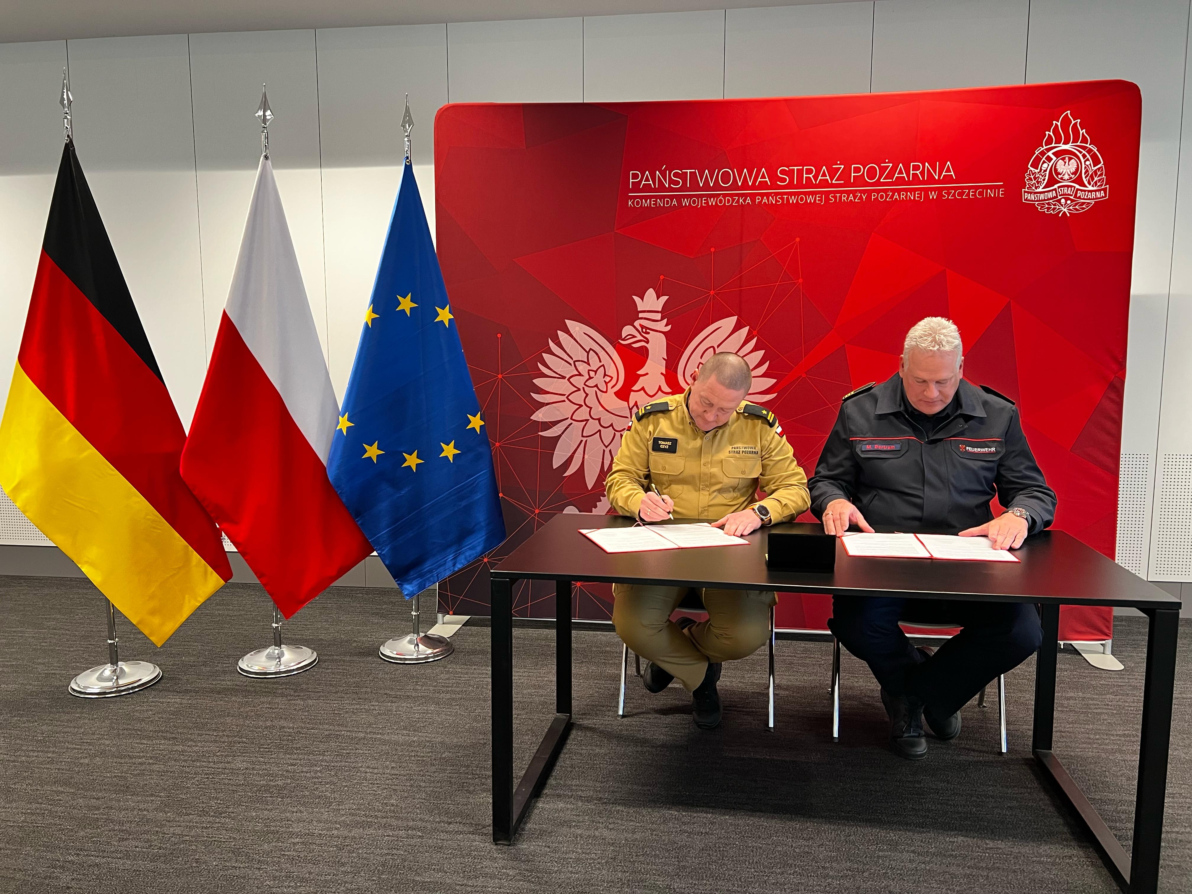 Na zakończenie spotkania mł. bryg. Tomasz Czyż oraz Martin Bertram, podpisali wspólni Regulamin Grupy Roboczej ds. Zapobiegania Katastrofom przy Polsko-Niemieckiej Komisji Międzyrządowej ds. Współpracy Regionalnej i Przygranicznej.