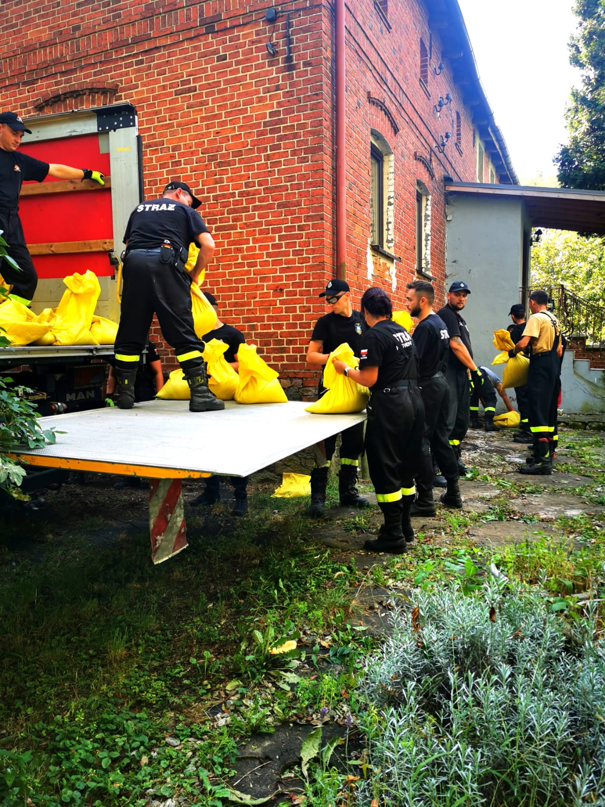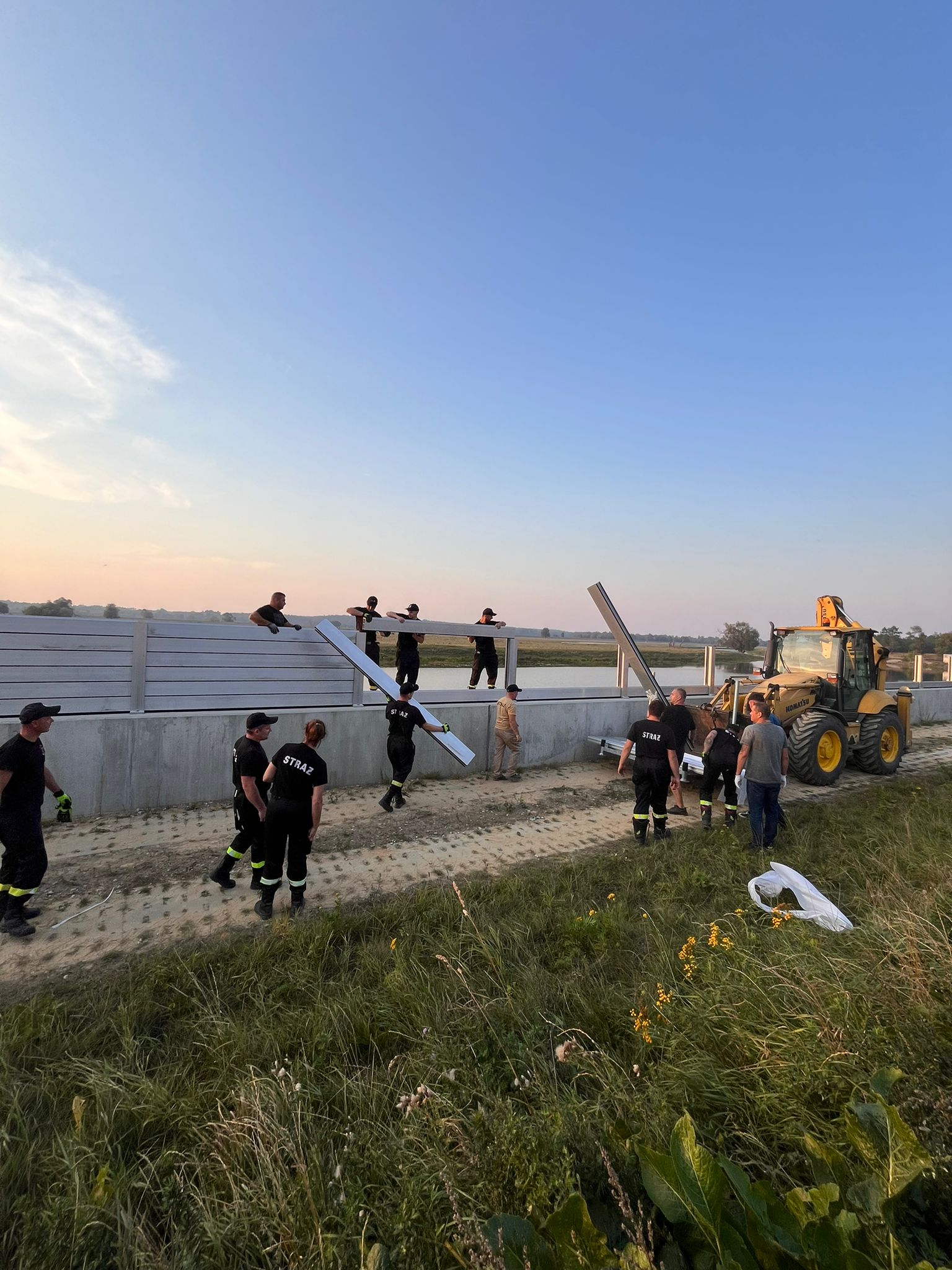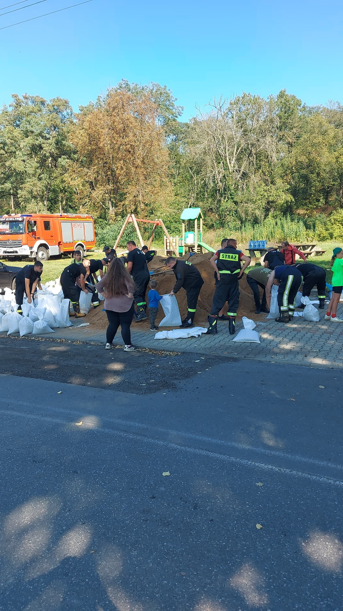 Na wałach pracują strażacy z OSP i PSP, ale również mieszkańcy. Dzięki temu prace są znacznie sprawniejsze i skuteczniejsze. Ponadto, nasze działania wspiera WOT.