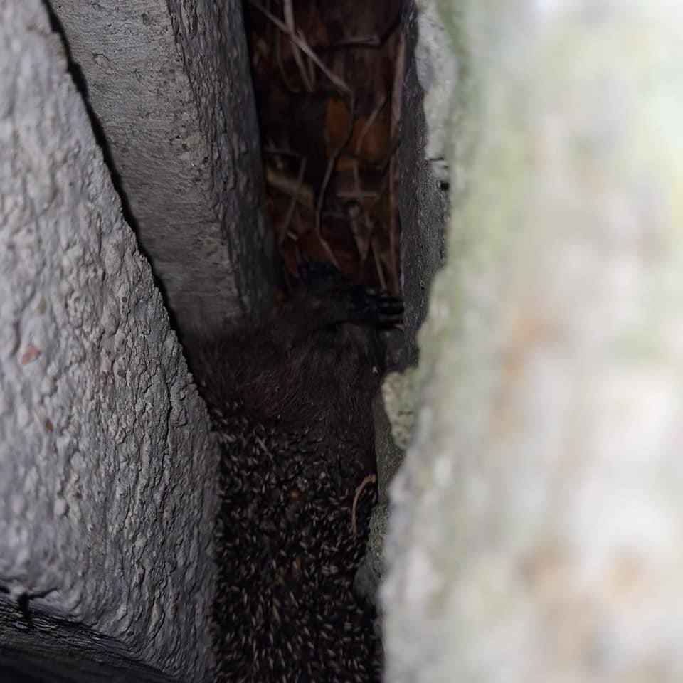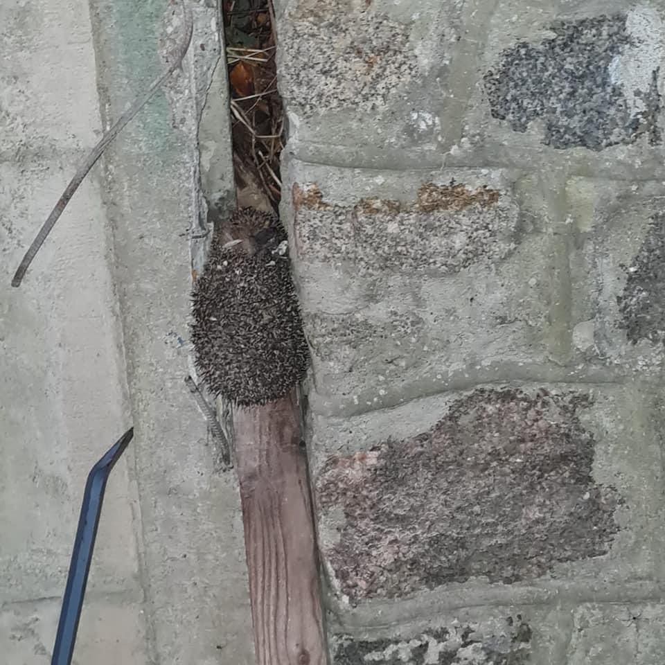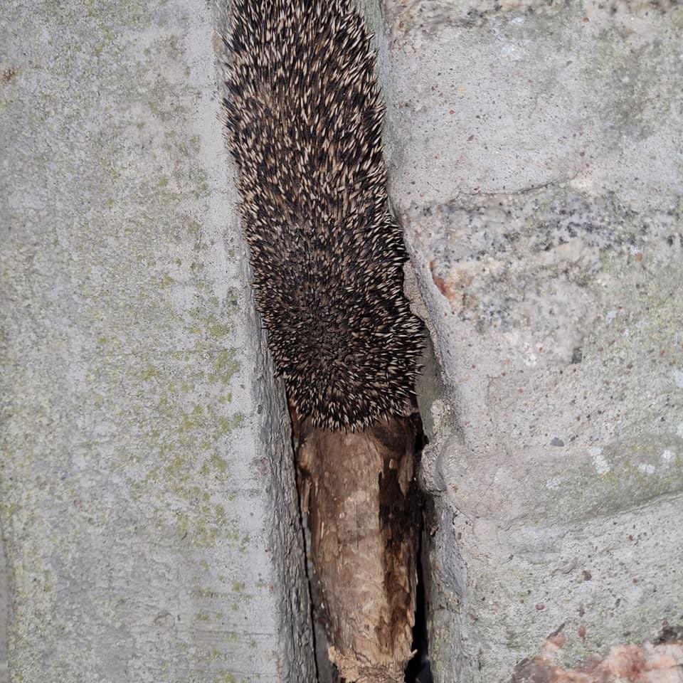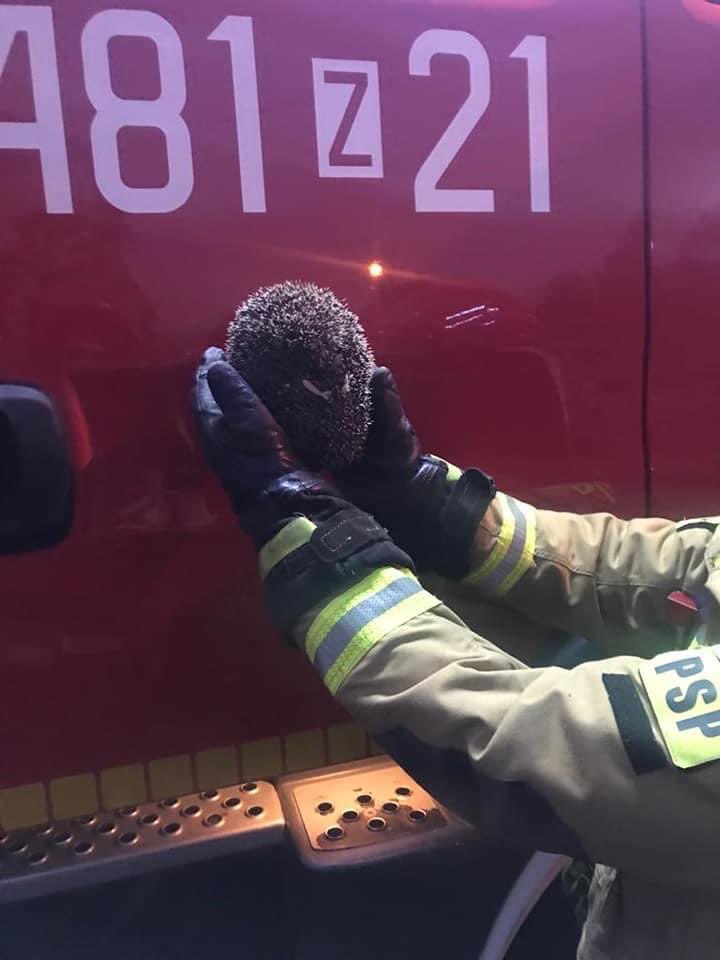 Na cmentarzu Jeż zaklinował się w betonowym ogrodzeniu. Strażacy jak zawsze wykonali zadanie z pełnym profesjonalizmem i jeżyk cieszy się wolnością cały i zdrowy.