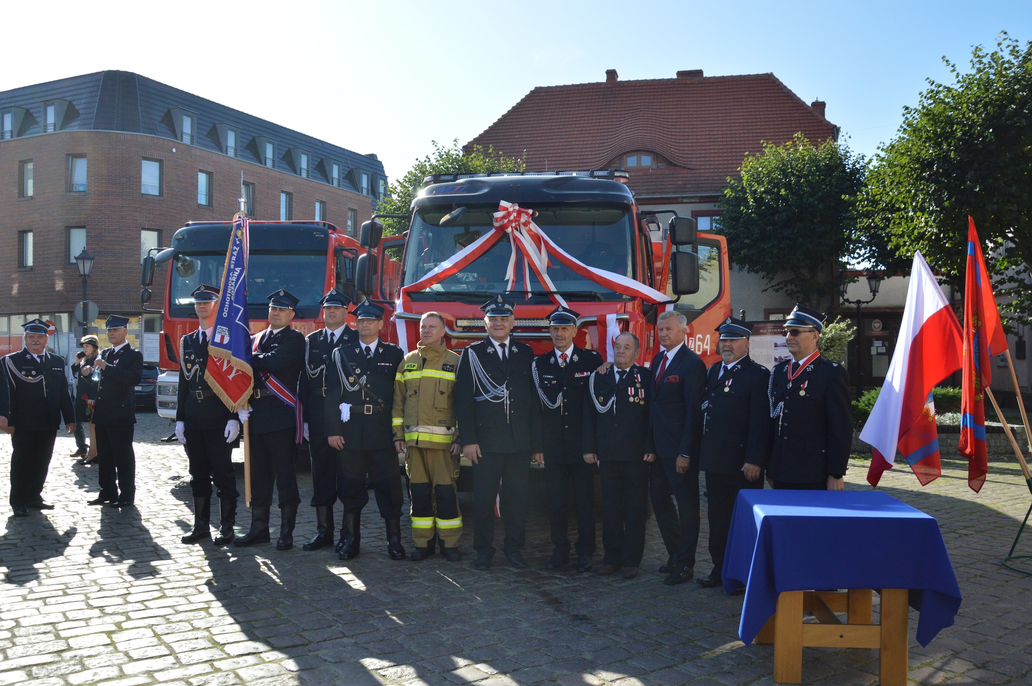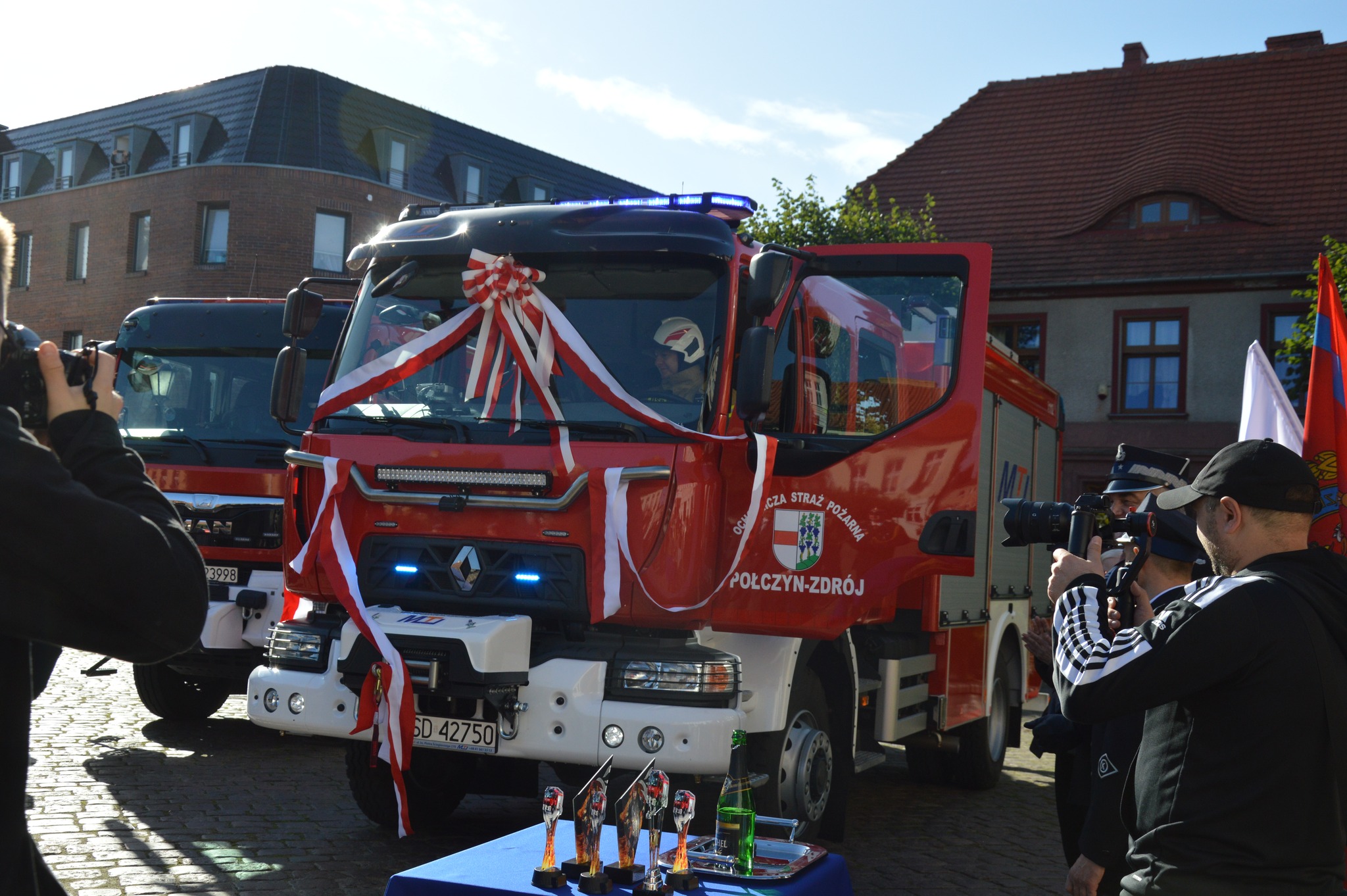 Przed południem na Placu Wolności w Połczynie-Zdroju przekazano nowy, średni samochód ratowniczo-gaśniczy marki Renault zabudowany przez firmę Moto-Truck. W wydarzeniu udział wzięli m.in.: