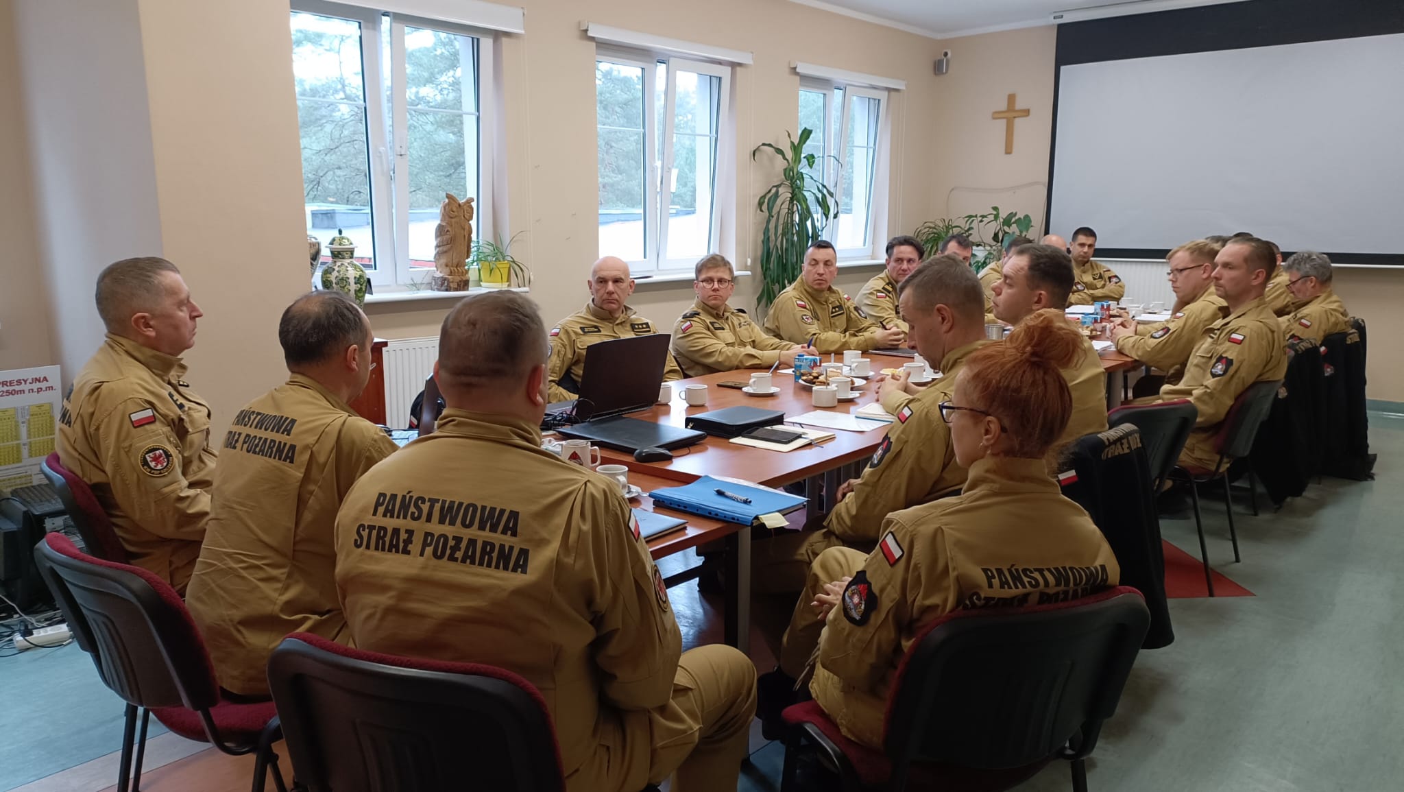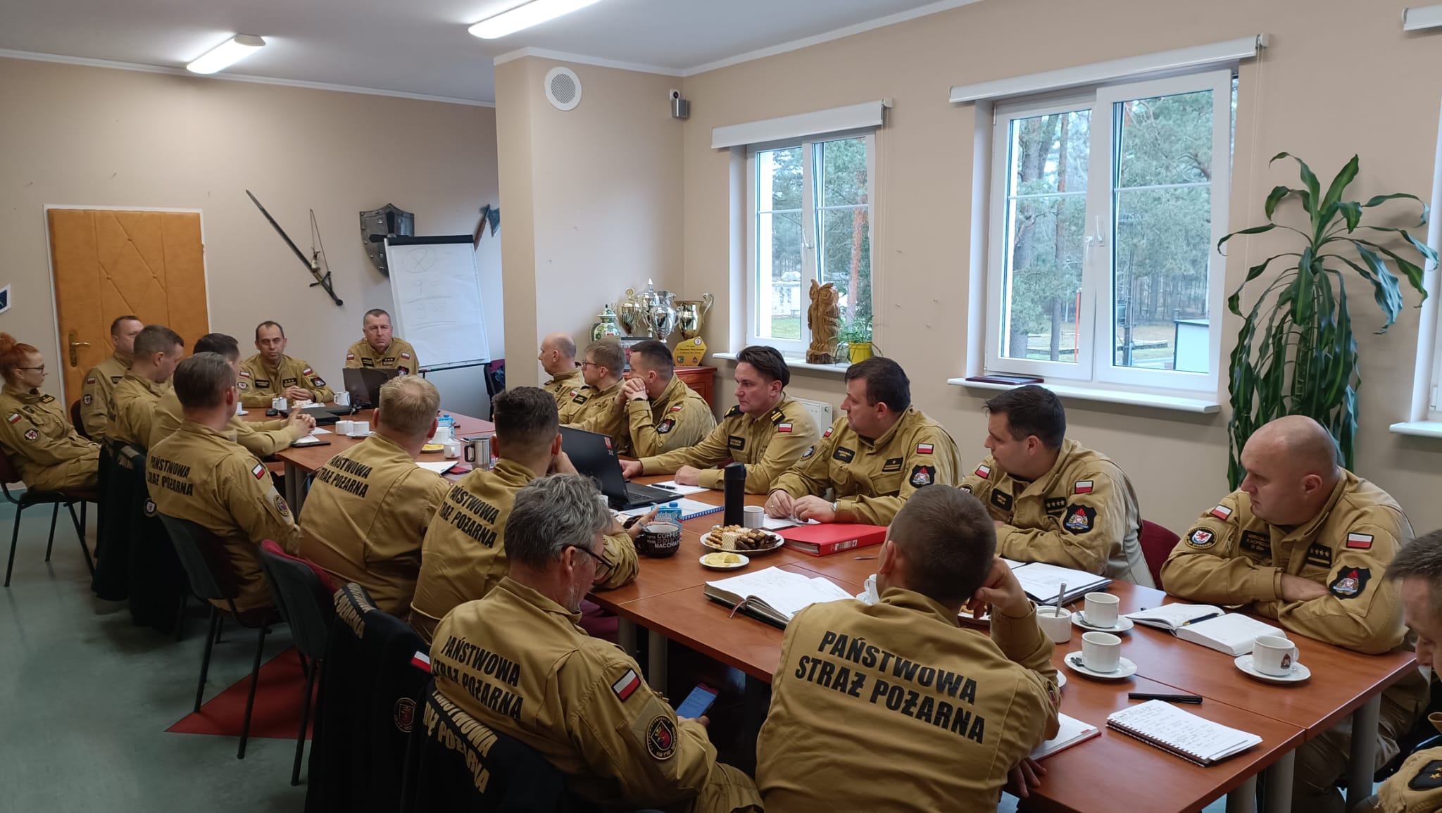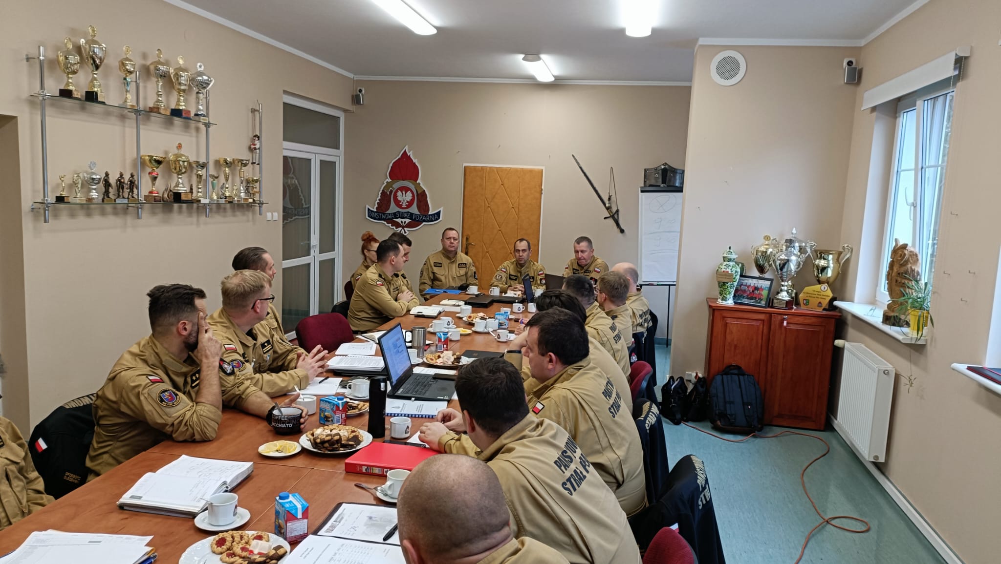 Spotkaniu przewodniczył st. bryg. Krzysztof Makowski Zastępca Zachodniopomorskiego Komendanta Wojewódzkiego PSP oraz st. bryg. Stanisław Wajszczuk i bryg. Leszek Gocół, kierownictwo wydziału Planowania Operacyjnego KW PSP Szczecin.